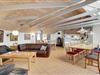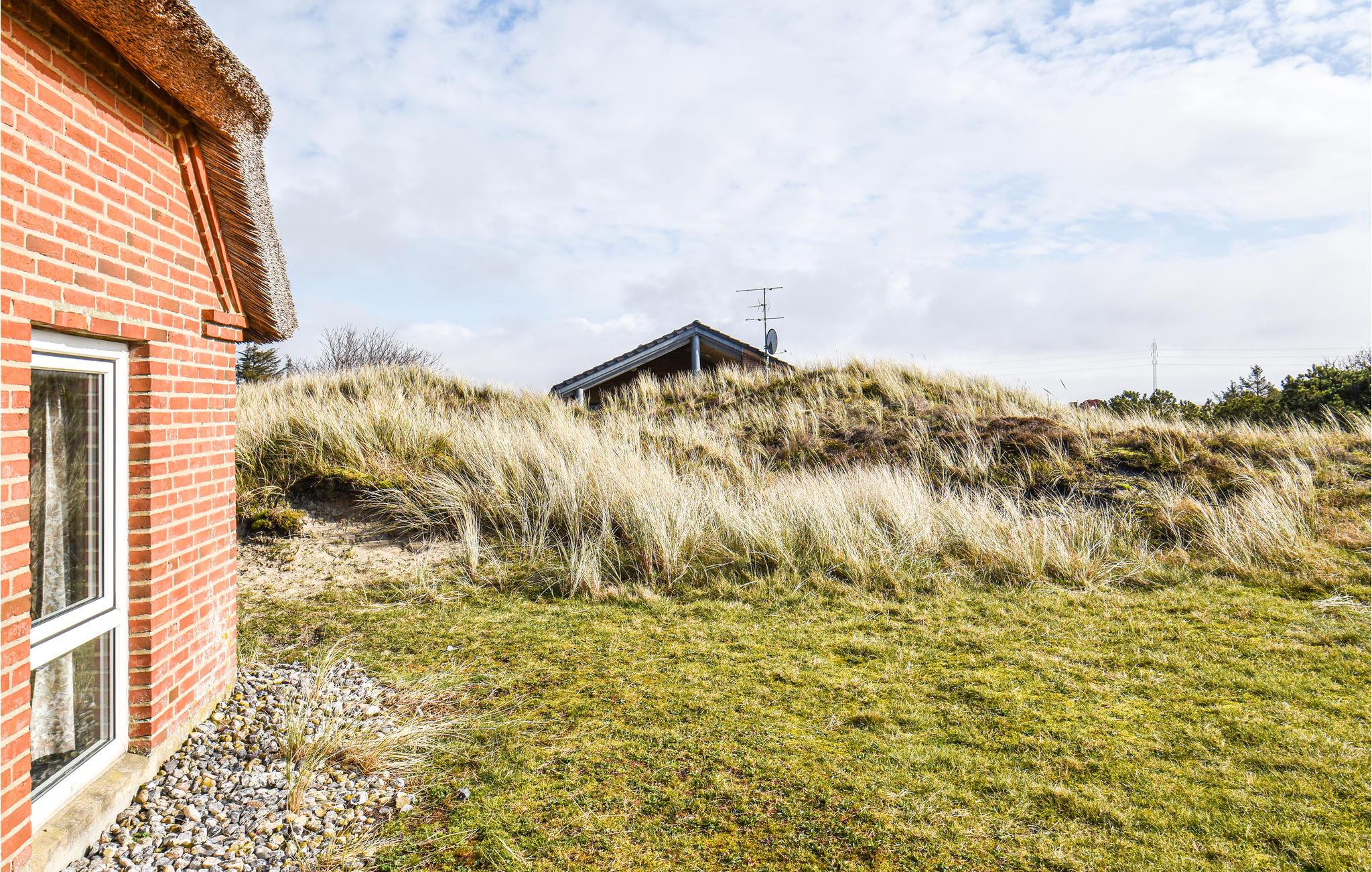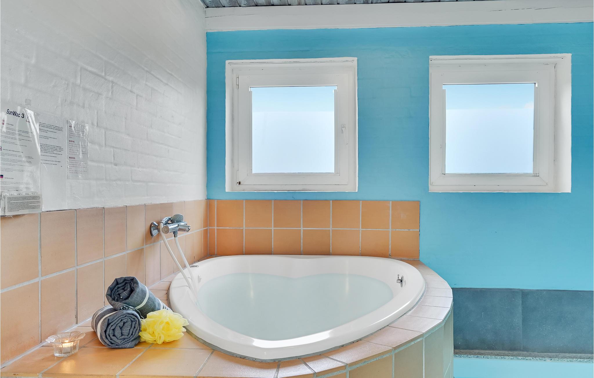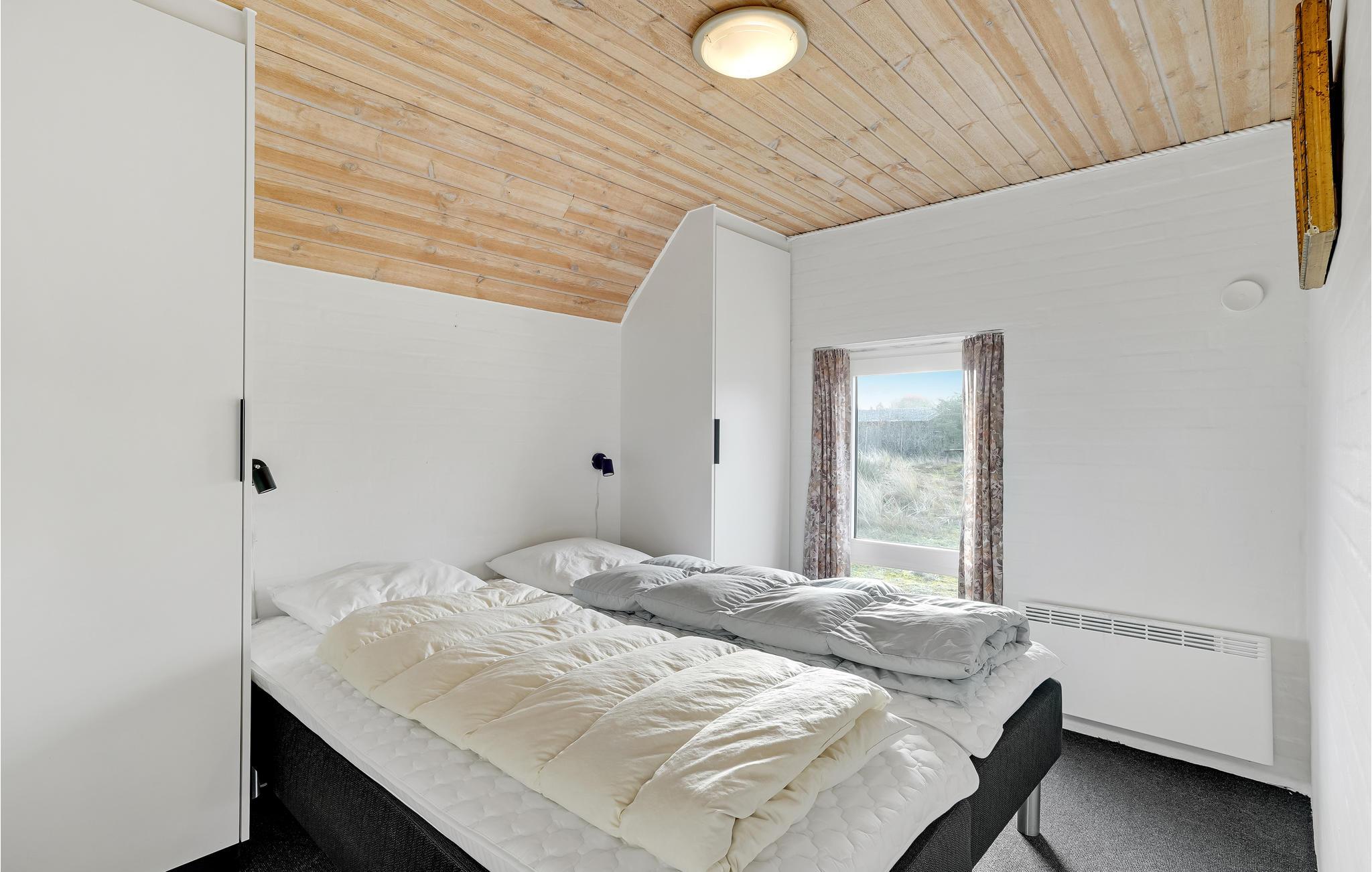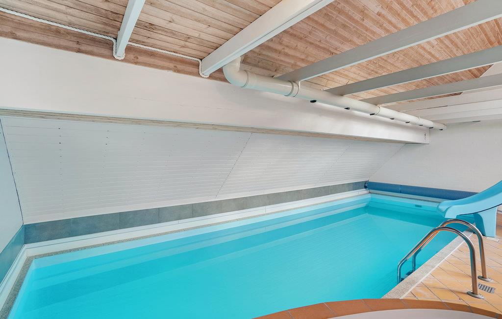 I det smukke naturområde tæt på den populære ferieby Søndervig ligger dette store feriehus med swimmingpool. Huset er godt indrettet til en større familie, 2 familier eller måske flere vennepar, der gerne vil holde ferie sammen. I centrum af huset ligger det store, kombinerede køkken-/stueområde med brændeovn og med loft til kip. Det store vinduesparti giver et dejligt lysindfald i rummet. Fra stuen er der adgang til husets wellnessafdeling med både en stor (30 m²) swimmingpool med rutsjebane, spabad og sauna. Ligeledes i wellnessafdelingen ligger det ene af de 2 badeværelser. I modsatte ende af huset og mere roligt, ligger soveafdelingen med 4 soveværelser samt 2 hemse med hver 3 madrasser. Hertil kommer husets andet badeværelse. Fra terrassen har I udsigt over den store have med både gynge og sandkasse til de yngste gæster, og ligeledes en skøn udsigt til hedelandskabet omkring huset.