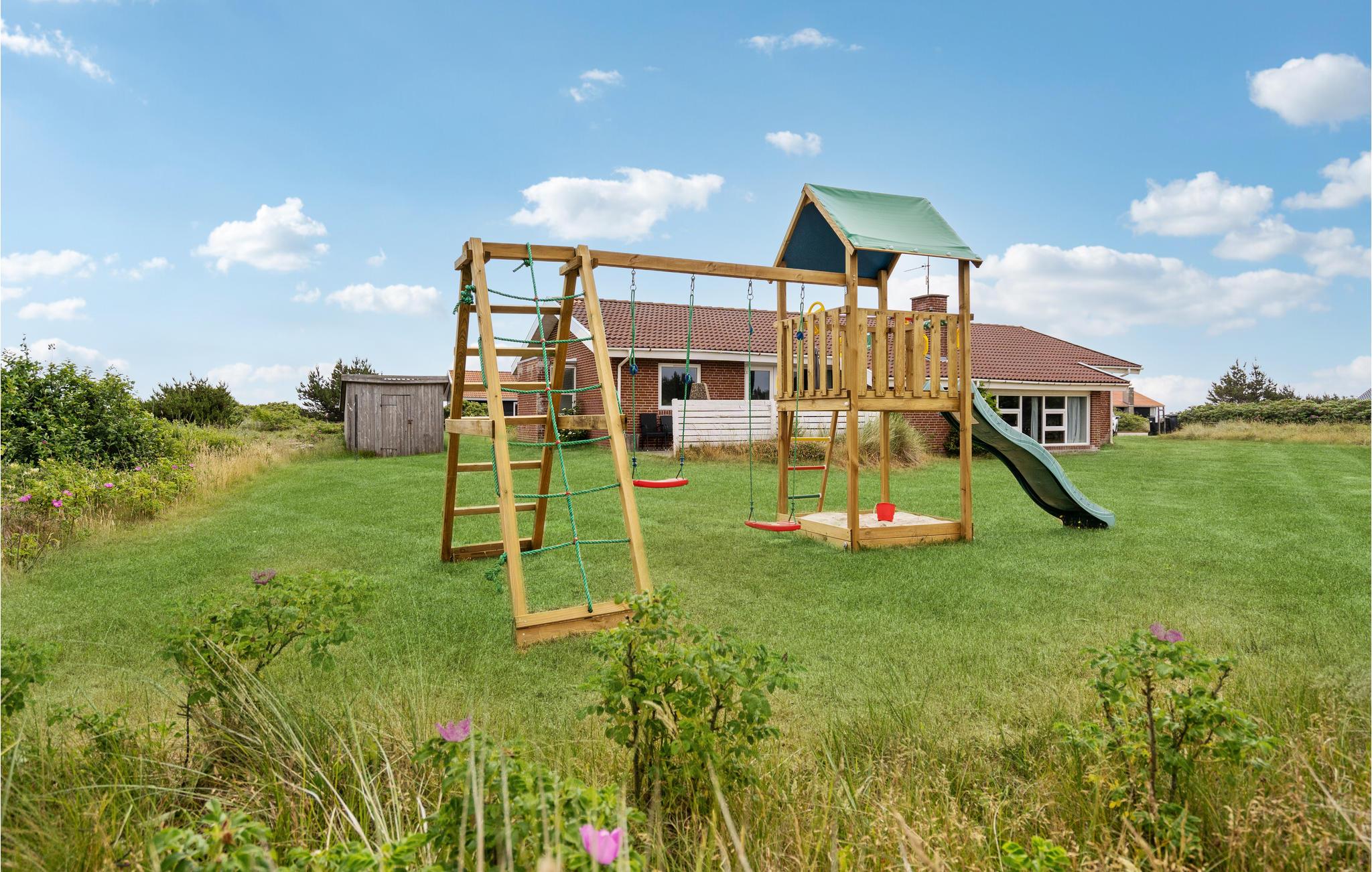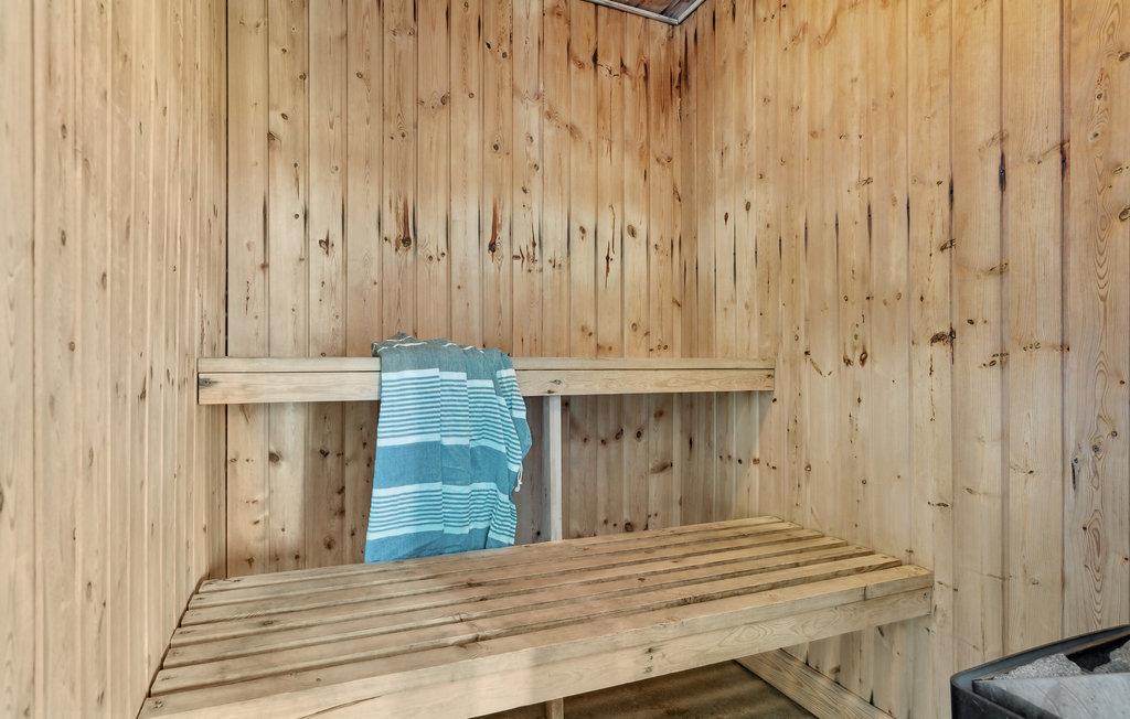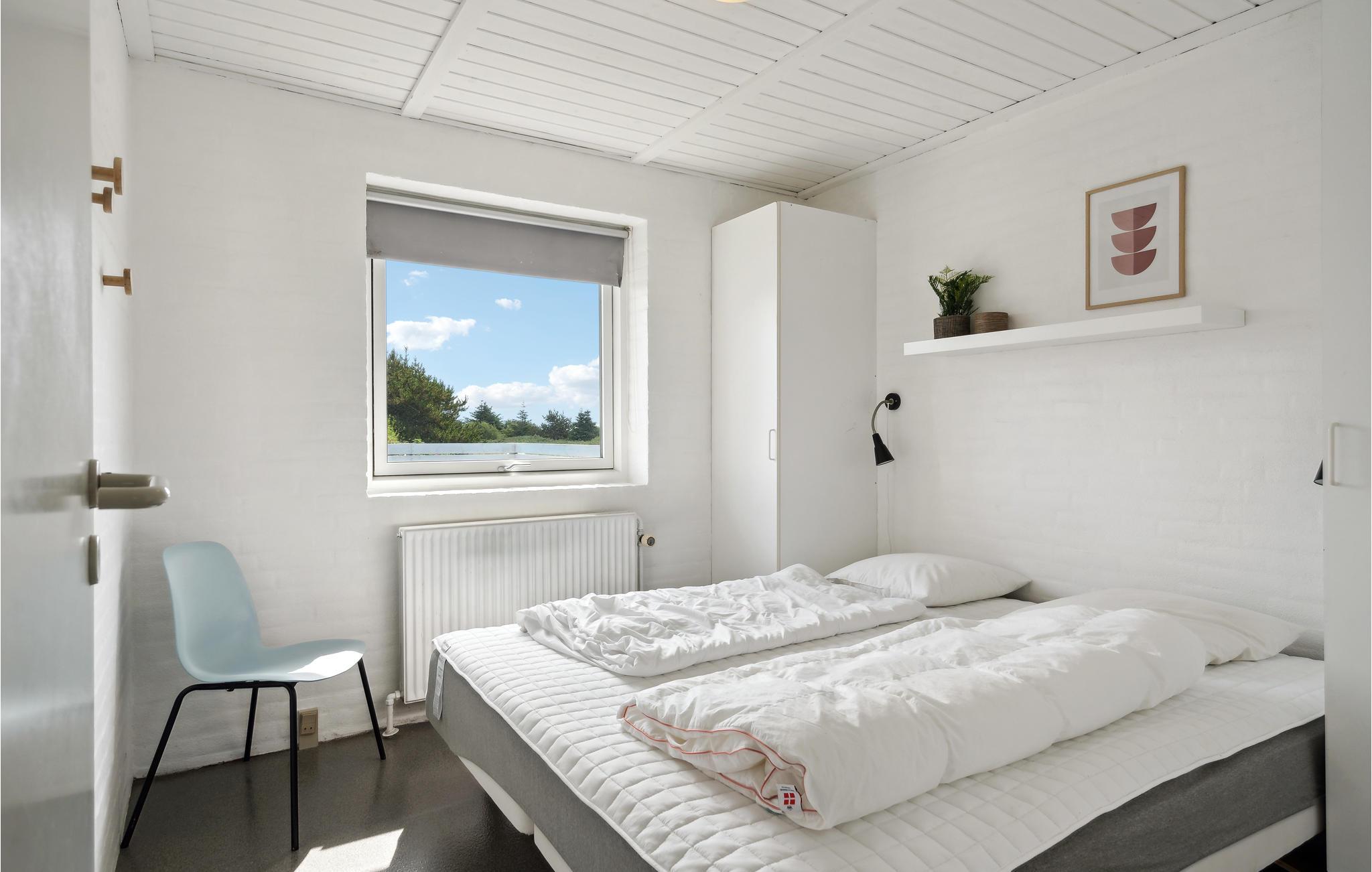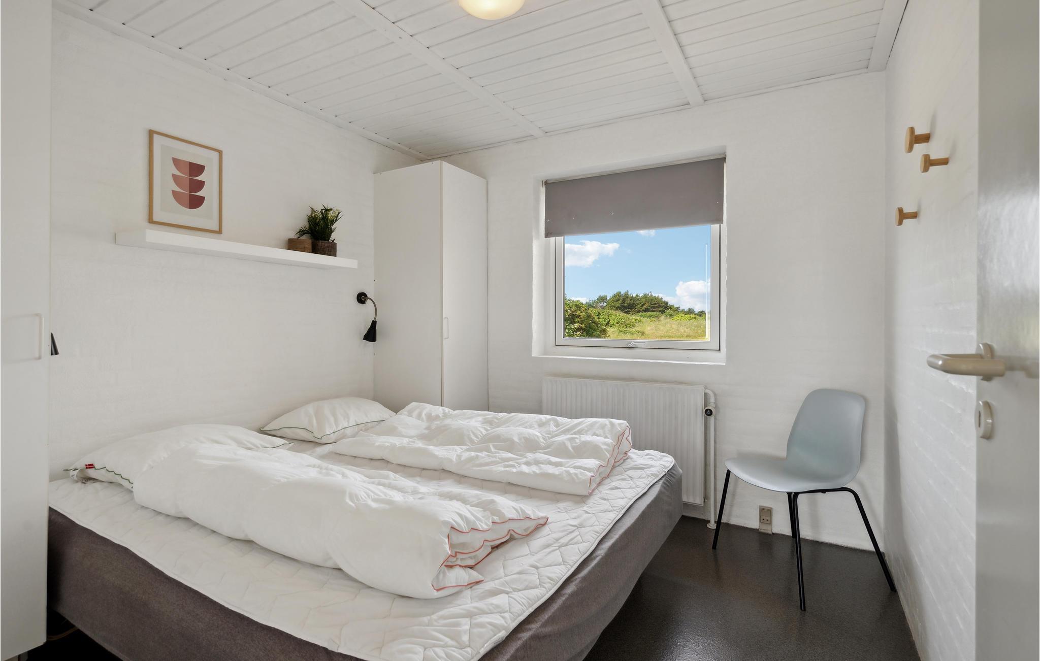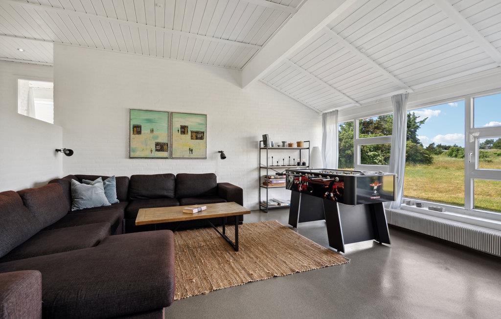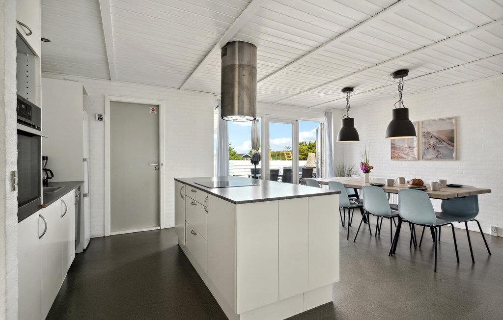 Et lækkert, rummeligt og flot renoveret (i 2019) swimmingpoolhus, der indeholder alt til den store familie. I poolrummet venter den store swimmingpool, det to-personers spabad og sauna på at give jer dejlig wellness. Husets hjerterum er det store, åbne køkken kombineret med spisestuen, hvor hele familien kan samles. Der er adgang til to terrasser med udsigt over klitter og landskab, og fra grunden kan I se helt ned til fjorden. Stuen ligger i forskudt plan i forhold til resten af huset, her findes et 55" Smart-tv, og med det hurtige fiberinternet, er der gode muligheder for at tilslutte jeres medbragte Chromecast/Apple-tv. De fem soveværelser ligger fordelt i to afdelinger med henholdsvis tre og to soveværelser samt et badeværelse på hver side af køkken/stuen.