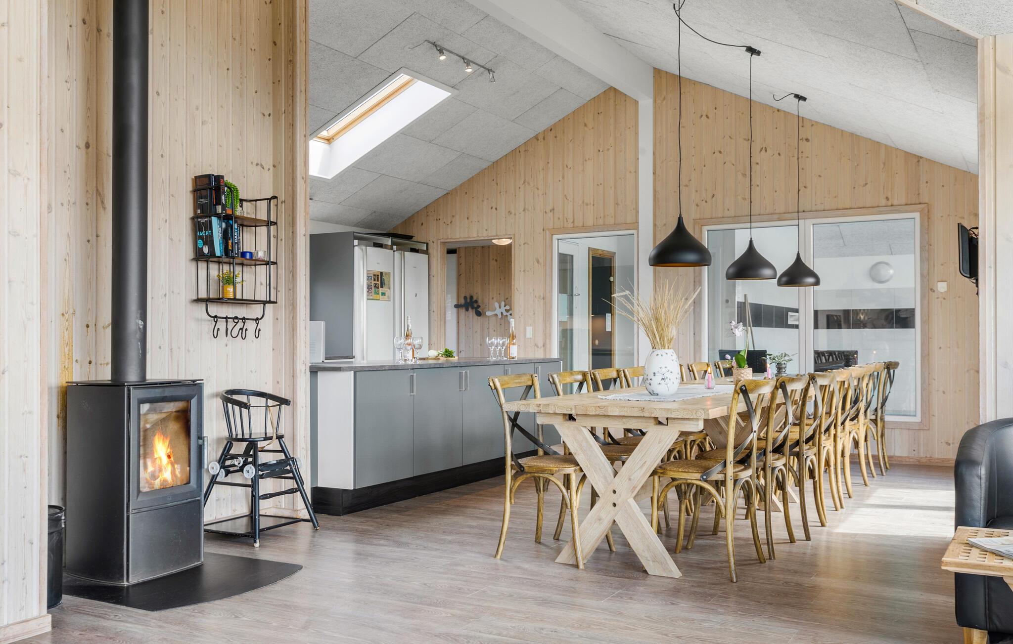 Tæt på Vesterhavet, i et naturskønt område, ligger dette store sommerhus med plads til ikke mindre end 18 personer. Huset er indrettet med syv gode soveværelser samt hems, tre badeværelser, et stort og lyst køkken/alrum som ligger i forlængelse af stuen, stort aktivitetsrum samt poolafdeling der også inkluderer en lækker spa og sauna. Husets beliggenhed, mellem Søndervig og Hvide Sande, appellerer til alle uanset, om I er til aktiv ferie eller hellere vil skrue tempoet ned modsat hverdagens stress, så er I kommet til det rigtige sted.