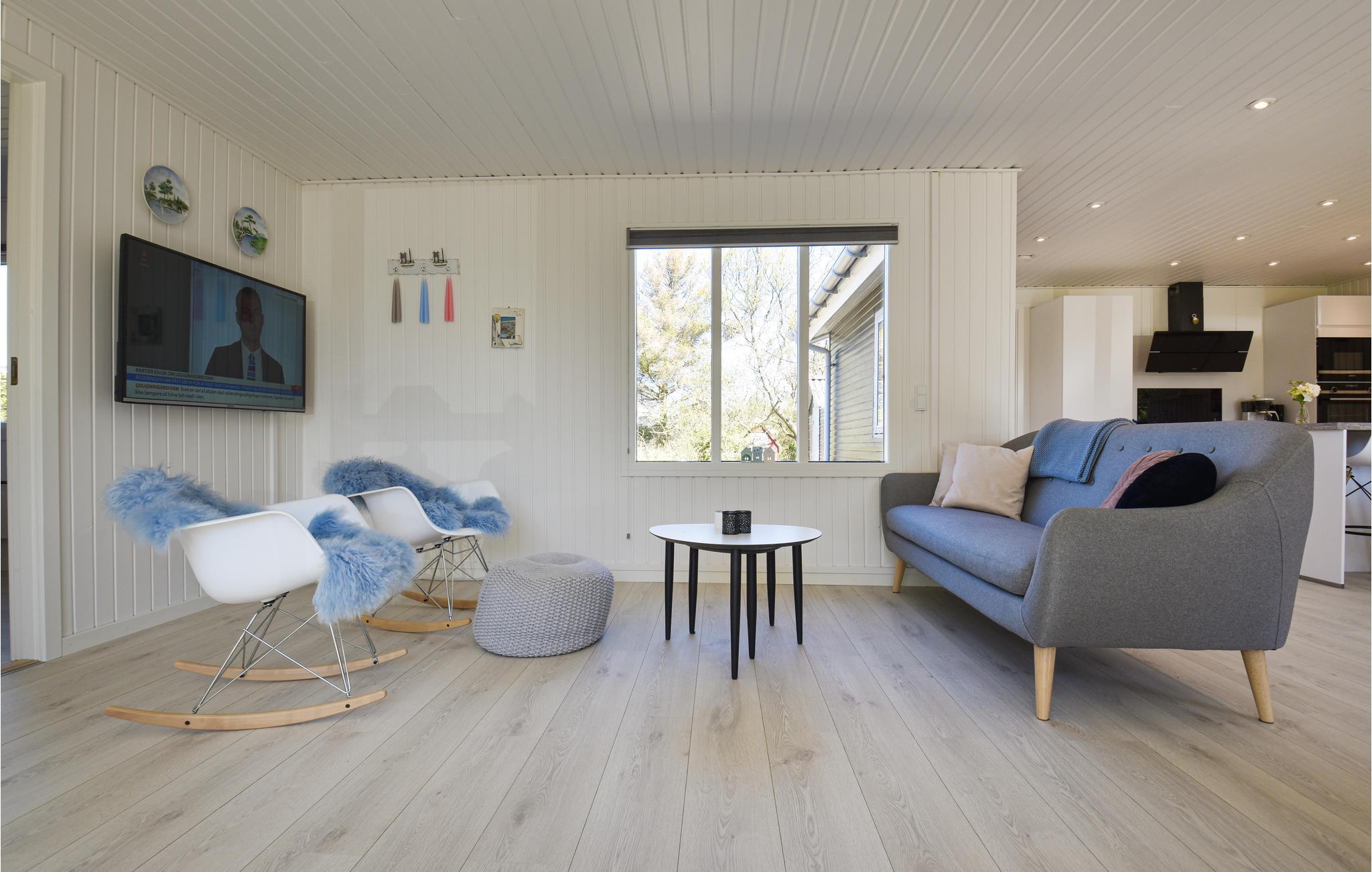 Moderne og lyst sommerhus i Søndervig med to terrasser og tæt på både hav og fjord.