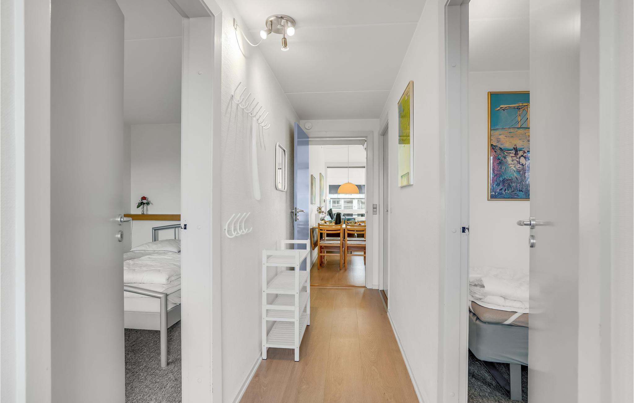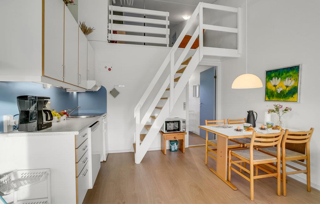 Når I lejer denne lejlighed, kan I bare lade bilen stå under hele ferien, da I kan nå alt til fods. Både det skønne Vesterhav, I kan gå over og købe rundstykker samt shoppe i de mange forskellige butikker. Lejligheden er rigtig godt indrettet med to soveværelser, badeværelse med brus, et funktionelt køkken der ligger i åben forbindelse med stuen, en dejlig overdækket altan og et stort åbent rum/hems på førstesalen. Venligst vær opmærksom på at der er trapper op til lejligheden. Der er en stor legeplads, fælles grill og bålplads tilknyttet lejligheden.