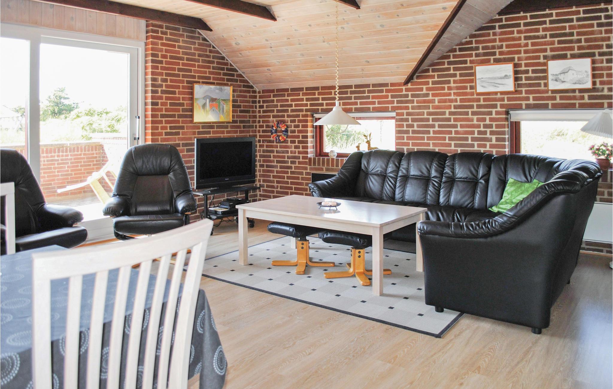 Dette hyggelige sommerhus ligger skønt placeret med kun få minutters gåafstand til både det betagende Vesterhav og den populære turistby Søndervig. Huset er velindrettet til 6 personer med 3 soveværelser - de 2 af dem med en dobbeltseng og det sidste med 2 enkeltsenge. På badeværelset er der udover bruser også en sauna. Stuen ligger i åben forbindelse til køkkenet, og her er både varmepumpe og brændeovn som supplerende varmekilde. Huset har flere gode terrasser, så I har altid mulighed for at finde læ, og til børnene findes både en vippe og gyngestativ.