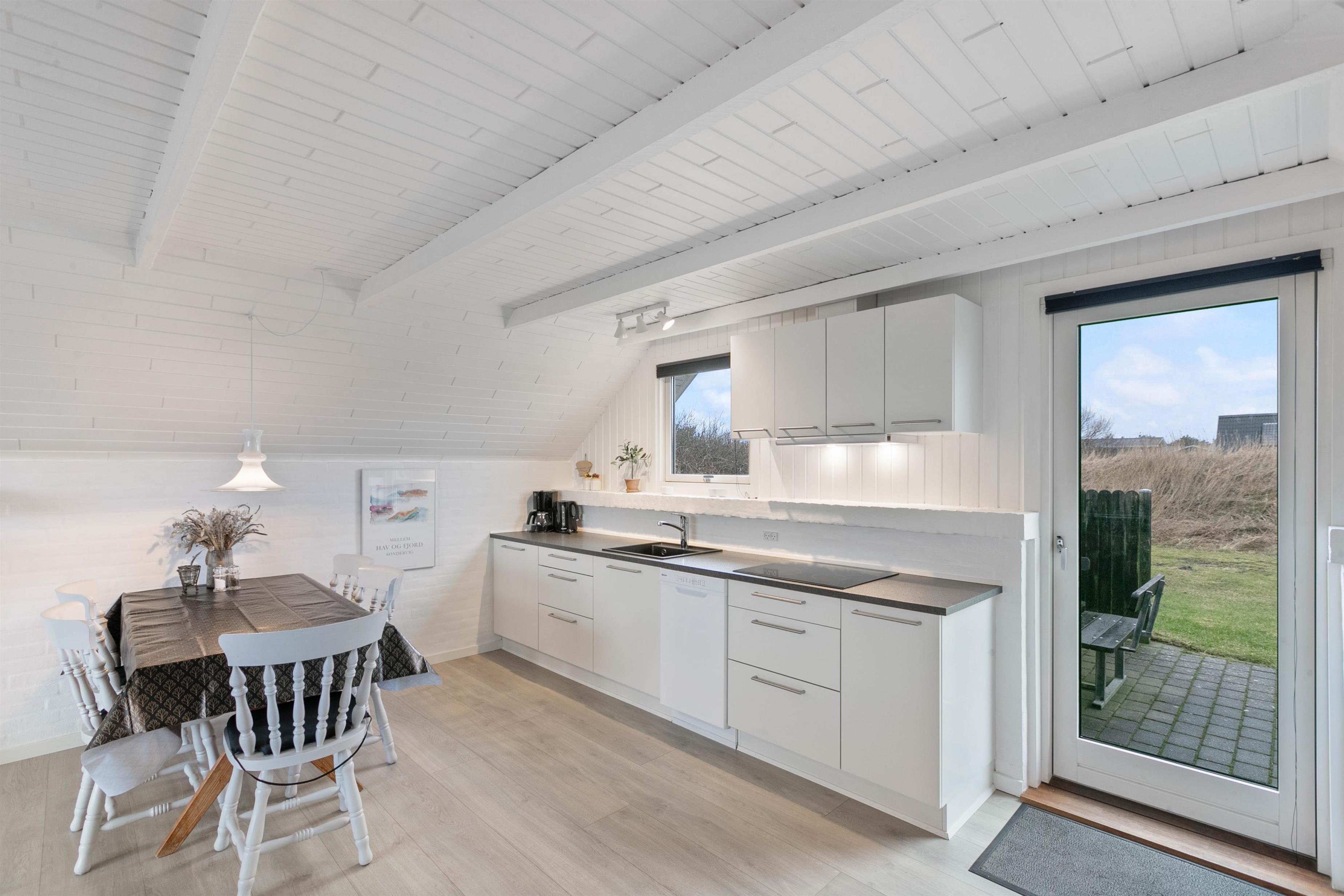 Dette sommerhus er renoveret i 2018 bl.a. med nyt køkken, og fremstår lyst og indbydende. Der er tre soveværelser, et med dobbeltseng, et med to enkeltsenge og det tredje med køjesenge. I badeværelset er der gulvvarme og en bruseniche.