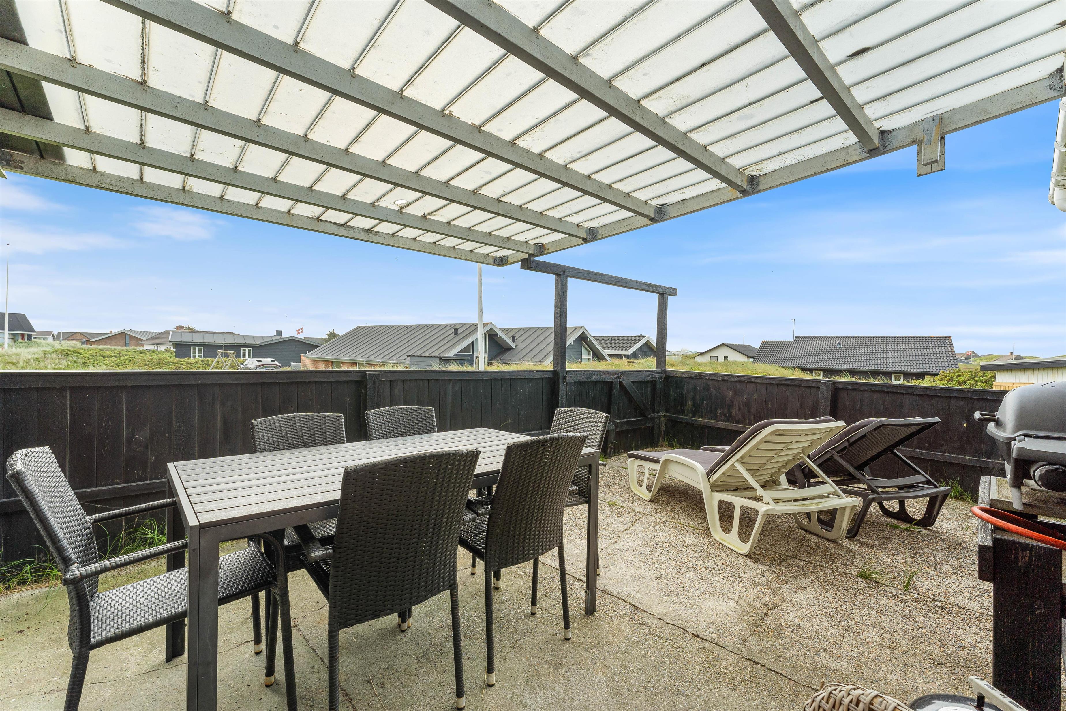 Den delvist overdækkede terrasse giver huset et ekstra udendørs rum. Her kan I sidde i ly og læ for vejr og vind, spille kort udendørs eller nyde en lækker grillmiddag, som I selv har tilberedt på sommerhusets grill. Imens hunden har funden sig en yndlingsplads på den lukkede terrasse, kan I åbne en flaske rødvin og nyde solnedgangen og stjernehimlen.