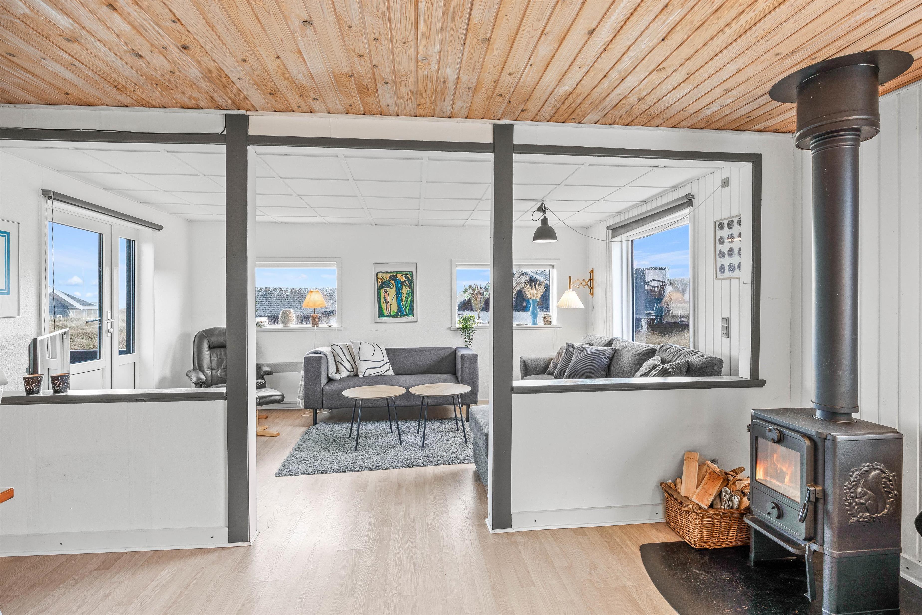 I et sådant klassisk feriehus må der selvfølgelig ikke mangle en brændeovn: Findes der noget mere afslappende end at sætte sig tilrette foran brændeovnen efter en lang dag ved stranden? Brændeovnen befinder sig i husets hjerterum, hvor stuen, spiseplads og køkken er i åben forbindelse med hinanden. I kan derfor nyde hinandens samvær, ligegyldigt om nogle af jer er i køkkenet og kokkerer et festmåltid og andre slapper af i sofaen. Efter aftensmaden kan i læne jer tilbage i stuemøblerne og læse en spændende bog, imens opvaskemaskinen klarer oprydningen efter dagens middag.