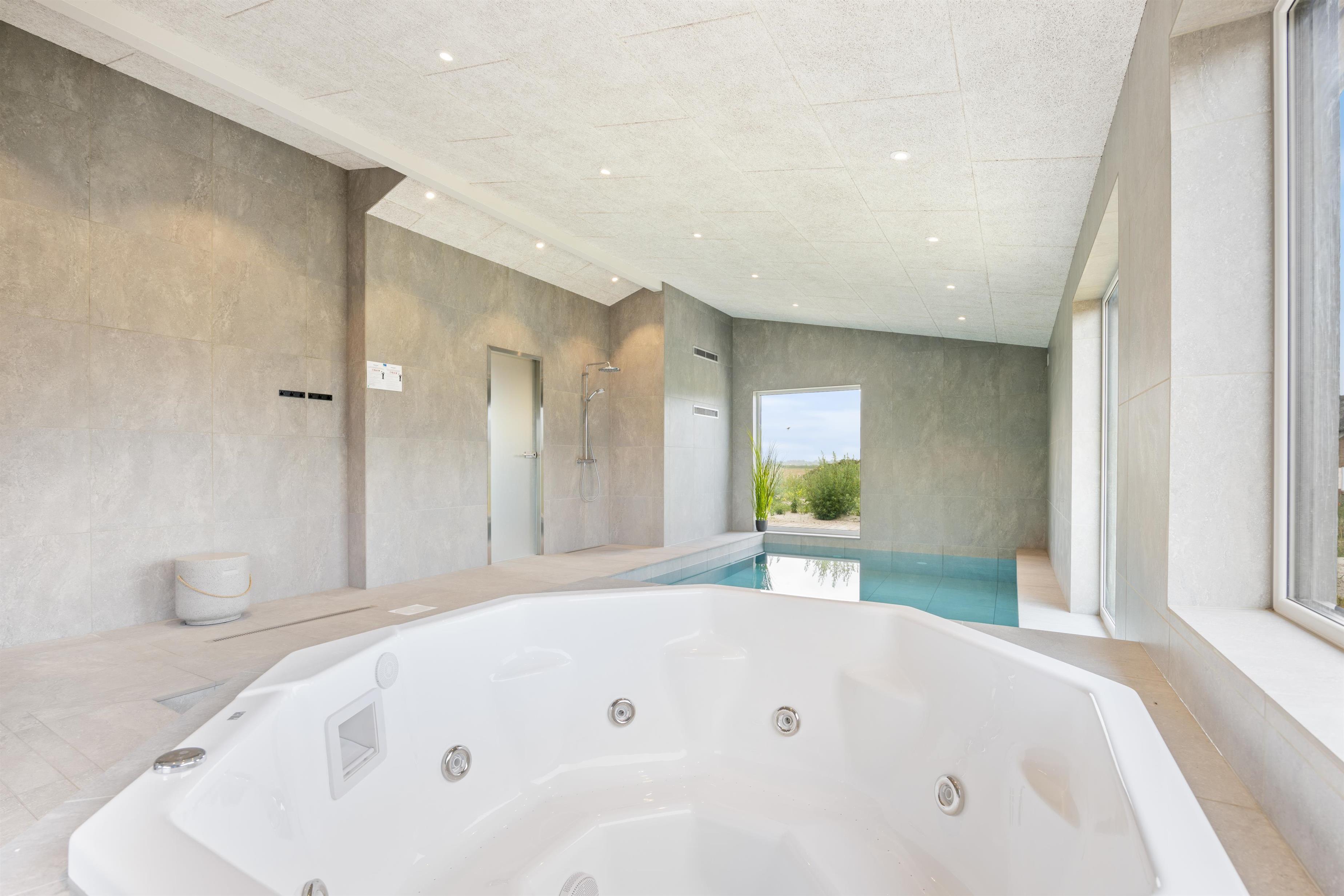 Højdepunktet i feriehuset vil være poolrummet med den ca. 20m2 store pool. Vandhundene blandt jer vil især blive glade for dette, da de kan svømme og plaske rundt i vandet, som de vil. Ydermere kan I varme jer op og slappe af i spabadet efter en lang dag ved Vesterhavet. De der ikke bryder sig så meget om at være i vand, vil få noget for deres penge i aktivitetsrummet. Her kan I spille et spil bordtennis eller billard, og finde ud af hvem der får ansvaret for at tage opvasken til aften. I behøver også kun at tage jeres yndlingstøj med jer, da der er installeret en vaskemaskine og tørretumbler i feriehuset.