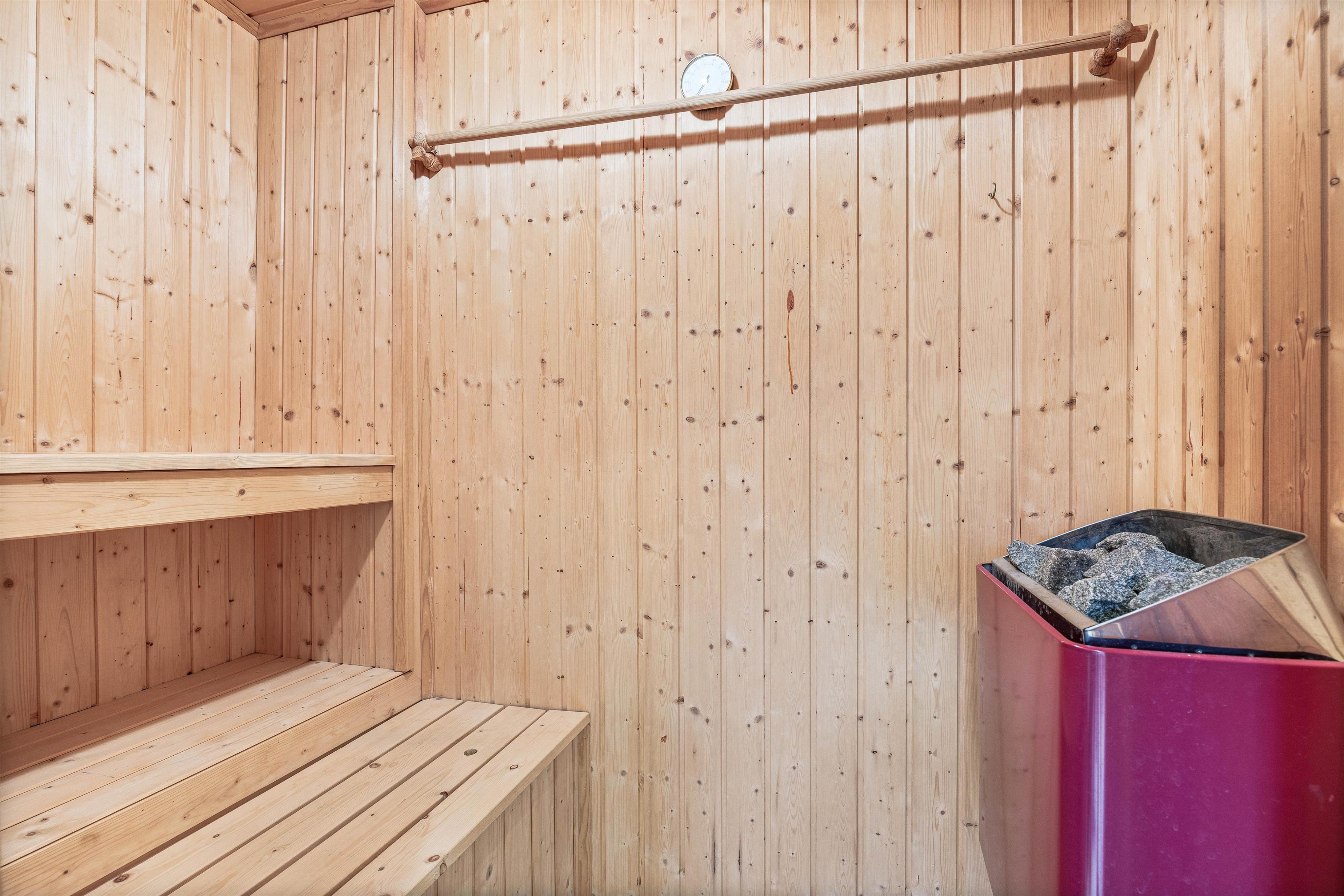 Om aftenen kan I slappe af i de to soveværelser, der hver er udstyret med en dobbeltseng, og lade batterierne op. I feriehusets badeværelse er der installeret gulvvarme, så man ikke får kolde fødder på kolde dage. Efter en lang gåtur på stranden kan I varme op i feriehusets egen sauna og igen få varmet kroppen igennem.