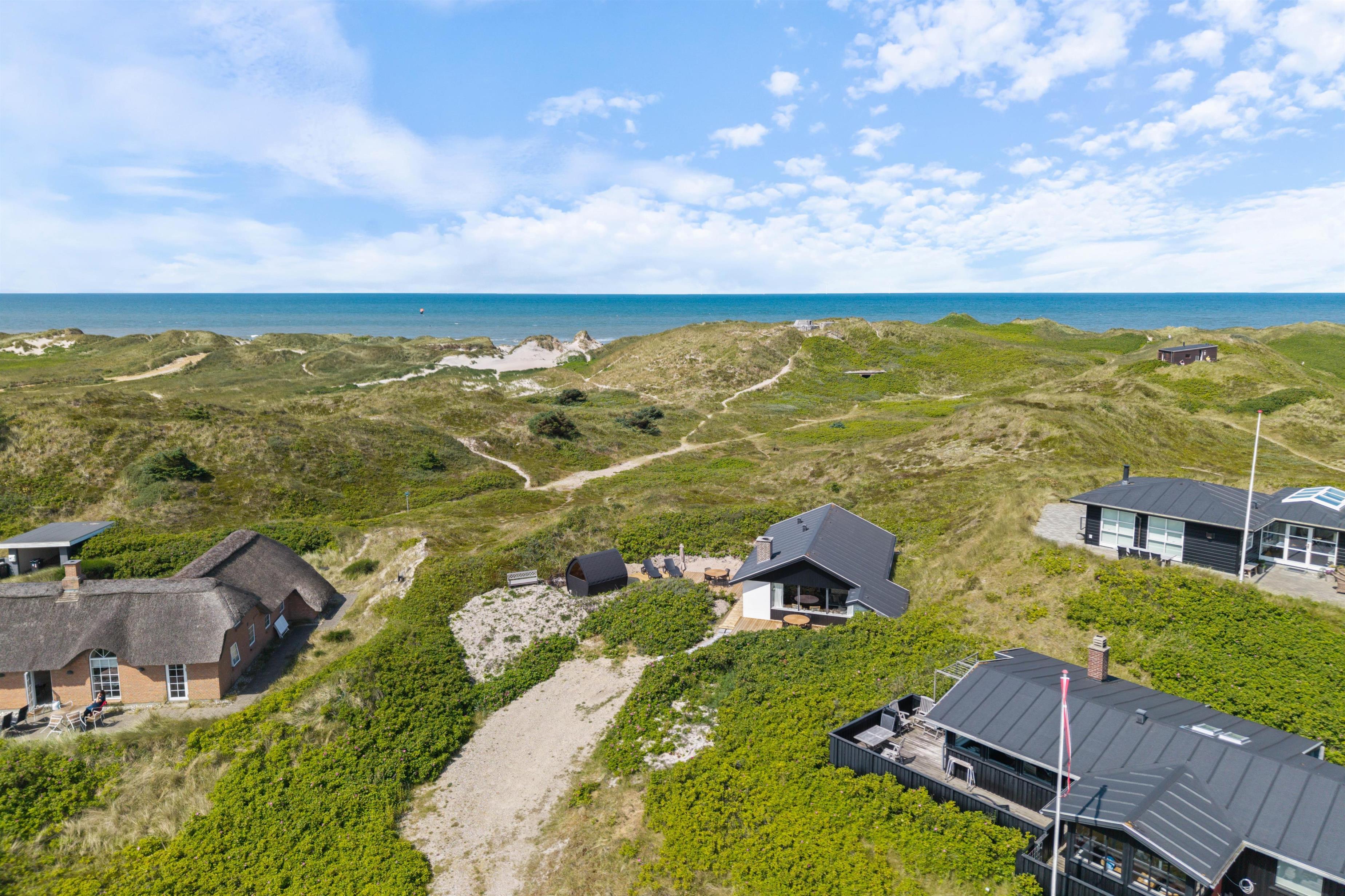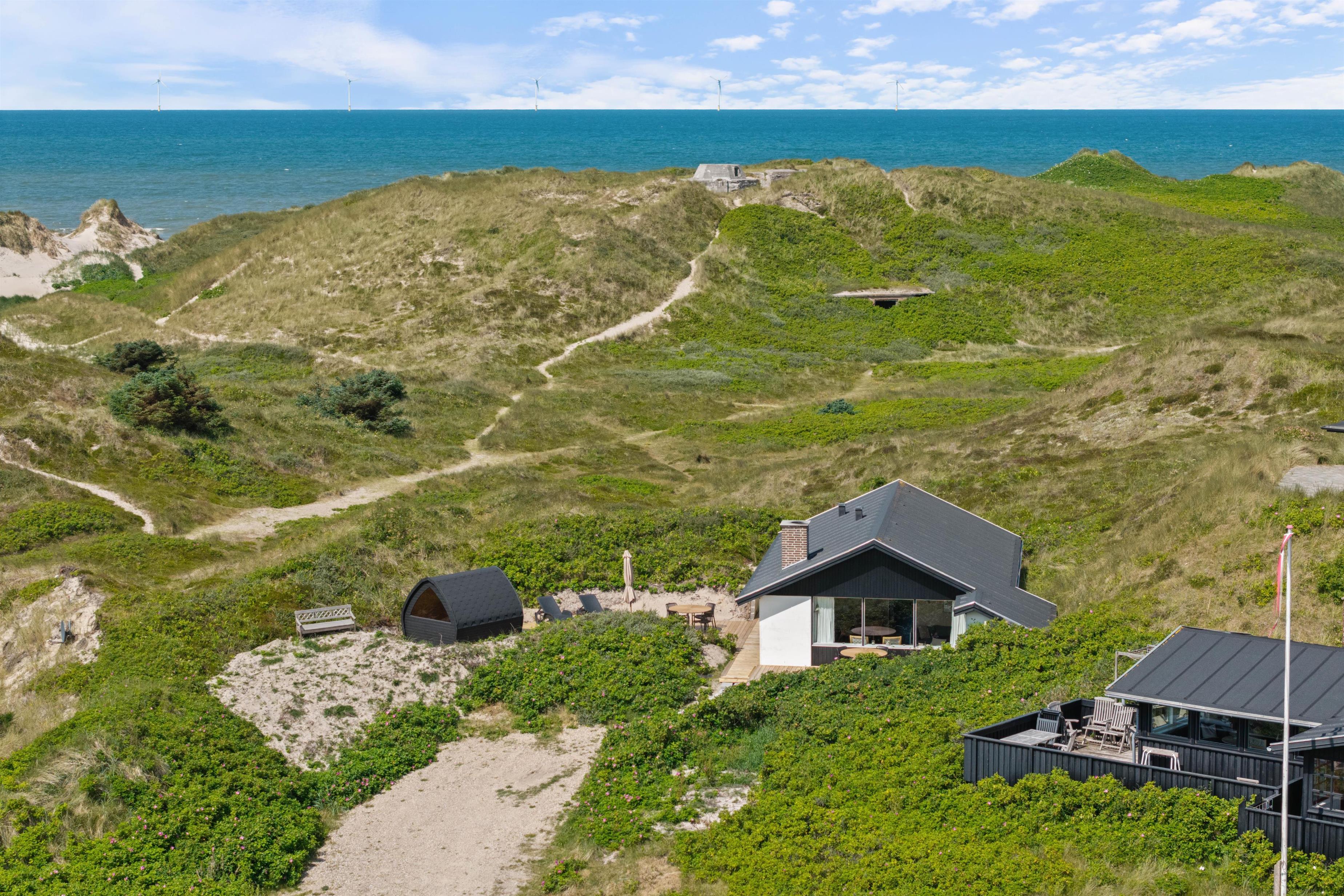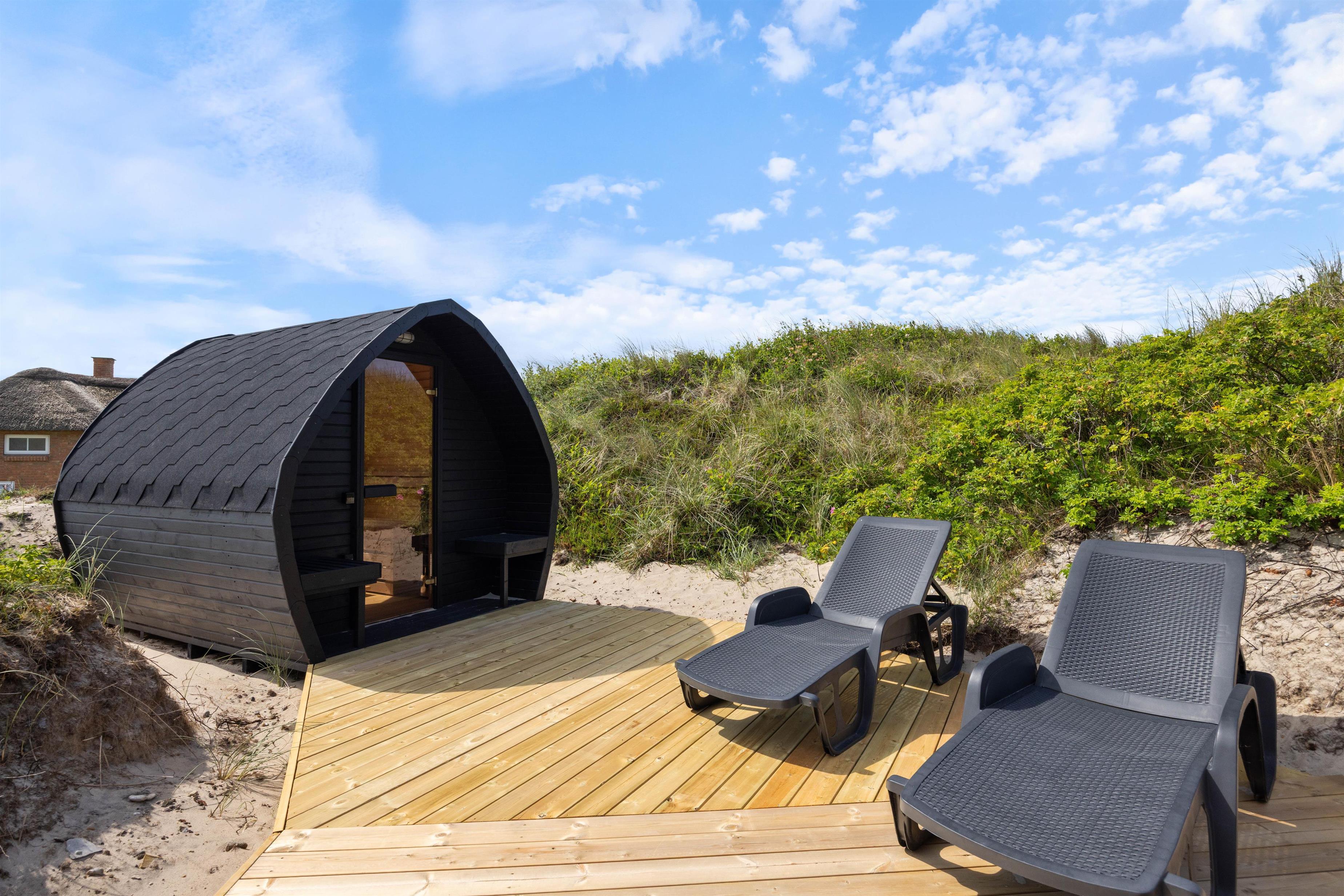 Som en af de unikke funktioner i dette sommerhus i Søndervig, er en udendørs sauna til jeres rådighed. Dette er en fantastisk mulighed for at forkæle jer selv efter en dag ved stranden eller en lang gåtur i området. I har en Chromecast tilgængelig for dem, der ønsker lidt ekstra underholdning eller filmhygge om aftenen. I har her mulighed for at medbringe jeres hund, så hele familien kan holde en god ferie sammen. De store udendørs arealer og den korte afstand til havet gør dette sommerhus til den perfekte destination for jer, der ønsker at nyde ferien med hele familien, med mulighed for gode og lange gåture.