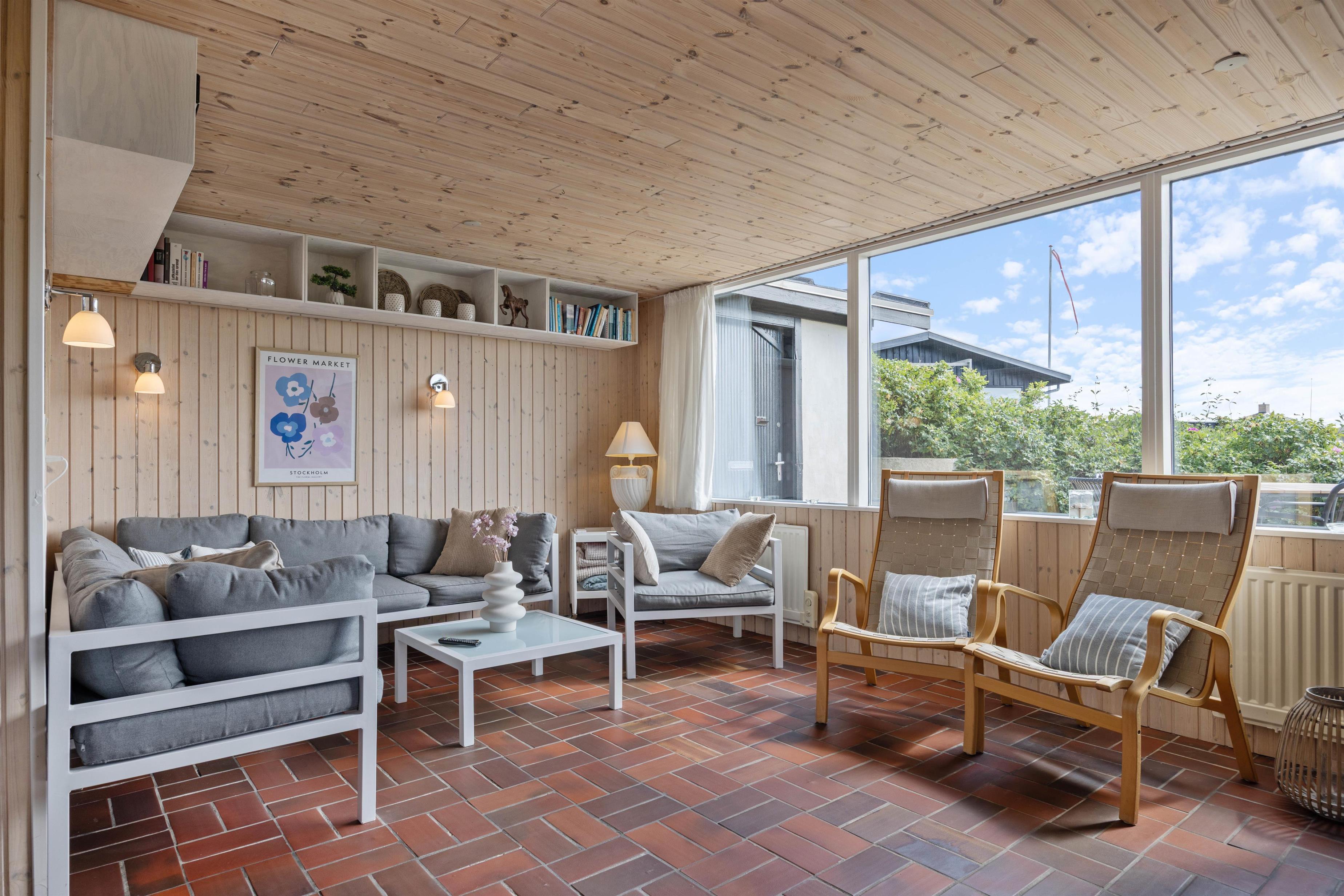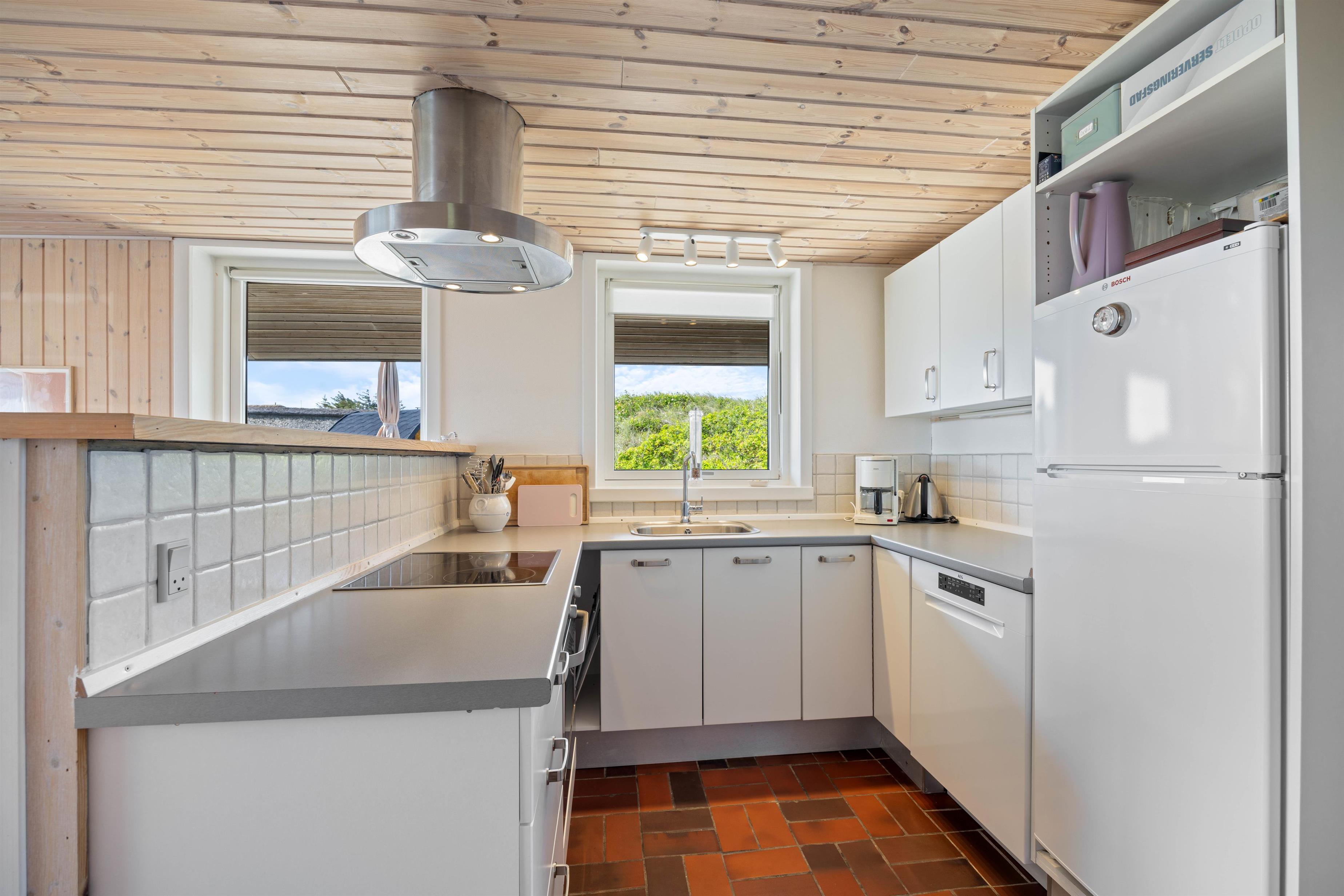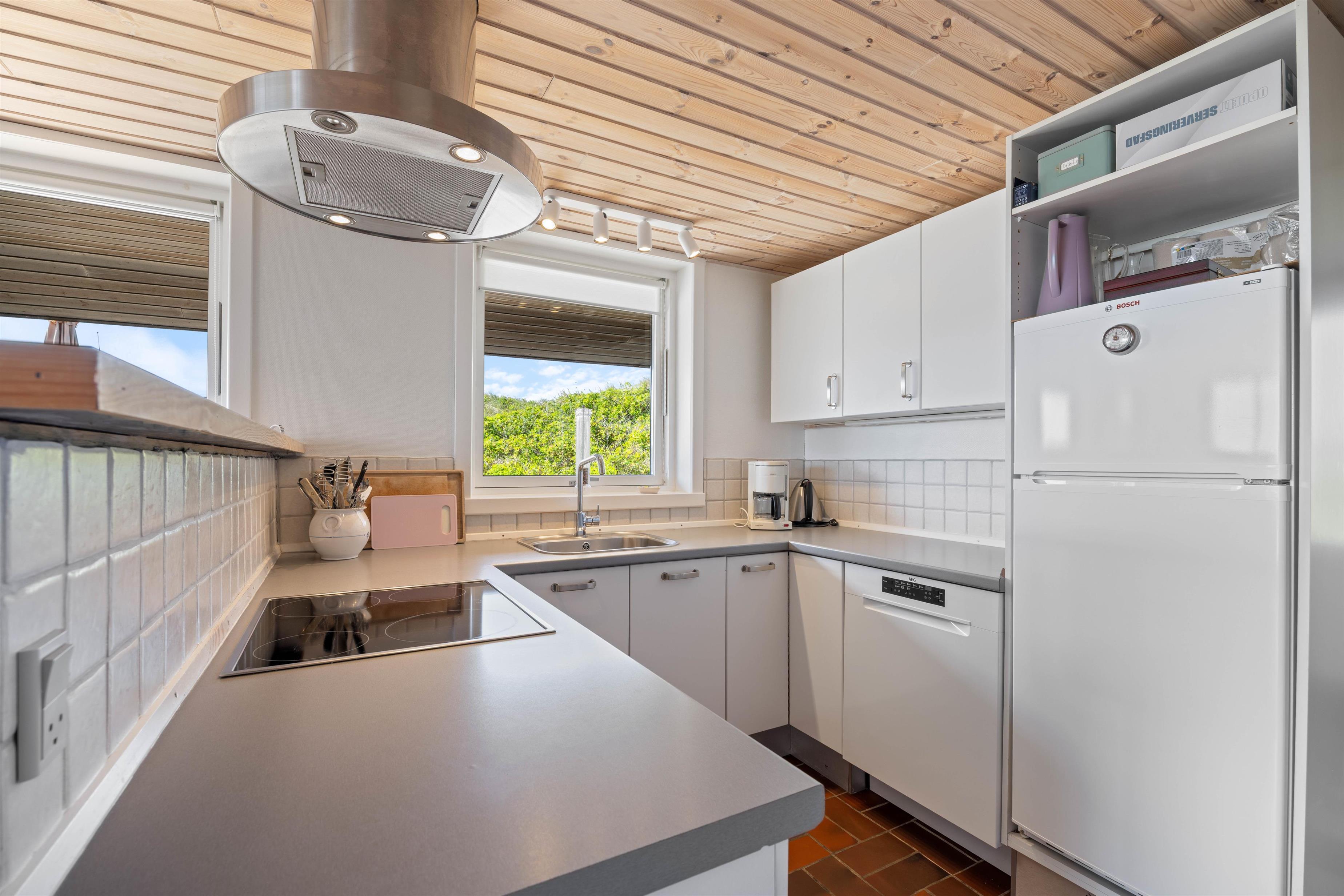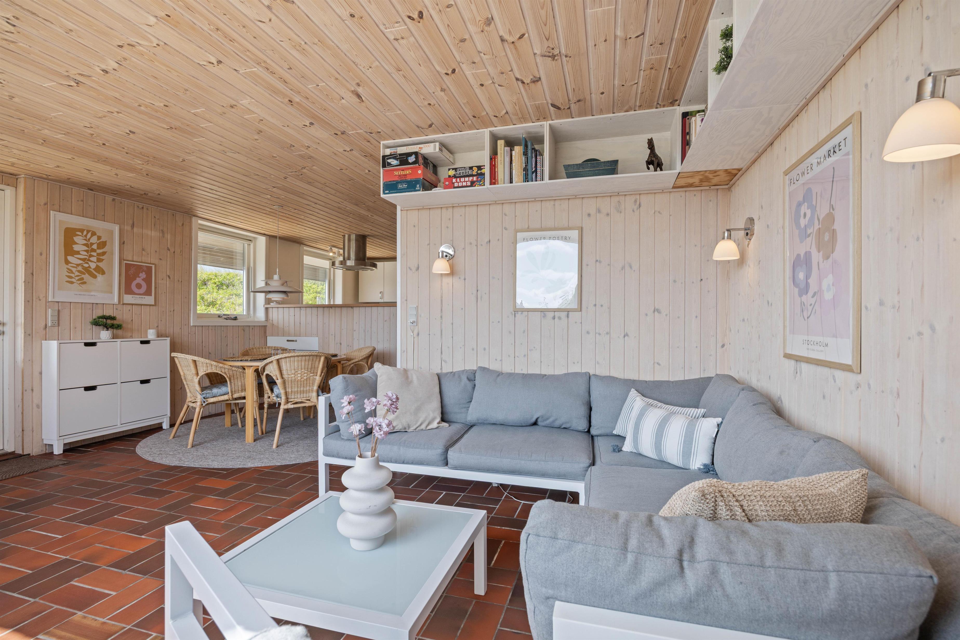 Både indendørs og udendørs oser sommerhuset af hygge stemning. Indvendigt inviterer en indbydende brændeovn til hyggelige aftener, hvor I kan nyde den knitrende ild og roen. Udenfor finder I en hyggelig åben terrasse, der med sine havemøbler og grill, indbyder til hyggelige aftener, med et godt måltid tilberedt på grillen. Den omkringliggende klitgrund giver en fantastisk mulighed til leg og afslapning.