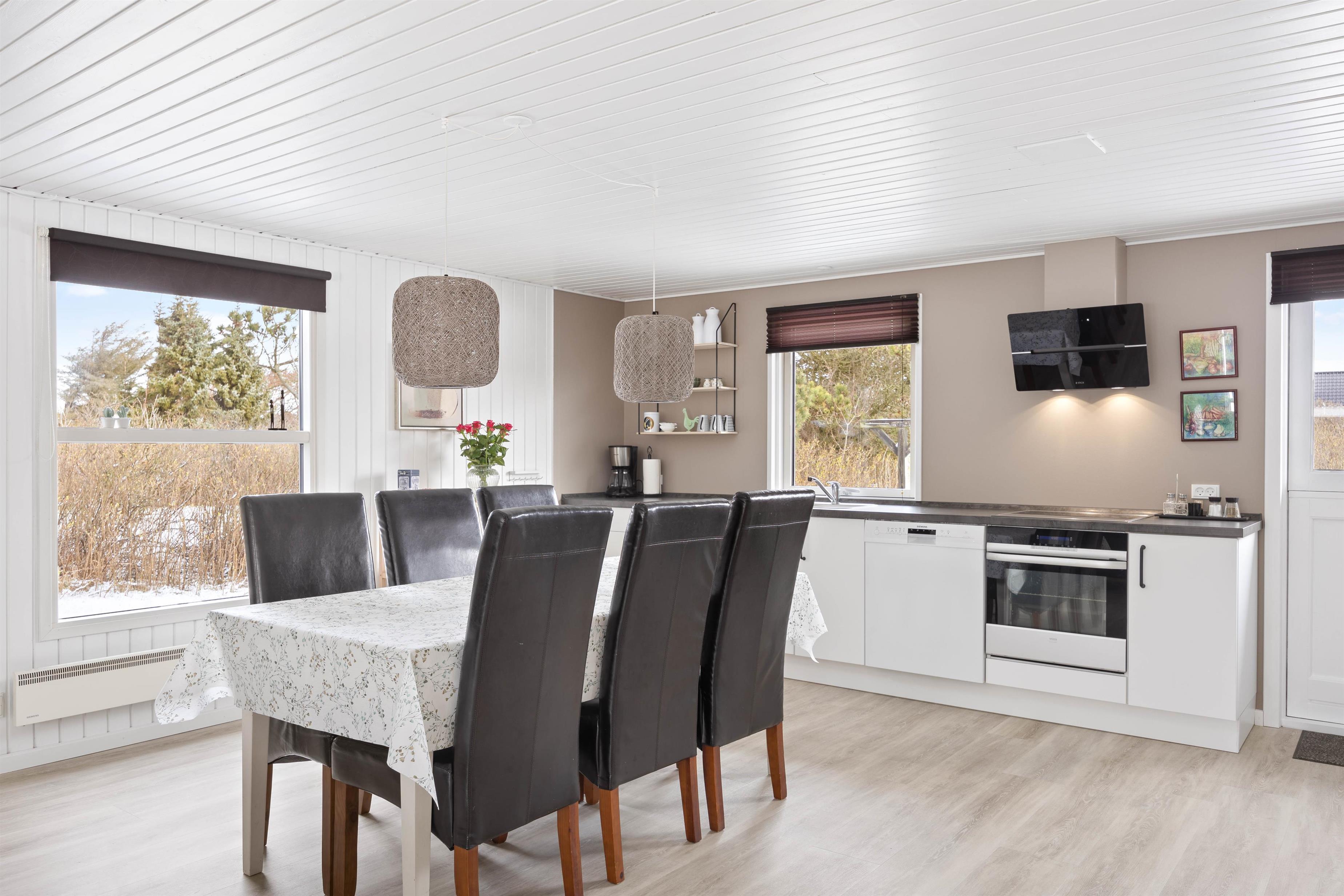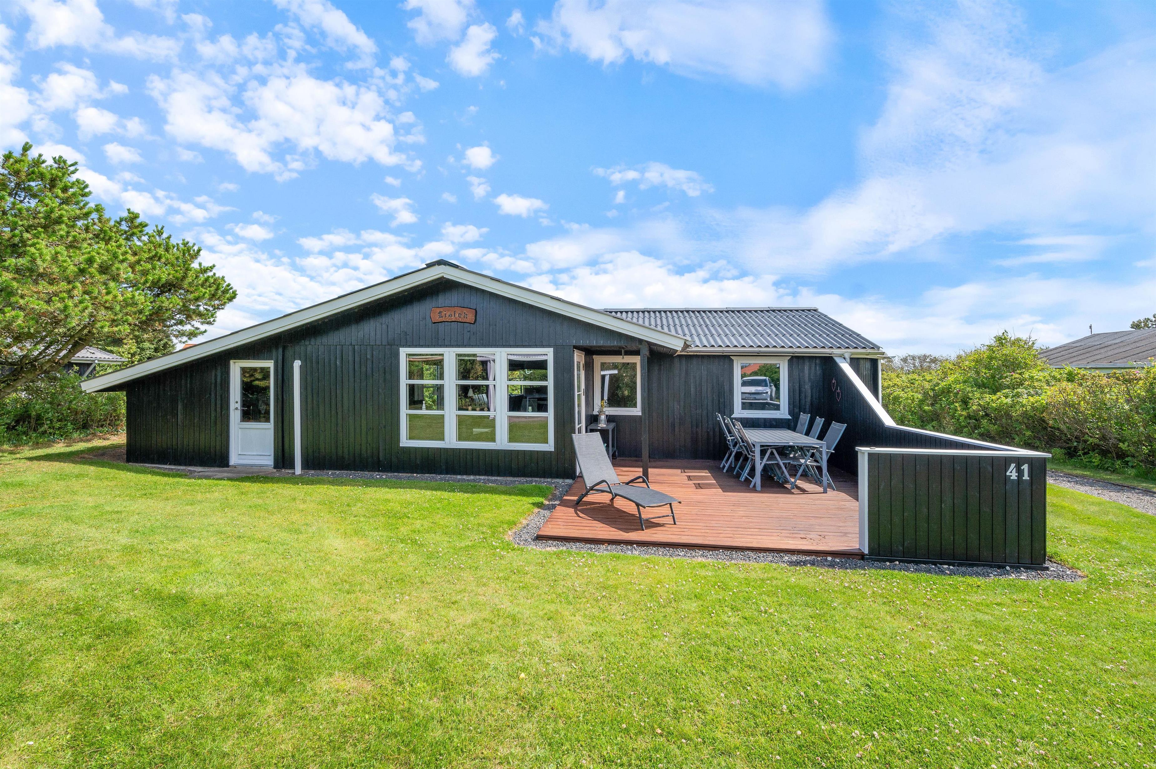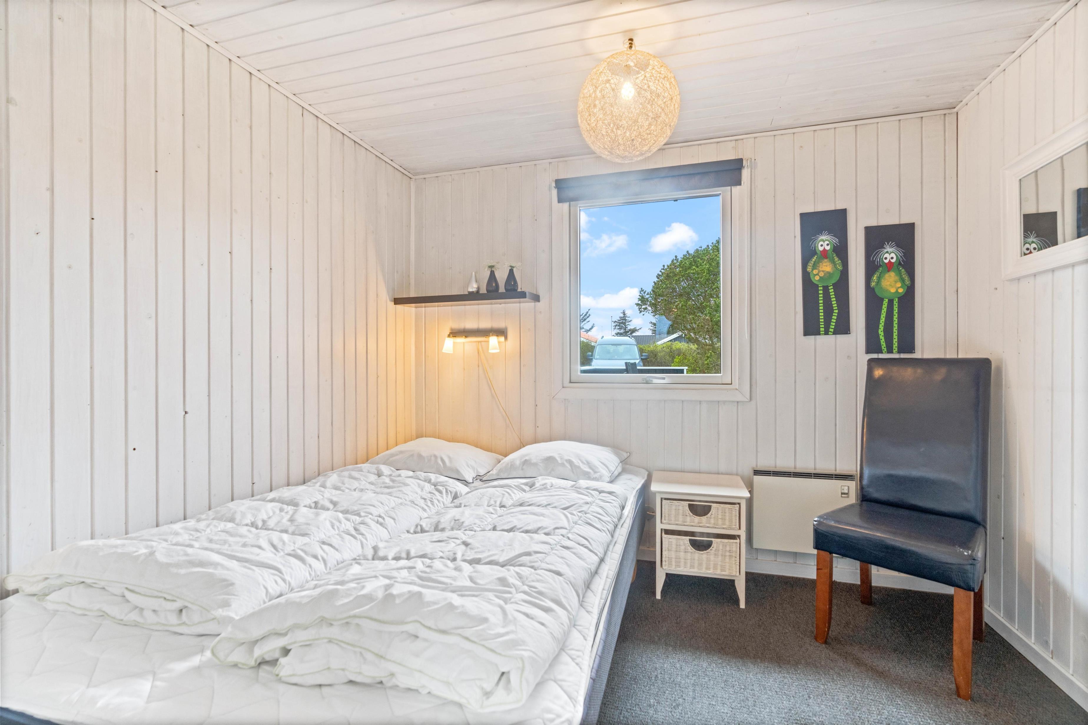Her får I et pragfuldt sommerhus, som er lyst og romantisk indrettet og med god plads til seks personer. Sovepladserne er fordel på tre værelser, hvoraf de to er med dobbeltseng og det sidste værelse med en køjeseng - Det helt perfekte børneværelse. Sommerhuset befinder sig på adressen Nordsøvej 41, og indbyder til skønne feriedage med familien. Den rummelige opholdsstue er kombineret med det åbne køkken, hvor der er god plads til at kokkerere mad. Den lyse og moderne-indrettet stue er med brændeovn, som yderligere er med til at bidrage til den hyggelige atmosfære.