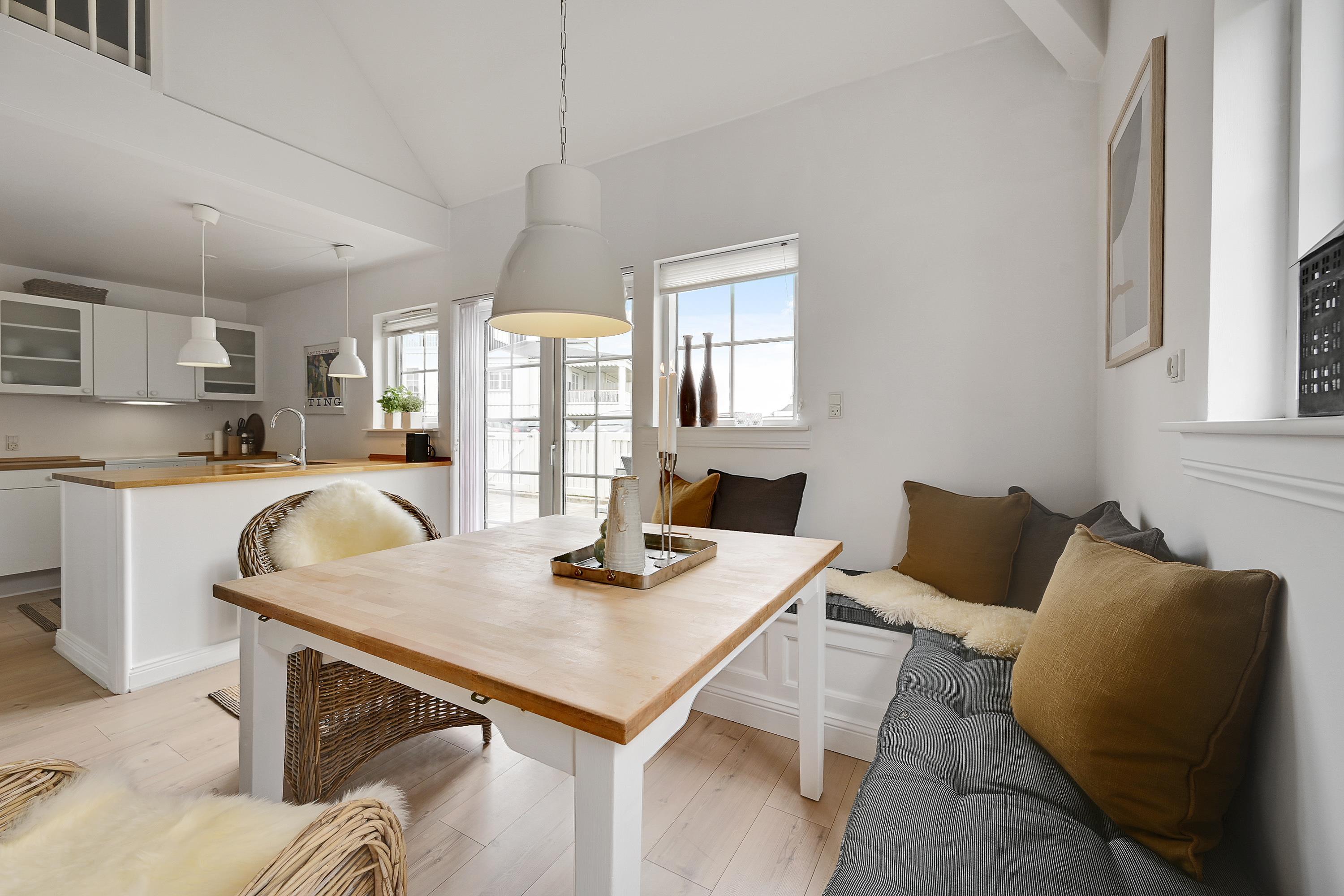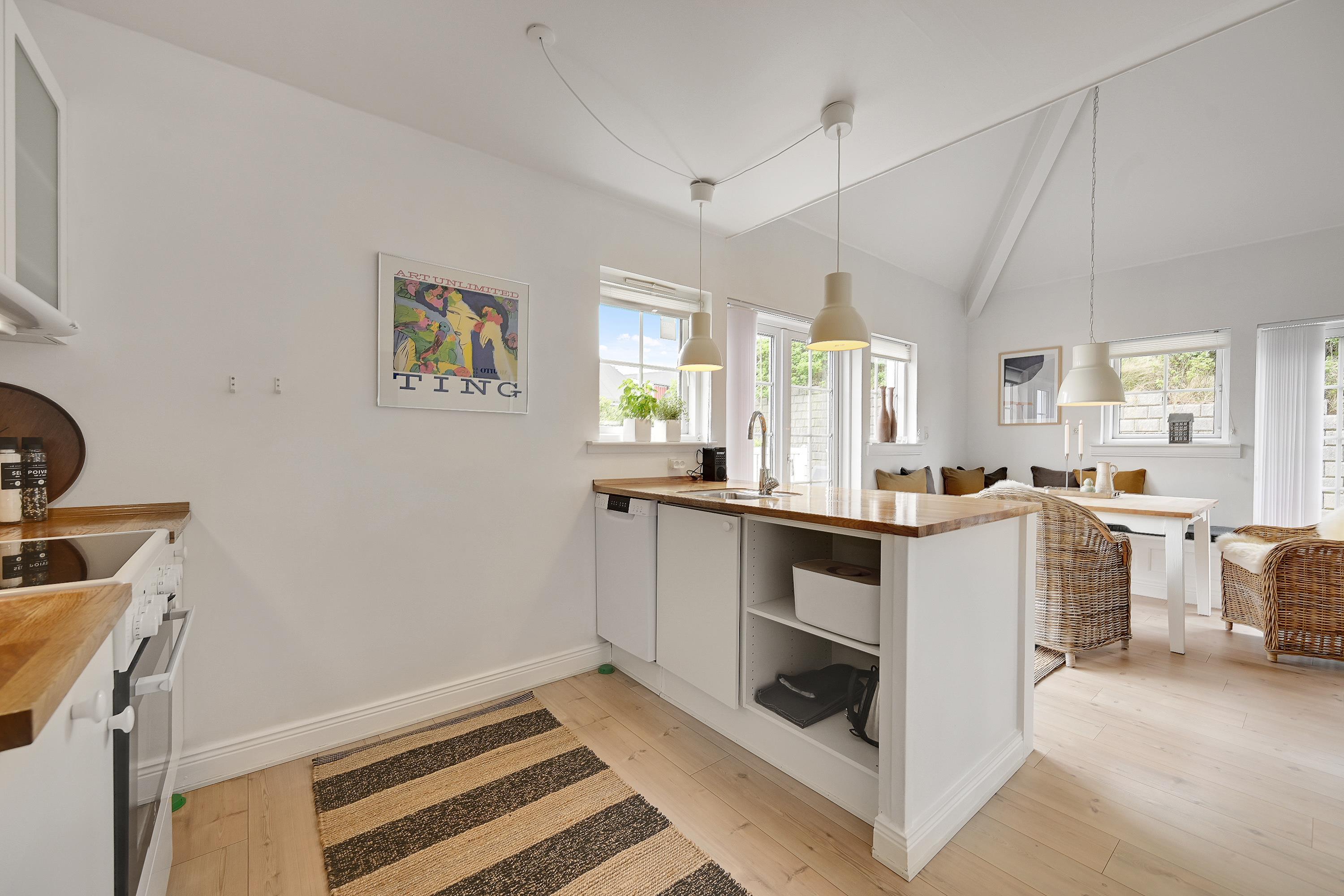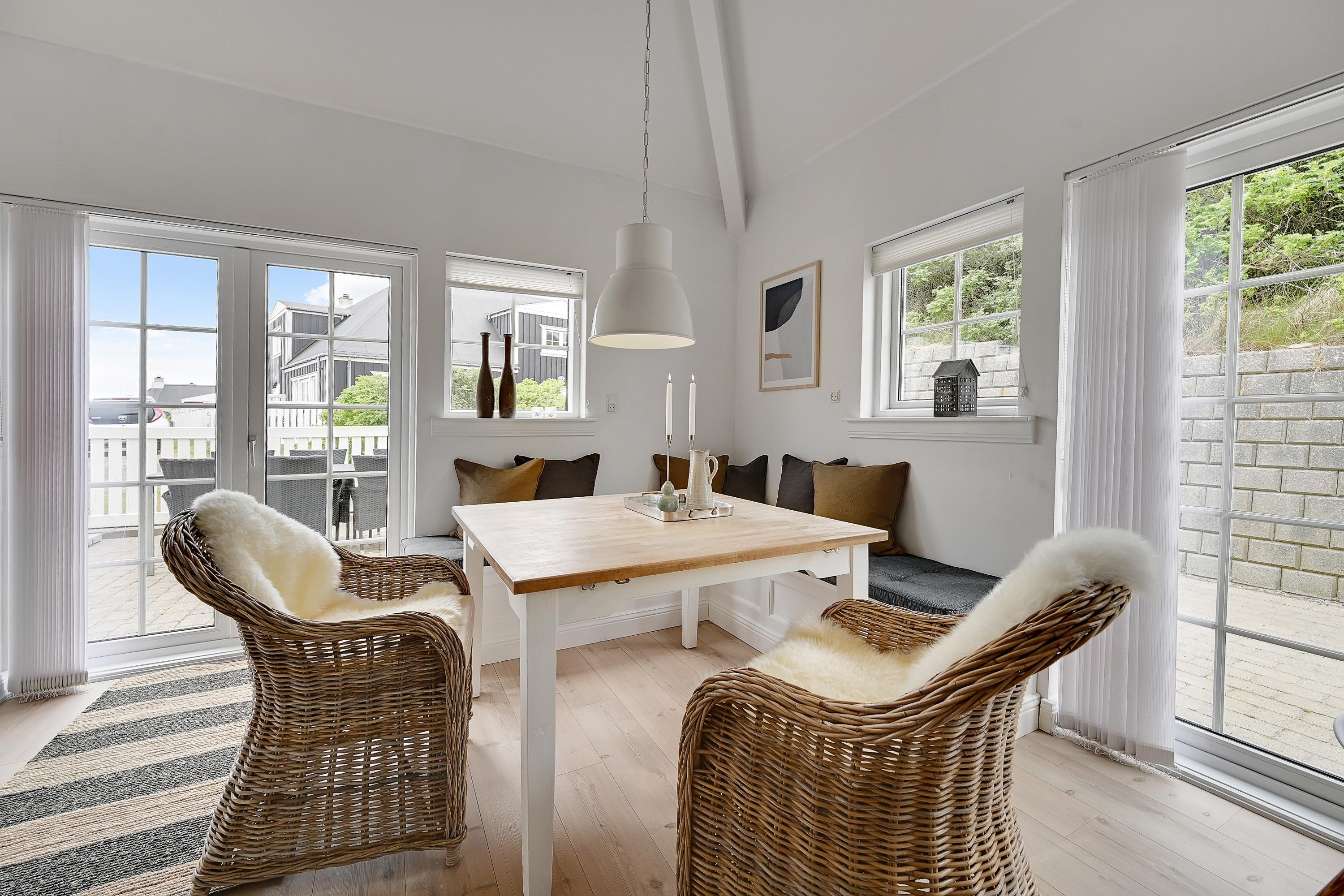 Indvendigt får I en lys og hyggelig ferielejlighed og en fredfyldt atmosfære, som gør, at I med det samme vil falde godt til. Skal I værne lidt ekstra om jer selv og hinanden, kan I tænde for saunaen eller starte spabadet og bruge en aften i ro og fred i varmen. De praktiske opgaver bliver også minimeret, da der både er en opvaskemaskine, vaskemaskine og tørretumbler til rådighed. Heller ingen grund til at bekymre sig om kolde fødder om morgenen, da der er gulvvarme i badeværelset.