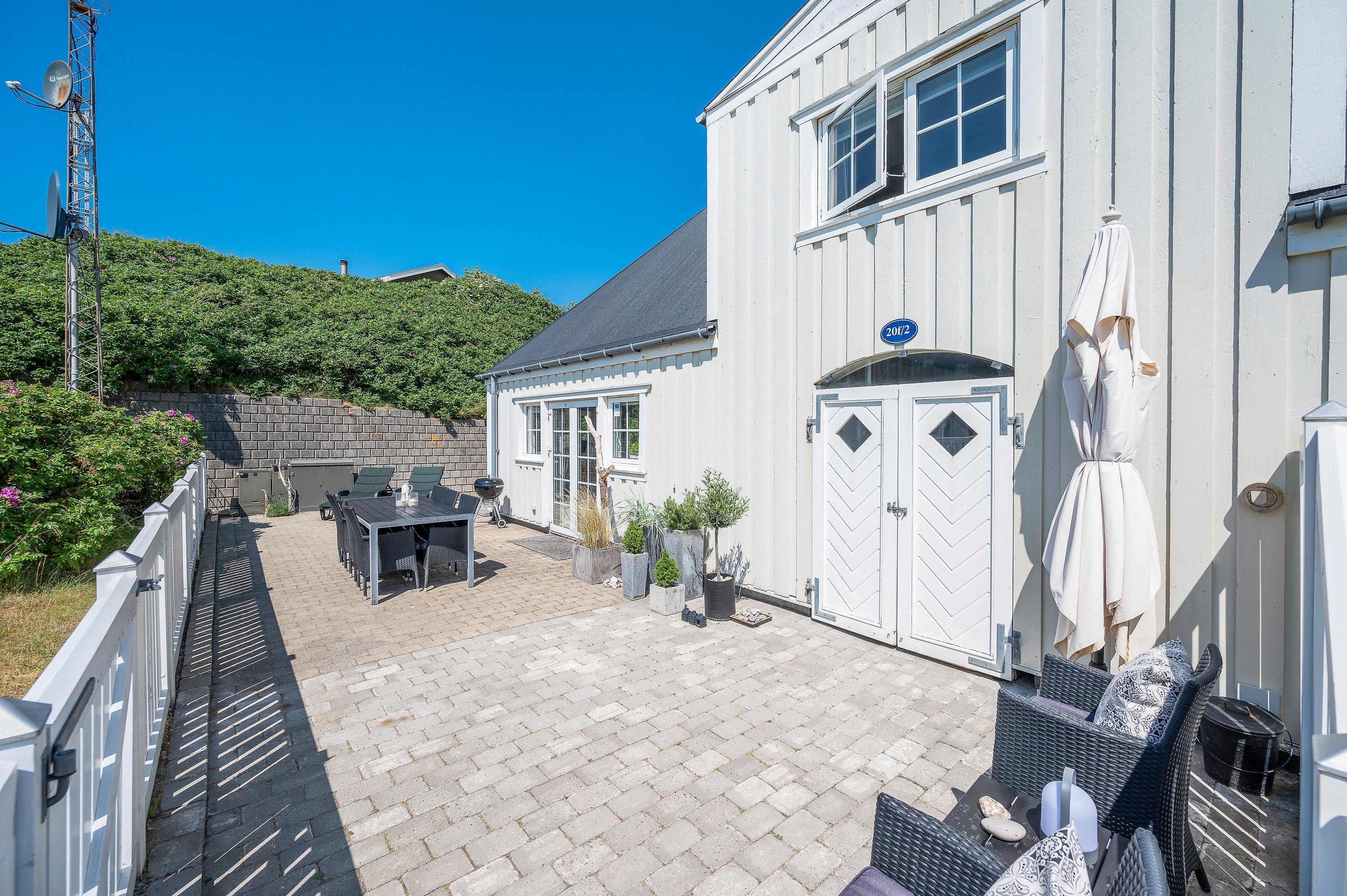 På den afskærmede og lukkede terrasse er der gjort klar til, at I kan nyde de varme solskinsdage i liggestolene eller havemøblerne, og om aftenen kan der tændes op i ferielejlighedens grill, hvis I skal have en ekstra hyggelig feriemiddag.