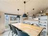 Det dejligt store køkken, som står i åben forbindelse med stue og spisestue indbyder til fælles madlavning og masser af gode ferieminder. Det er også her hvor I finder sommerhusets brændeovn, der altid er garant for at sprede en masse varme og hygge. Hvis I ønsker en mere økonomisk opvarmning af huset, er der også en Luft-til-luft varmepumpe til rådighed, der sikrer et behageligt indeklima hele året rundt.