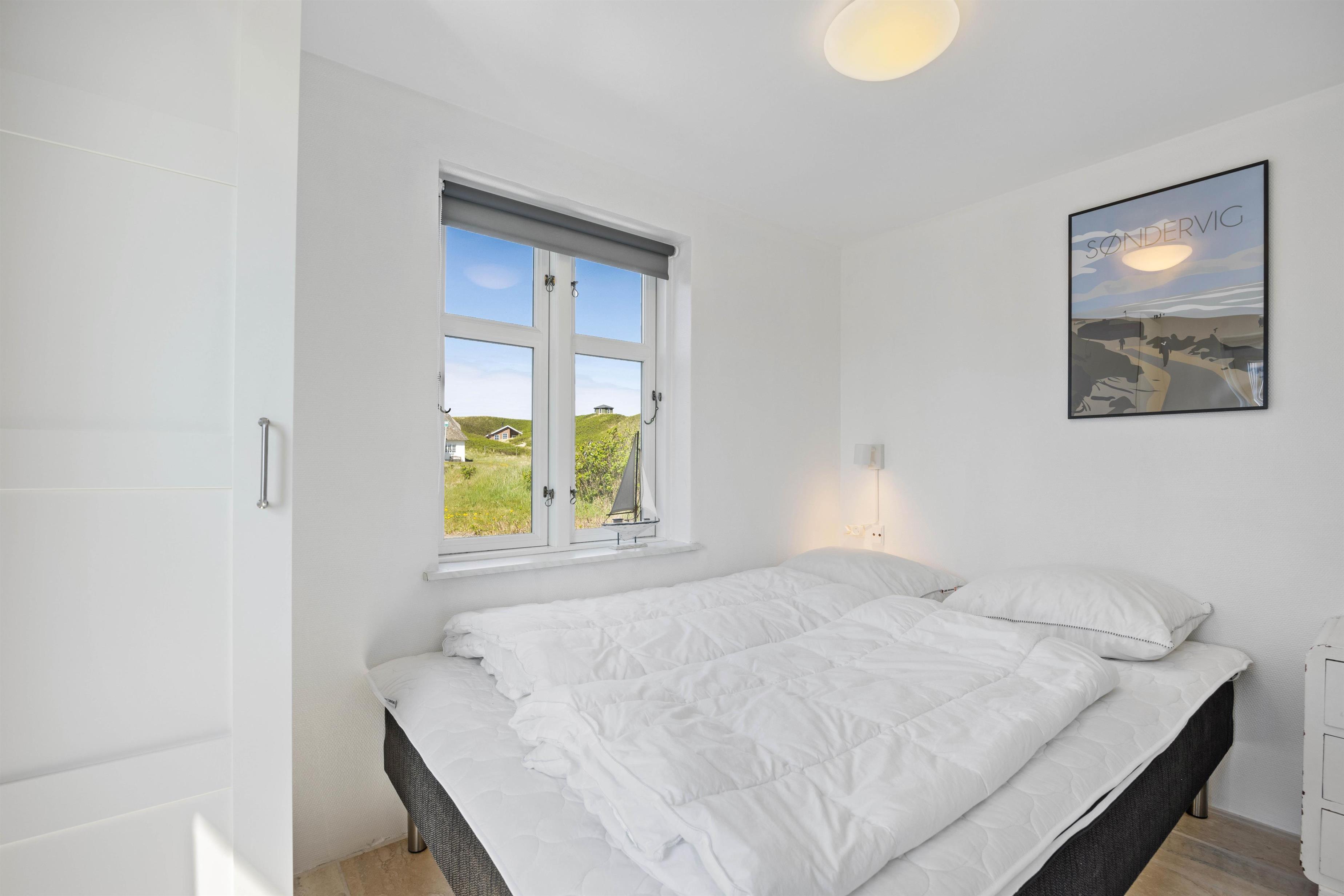 Tæt på Søndervigs hyggelige bymidte og kun 150 meter fra det brusende Vesterhav ligger dette hyggelige feriehus til 8 personer. Det nyligt renoverede (2025) sommerhus er charmerende indrettet med brændeovn, og med til huset hører et lille anneks med to soveværelser og eget badeværelse. Rejser I i elbil, har I også mulighed for at lade jeres elbil ved feriehuset.