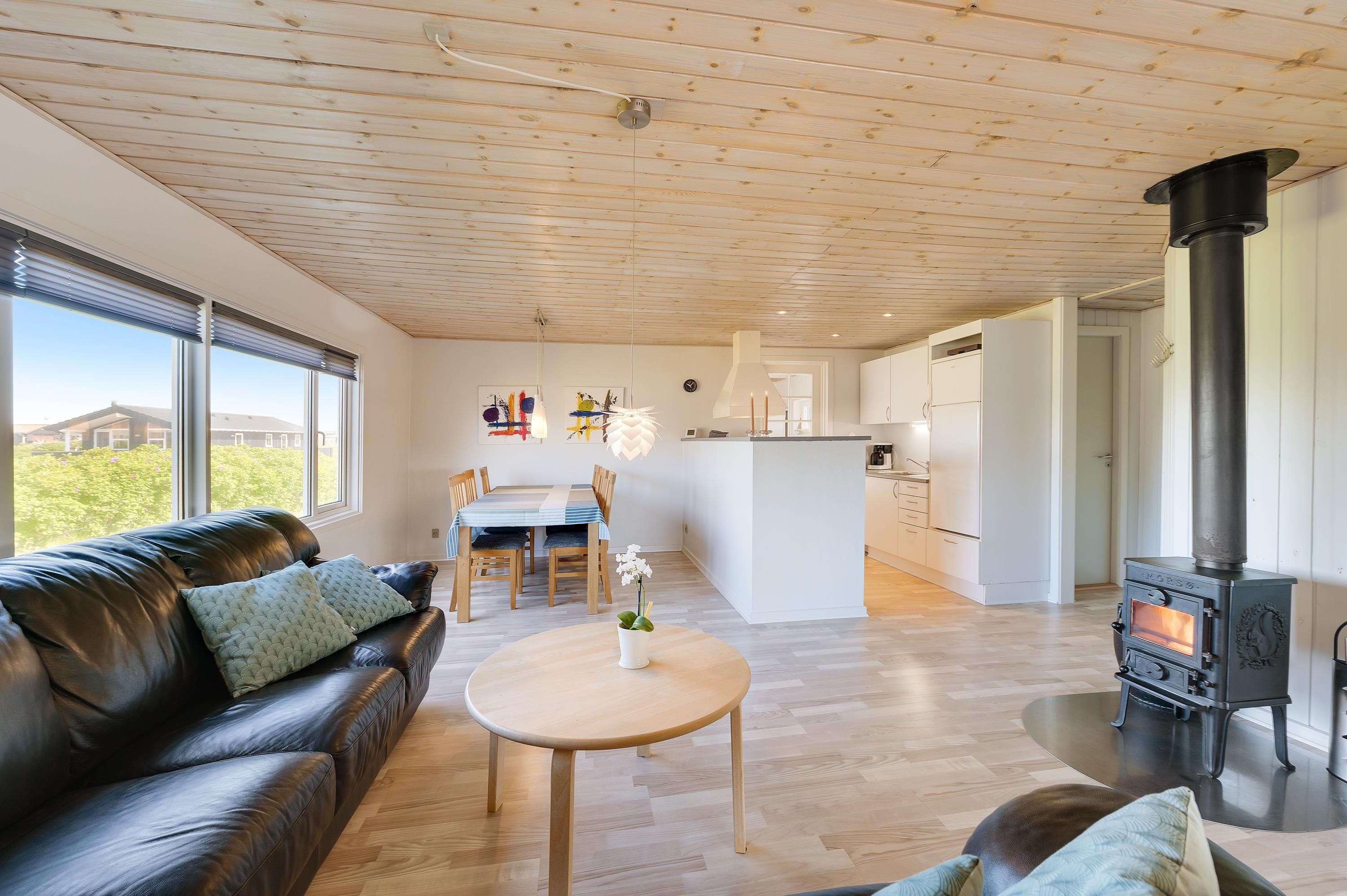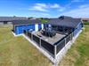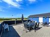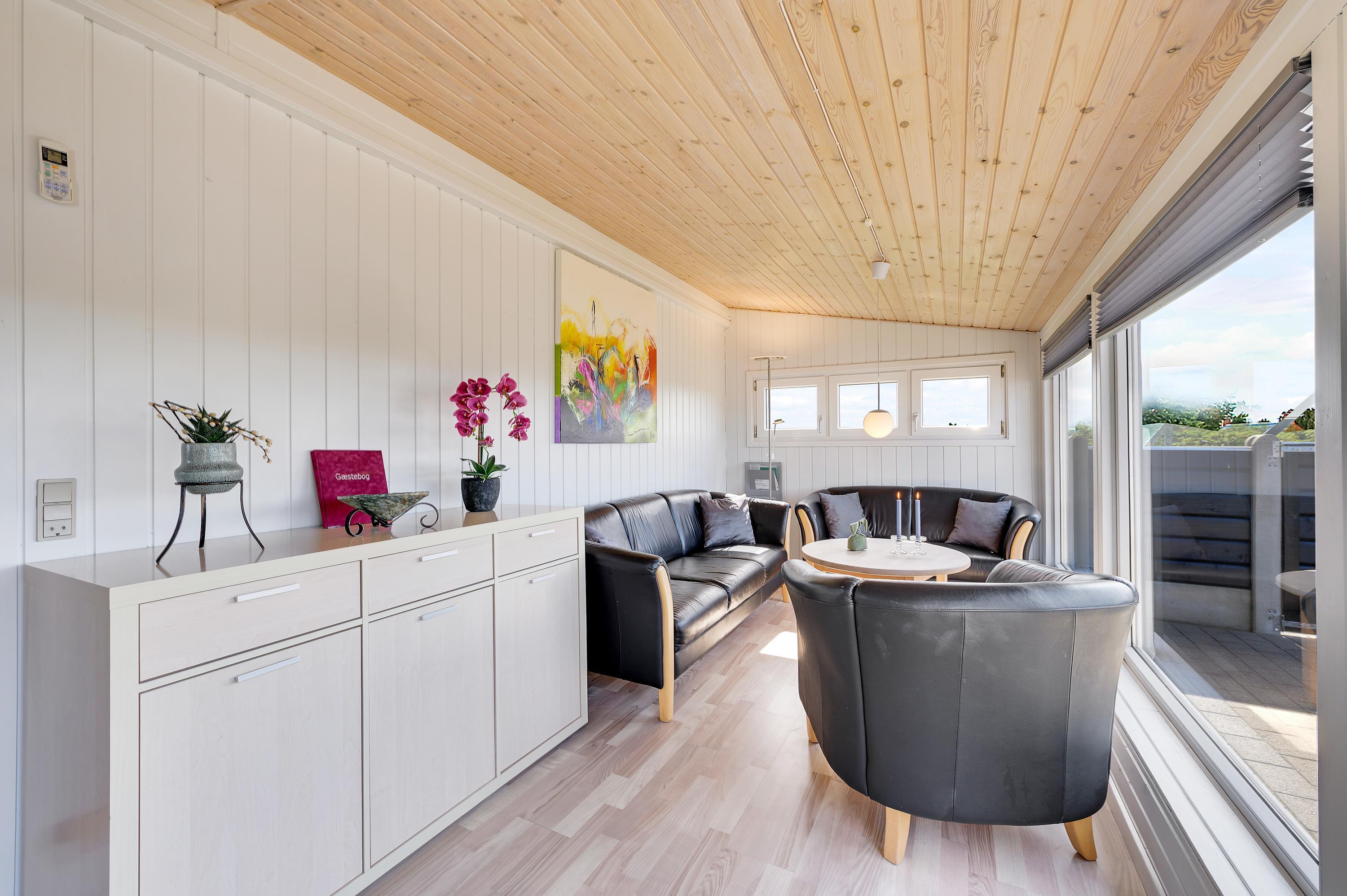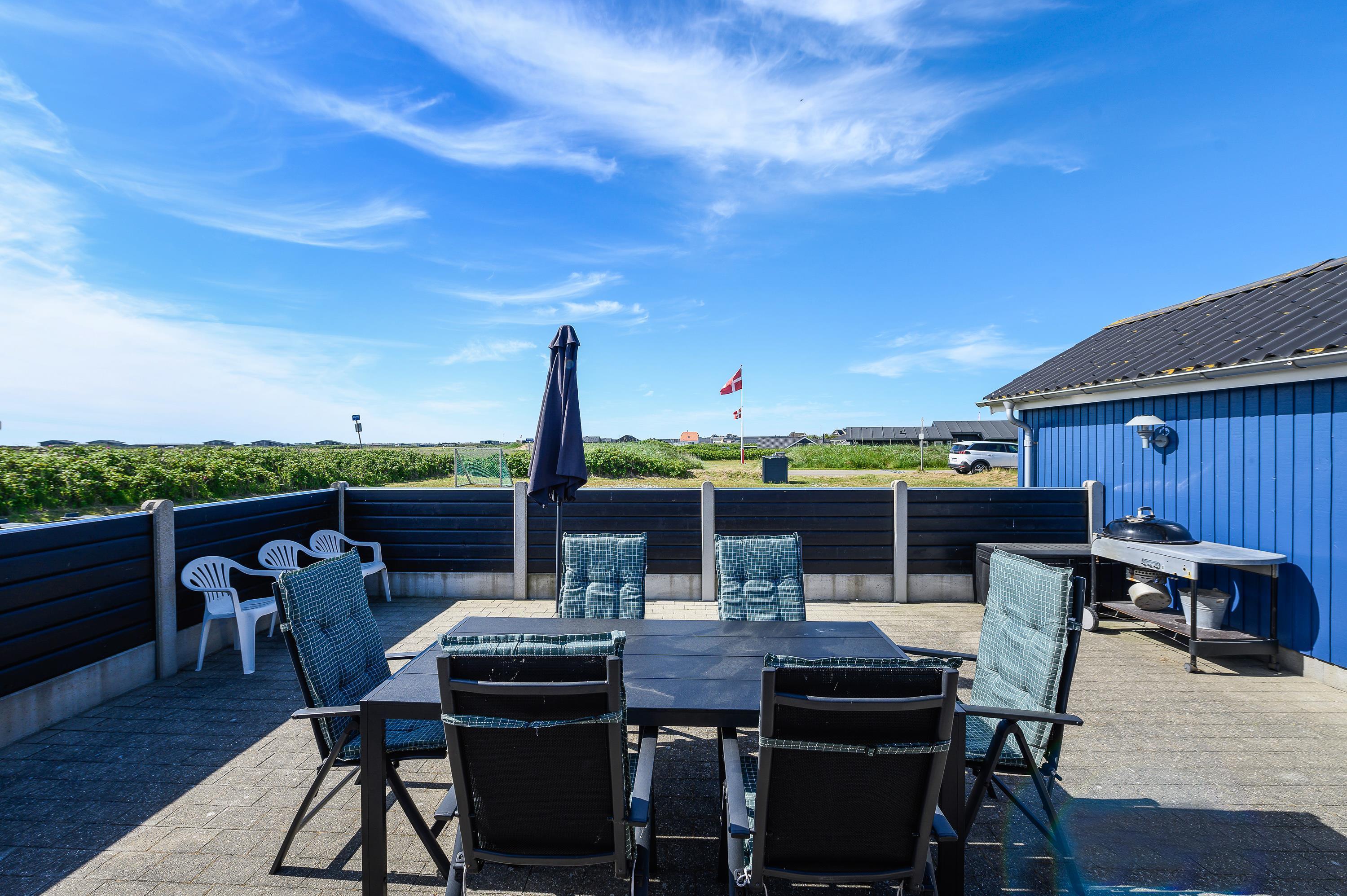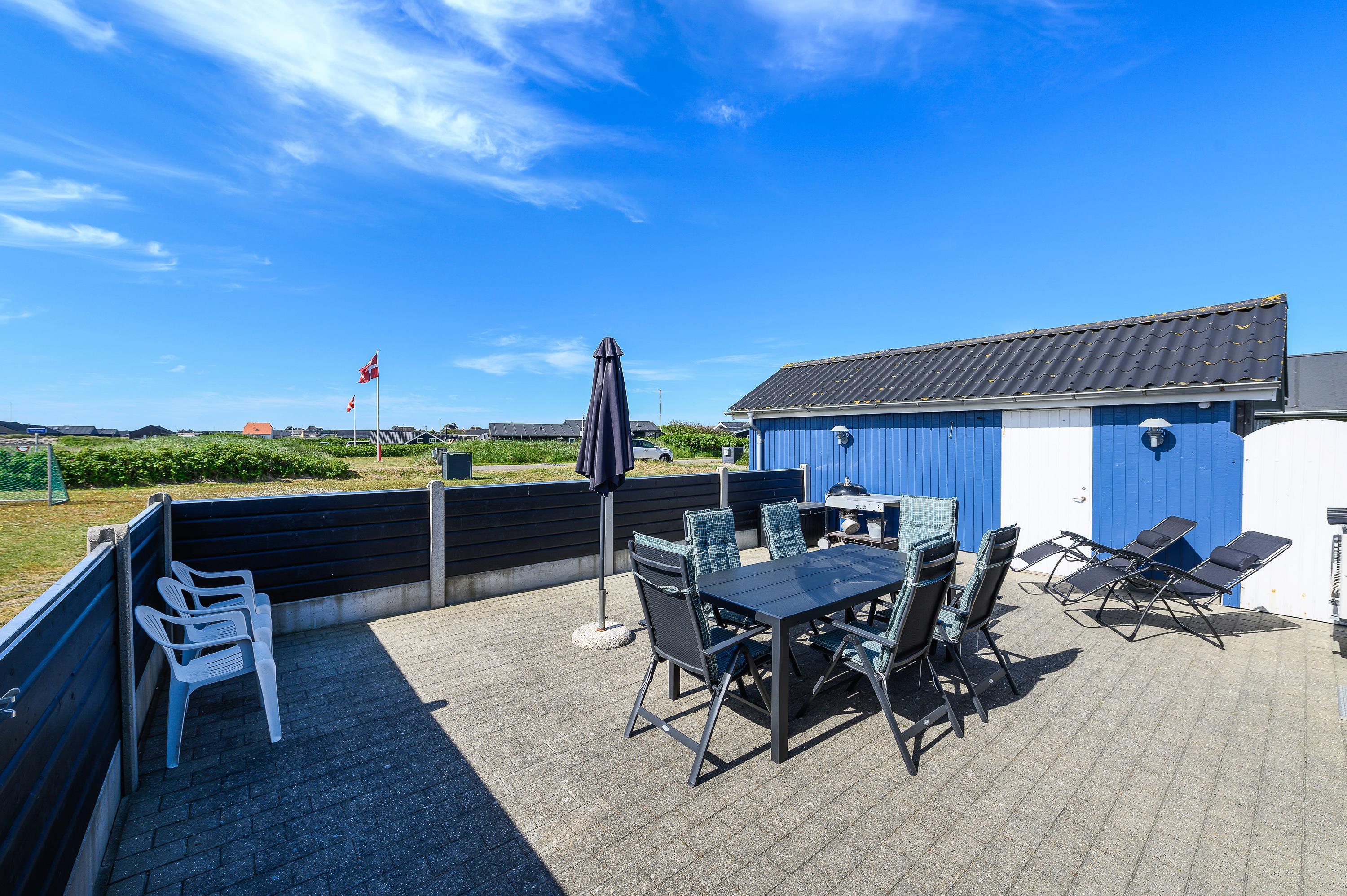 Fra stuen går du ned i en skøn havestue, hvorfra der er udgang til en stor lukket solgård. Udestuen inviterer til afslapning og naturoplevelser hele året rundt, mens den lukkede terrasse med havemøbler tilbyder et perfekt samlingspunkt til familiegrill med den medfølgende grill. Hvis børnene har brug for at bruge deres energi, er der både gynge, sandkasse og en fin plænegrund med fodboldmål klar til de små udenfor. Derudover befinder Vesterhavet sig kun 400 meter fra sommerhuset.