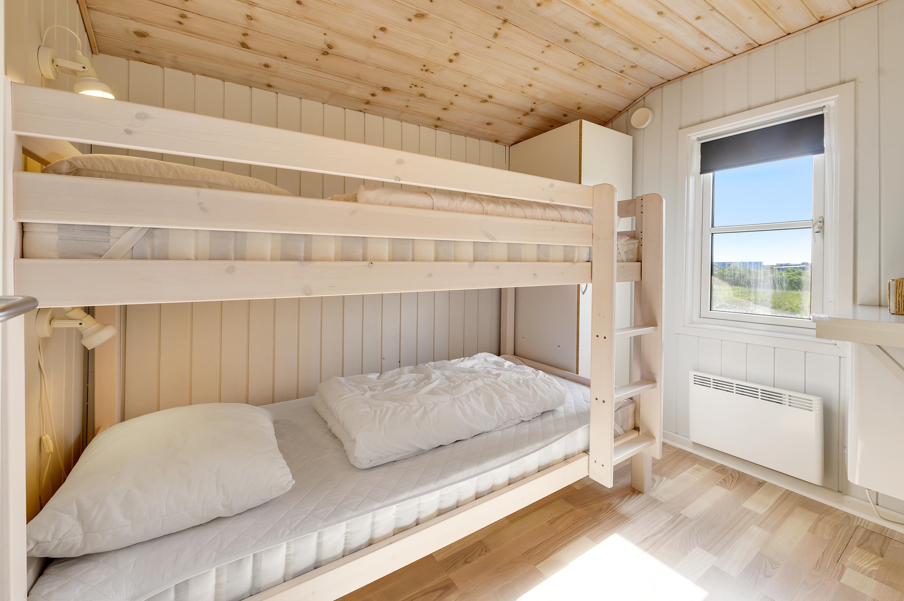 Dette rummelige sommerhus har gennemgået en omfattende renovering og fået en helt ny afdeling med stort bryggers, bad, soveværelse og en rigtig stor hems, der kan lukkes helt til. Perfekt til familier med børn. Her plads til i alt seks personer i tre soveværelser. Der er to gode dobbeltsenge og et værelse med en køjeseng. Værelset med køjeseng er især oplagt for børn, og der tilmed et ekstra "legeværelse", som de yngste feriegæster helt sikkert ville synes om.