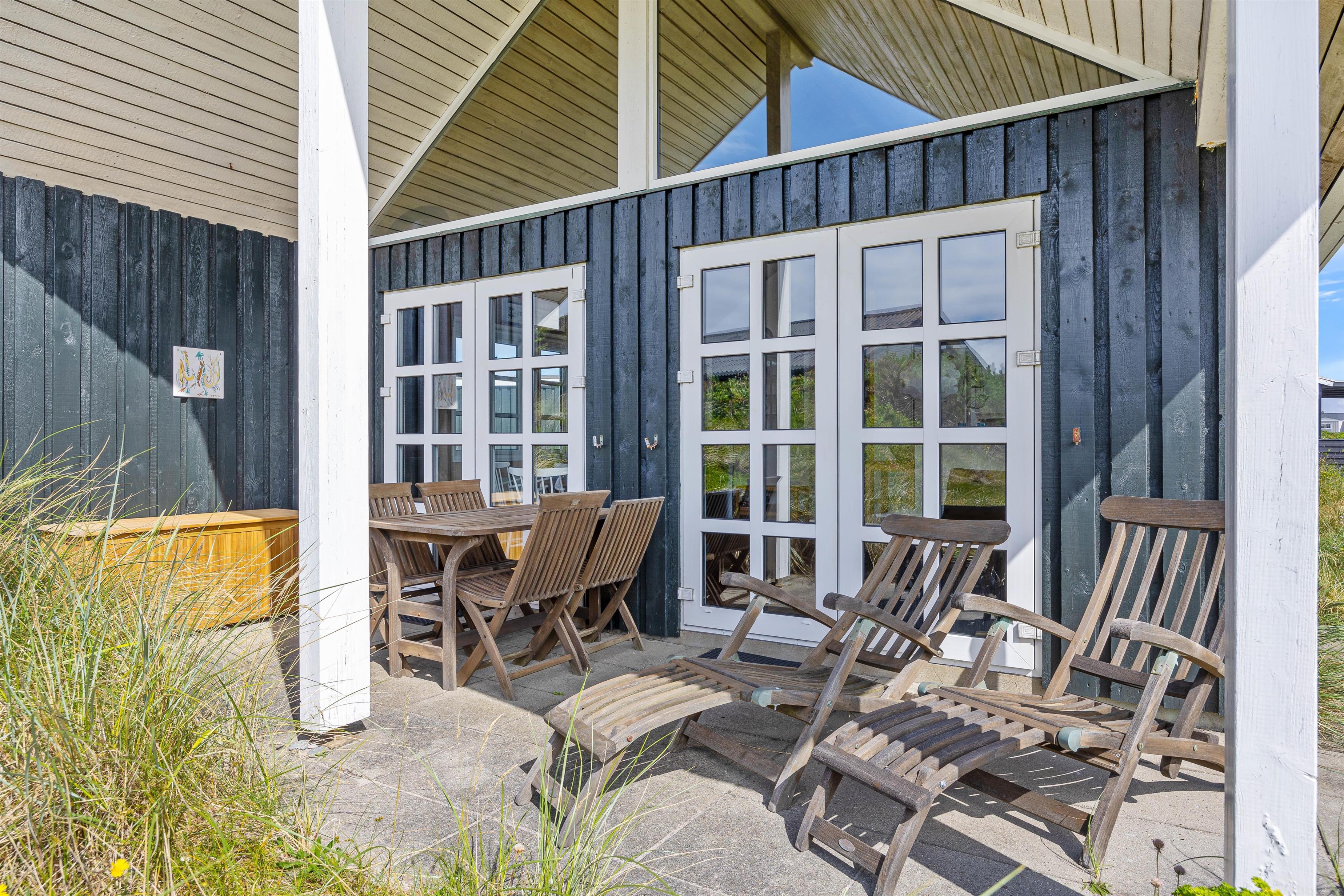 Den anden terrasse finder I mod vest. Her har I masser af sol om eftermiddagen og om aftenen, så I må ikke snyde jer selv for et godt aftensmåltid tilberedt på sommerhusets grill – det kunne jo nydes til den flotte solnedgang med et godt glas vin?