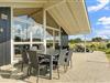 Udenfor er der en god terrasse med havemøbler og en grill, så I kan nyde feriemaden i det fri, med en kølig drink, imens børnene hygger sig enten på gyngerne eller i sandkassen. Den overdækkede terrasse gør at man kan sidde her selv når duggen falder eller det støvregner let. Jer ka I nyde den dejlige natur og friske luft, evt. med et tæppe i havemøblerne om aftenen.