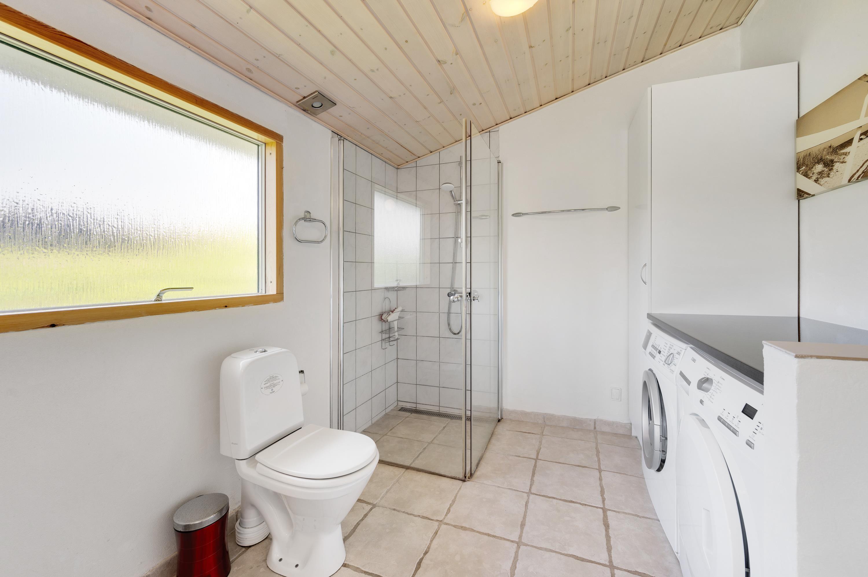 For jer, der elsker at kombinere hygge med moderne bekvemmeligheder, er dette sommerhus i Søndervig det ideelle valg. Køkkenet er fuldt udstyret med en opvaskemaskine, så I kan spare tid og nyde jeres ferie fuldt ud uden at skulle bekymre jer om opvasken. Det kombinerede spise- og opholdsområde inviterer til hyggelige måltider og afslappende aftener sammen. Desuden er der en vaskemaskine og tørretumbler, der giver ekstra bekvemmelighed under jeres ophold. Sommerhuset har også et redskabsrum, der kan aflåses, hvilket giver ekstra sikkerhed for jeres ejendele.