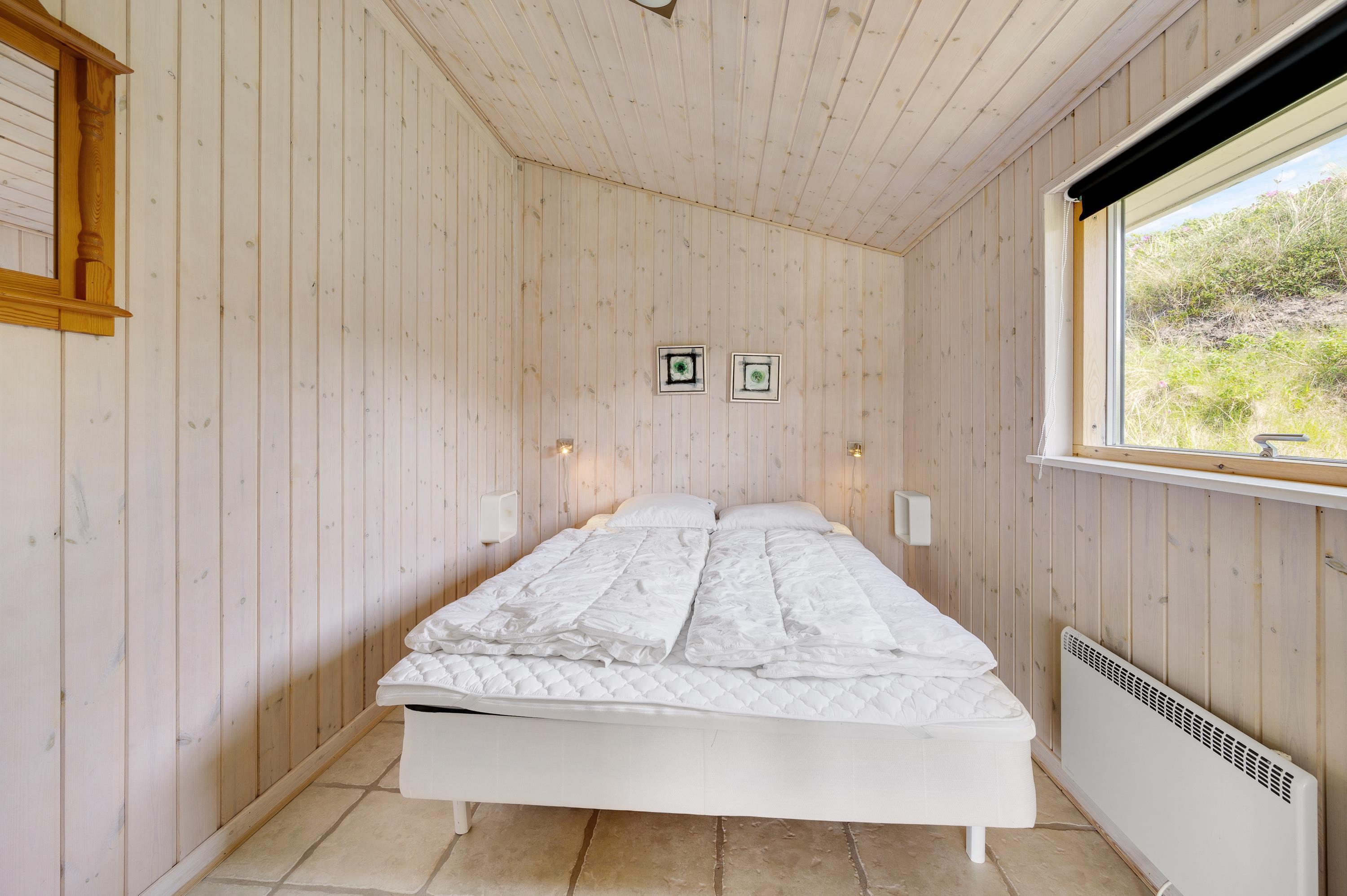 Dette sommerhus rummer i alt 3 soverum, hvilket gør det ideelt for op til seks personer. Sov komfortabelt og vågn op til lyden af bølgerne i et af de hyggelige soveværelser. Uanset hvilken tid på året I besøger, kan I skabe en hyggelig atmosfære i stuen ved at tænde op i brændeovnen. I skal ikke bekymre jer om kolde fødder, når I træder ind i badeværelset, da badeværelset har gulvvarme.