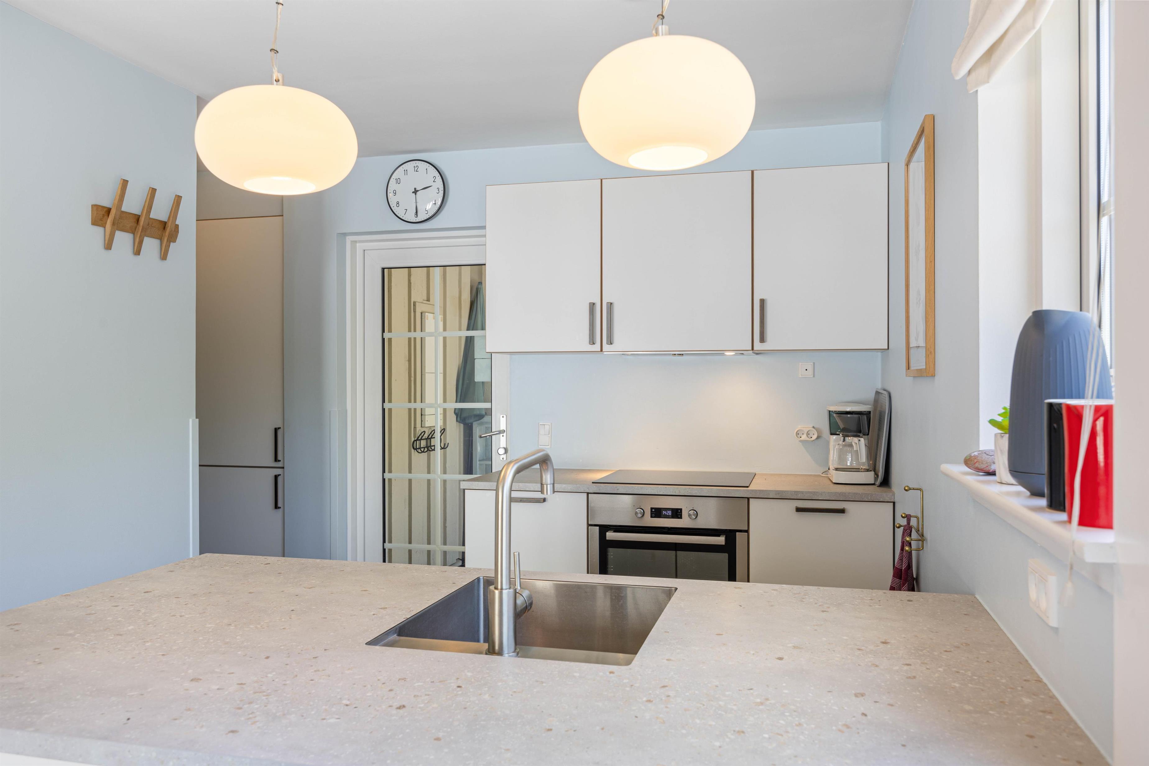 Ferielejligheden byder på en hyggelig indretning, hvor der er skabt nogle gode rammer for en afslappende og hyggelig ferie. I stueetagen af huset finder I det veludstyrede samtalekøkken, som ligger i åben forbindelse med spisepladsen og resten af stuen. Her er den hyggelige indretning med til at skabe en behagelig og dejlig atmosfære, hvor I vil kunne føle jer veltilpas og slappe af. Hvis I ønsker at skrue endnu mere op for den hyggelige stemning, kan I tænde op i lejlighedens brændeovn, der altid er garant for at skabe varme og hygge.