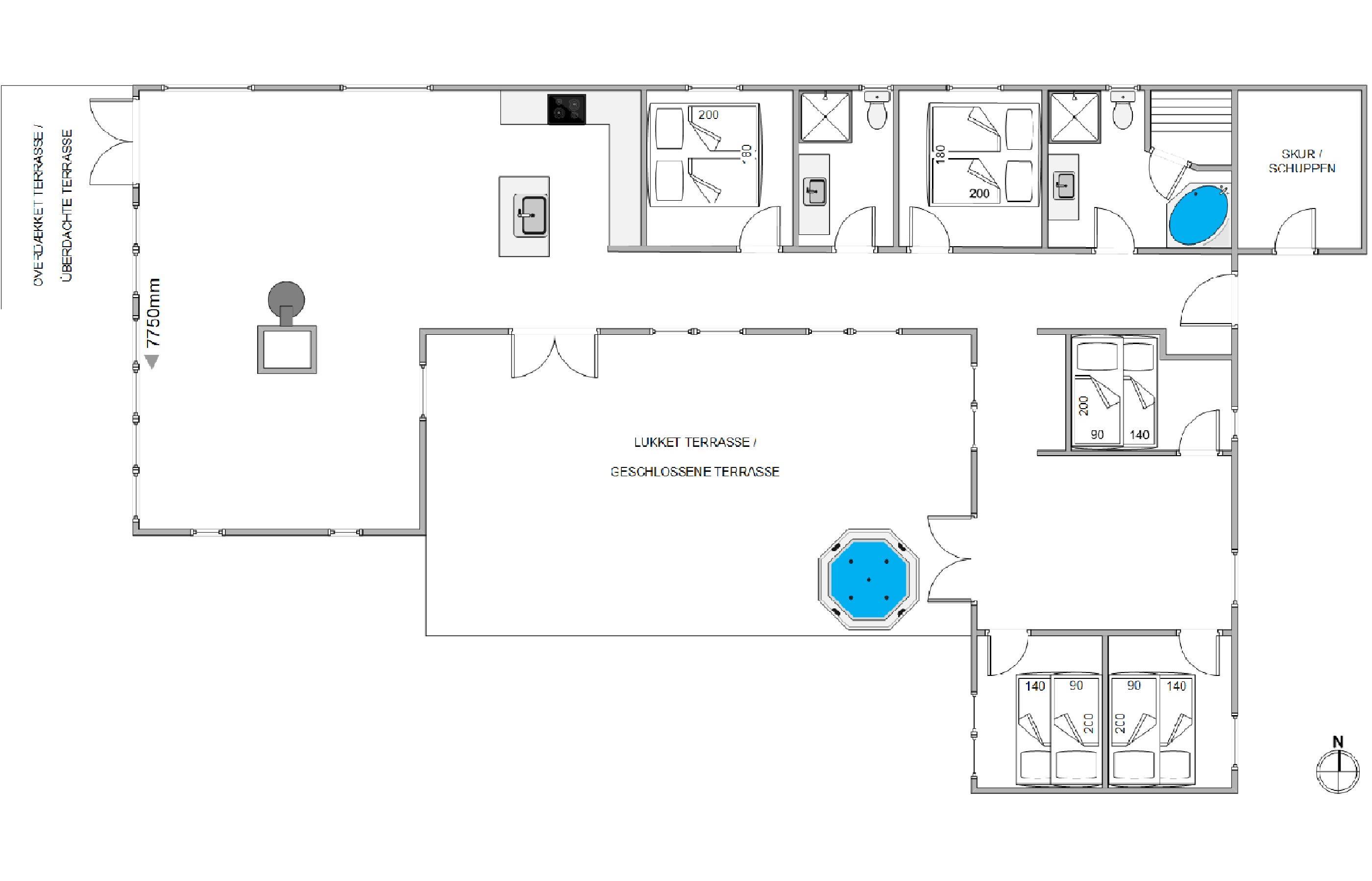 Med plads til 12 personer (og 2 hunde) er huset et perfekt valg til en storstilet familieferie, og der er sørget for underholdning for både store og små. På det største badeværelse er der både sauna og spabad, hvor prikken over i'et må være det lækre udendørs spabad. Det er virkelig ægte ferie og slik for sjælen, at tilbringe tid i det varme vand. Det især en oplevelse på en kold aften, hvor I på skyfrie aftenener kan kigge efter karlsvognen eller andre stjernebilleder