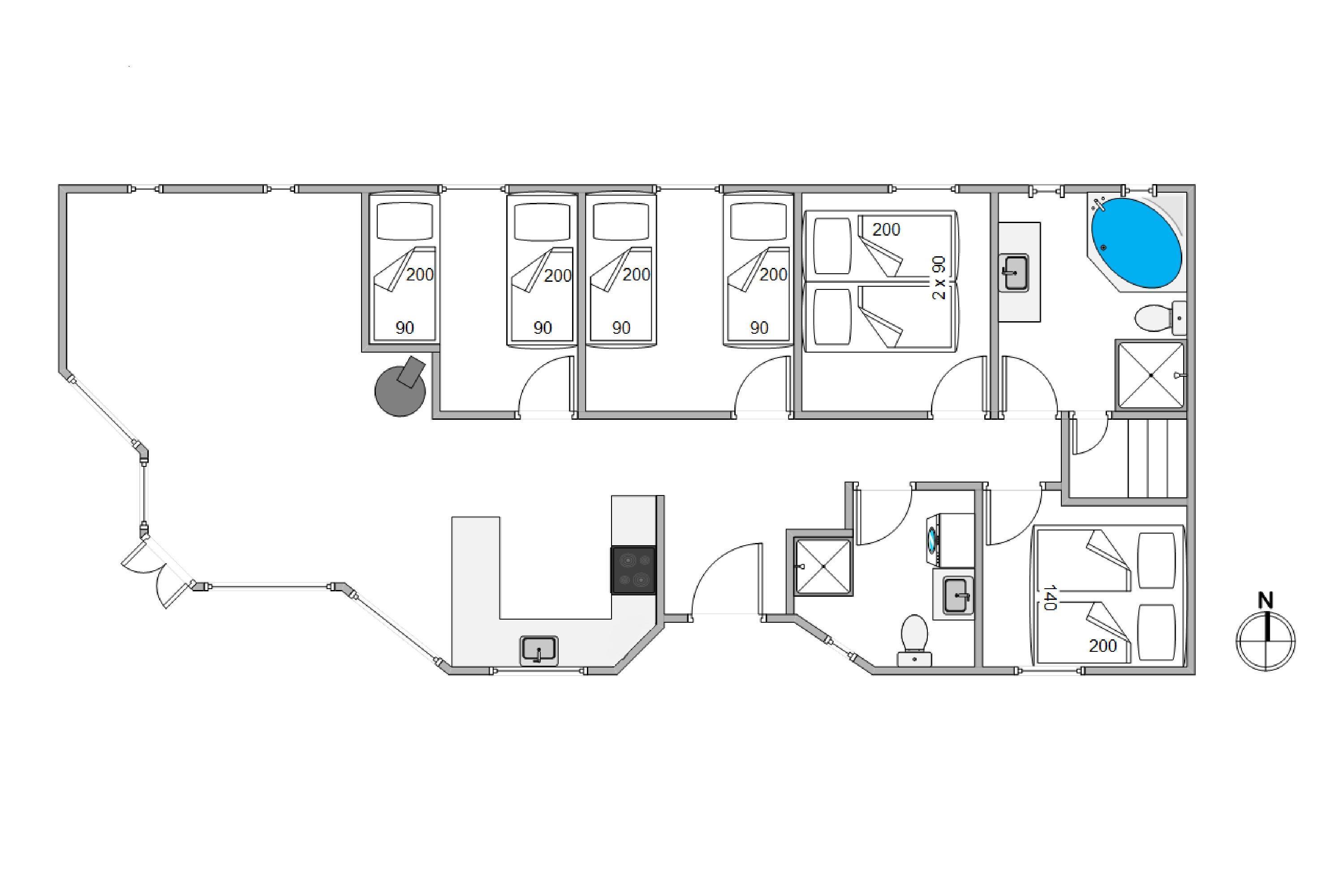 Terrassen er dejligt afskærmet, så I kan sidde ugeneret ude og nyde ferielivet. Her finder I naturligvis både havemøbler, liggestole og grill. Perfekt til hyggelige grillaftener, solrige forårsdage eller bare generel afslapning. Her er også tænkt på børnene, da der også er en sandkasse her, der byder op til leg for børn og barnlige sjæle.