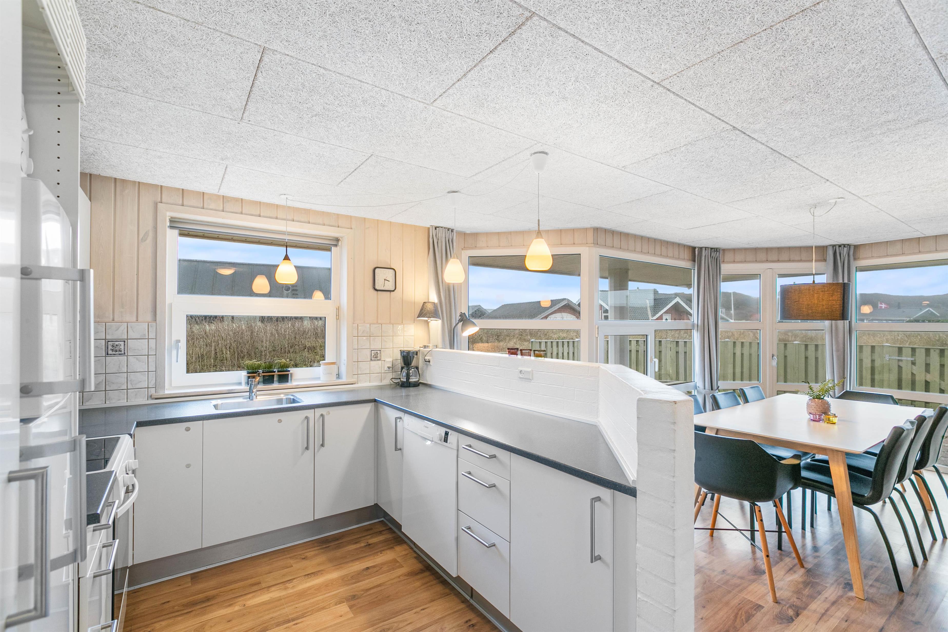Huset er dejligt indrettet med gode møbler og mange fine detaljer. Det veludstyrede køkken ligger i åben forbindelse med stuen, så familien kan være samlet, når der laves mad, spises eller hygges i stuen. Fra spisepladsen er der en dejlig udsigt til husets terrasse. De store vinduer sørger for et godt lysindfald i huset, som får inderummet til at virke lyst og indbydende. Huset har desuden to badeværelser hvor begge er udstyret med gulvvarme. Derudover er der en lille wellness afdeling på det ene badeværelse, hvor der er sauna og spabad. Bare helt perfekt at hoppe i efter en lang og aktiv dag.