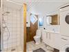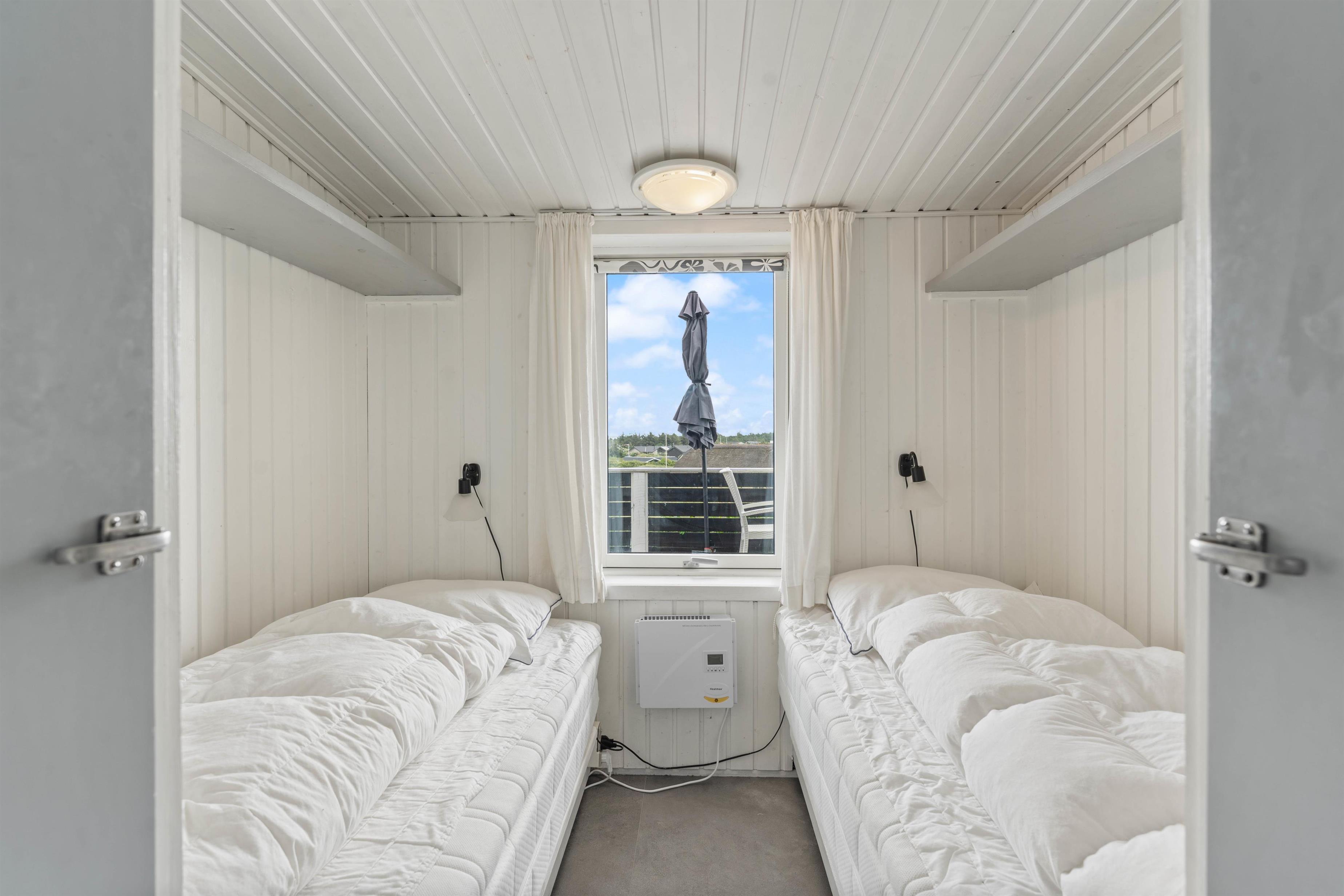 Når du træder ind i huset, får du fornemmelsen af et rigtigt sommerhus. Sommerhuset er blevet renoveret i 2021 og de hvide trævægge og de synlige loftbjælker skaber sammen med det fantastiske lys, der kommer ind i alle feriehusets rum, en rigtig rar stemning. Her kan I hurtigt føle jer hjemme og bare nyde naturen omkring jer. Feriehuset har 2 gode soverum, hvoraf det ene råder over en dobbeltseng og det andet 2 enkeltsenge. Derudover finder I i feriehuset et dejligt lyst badeværelse.
