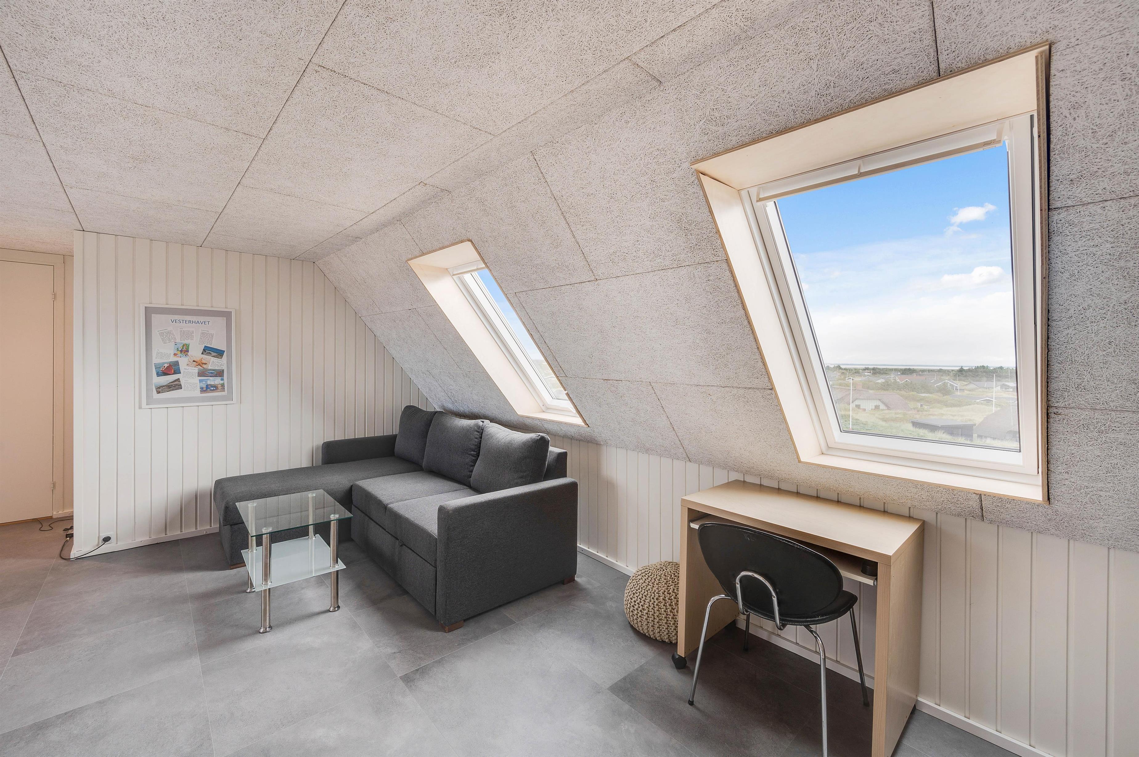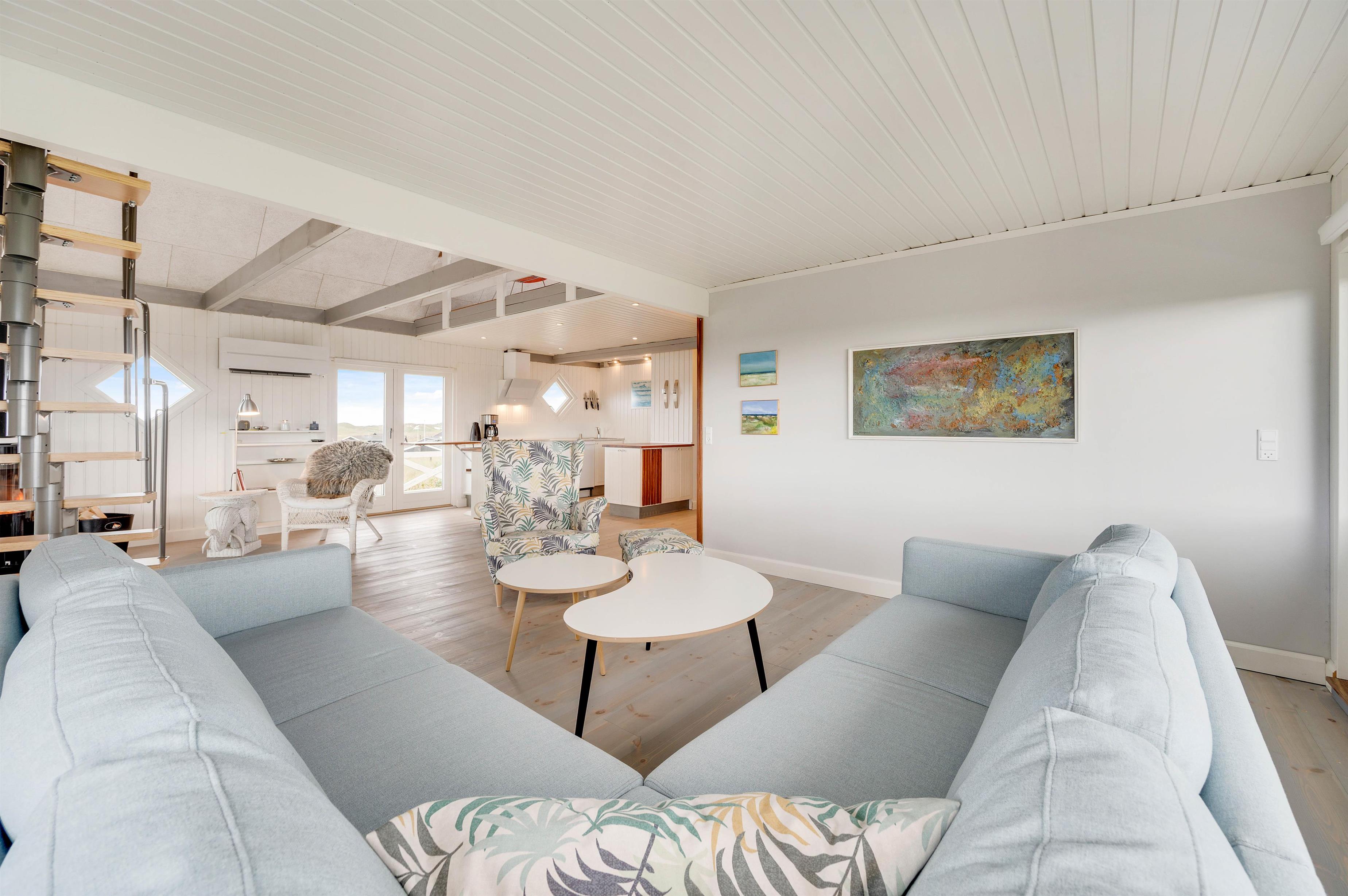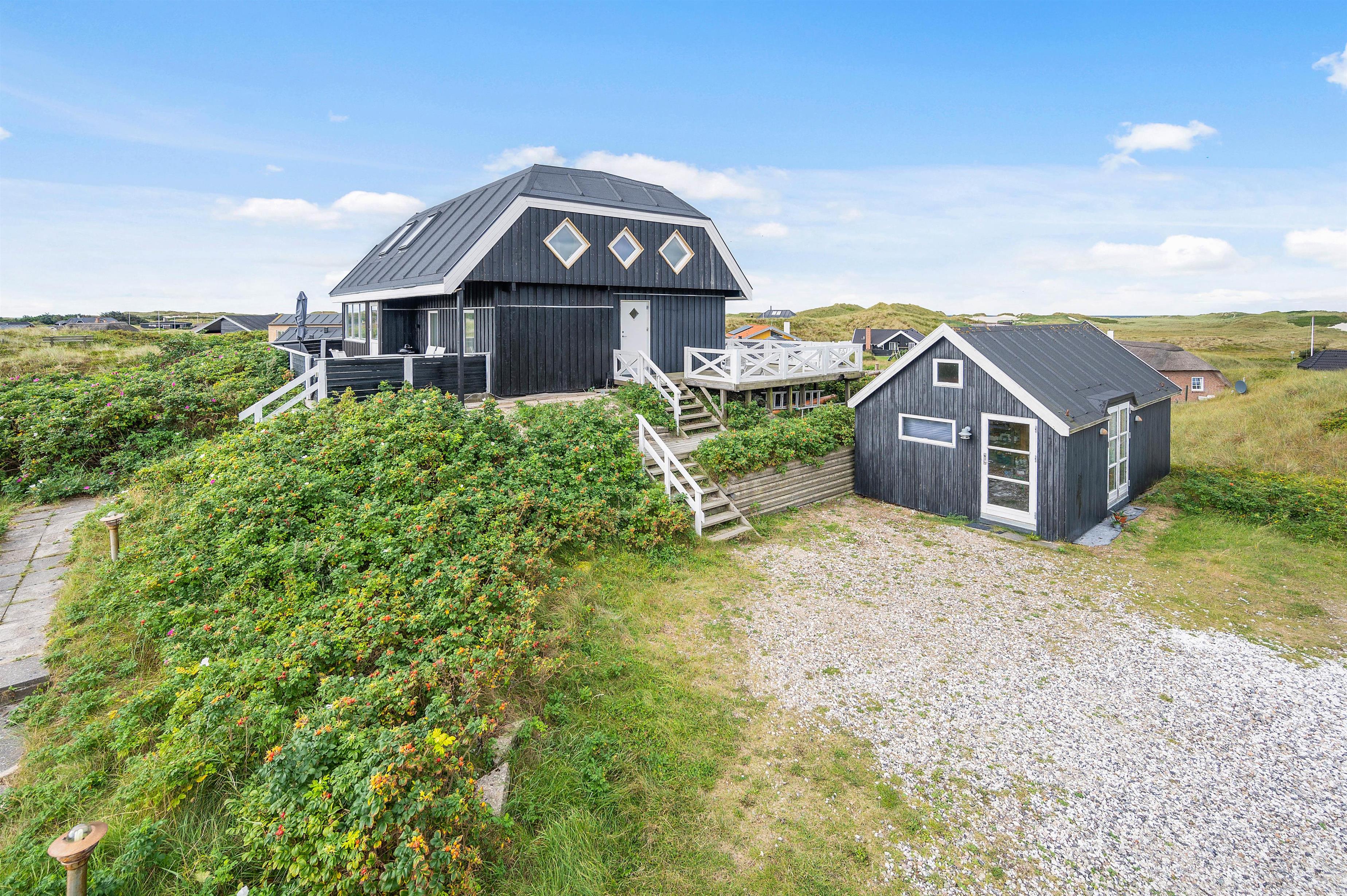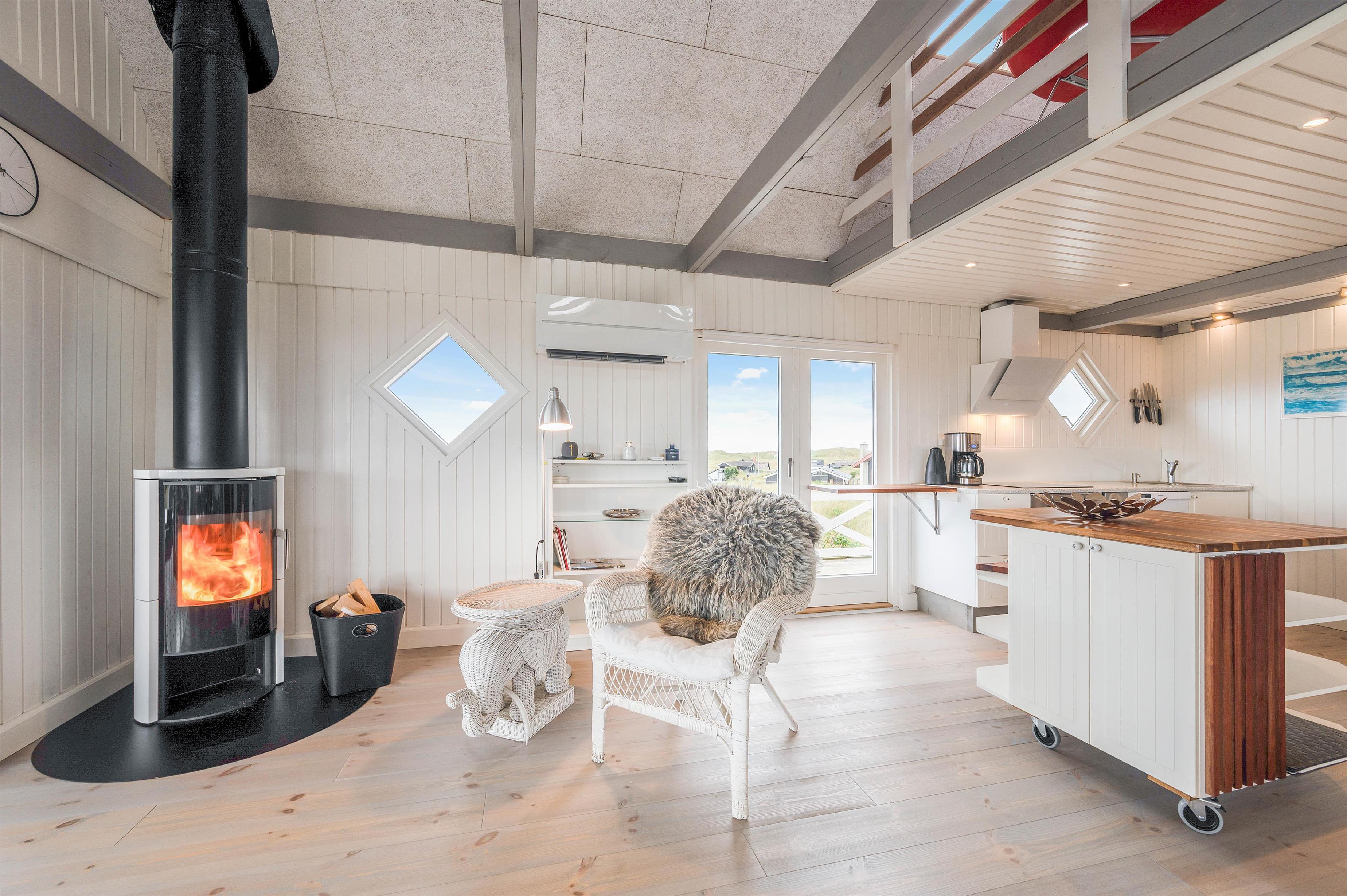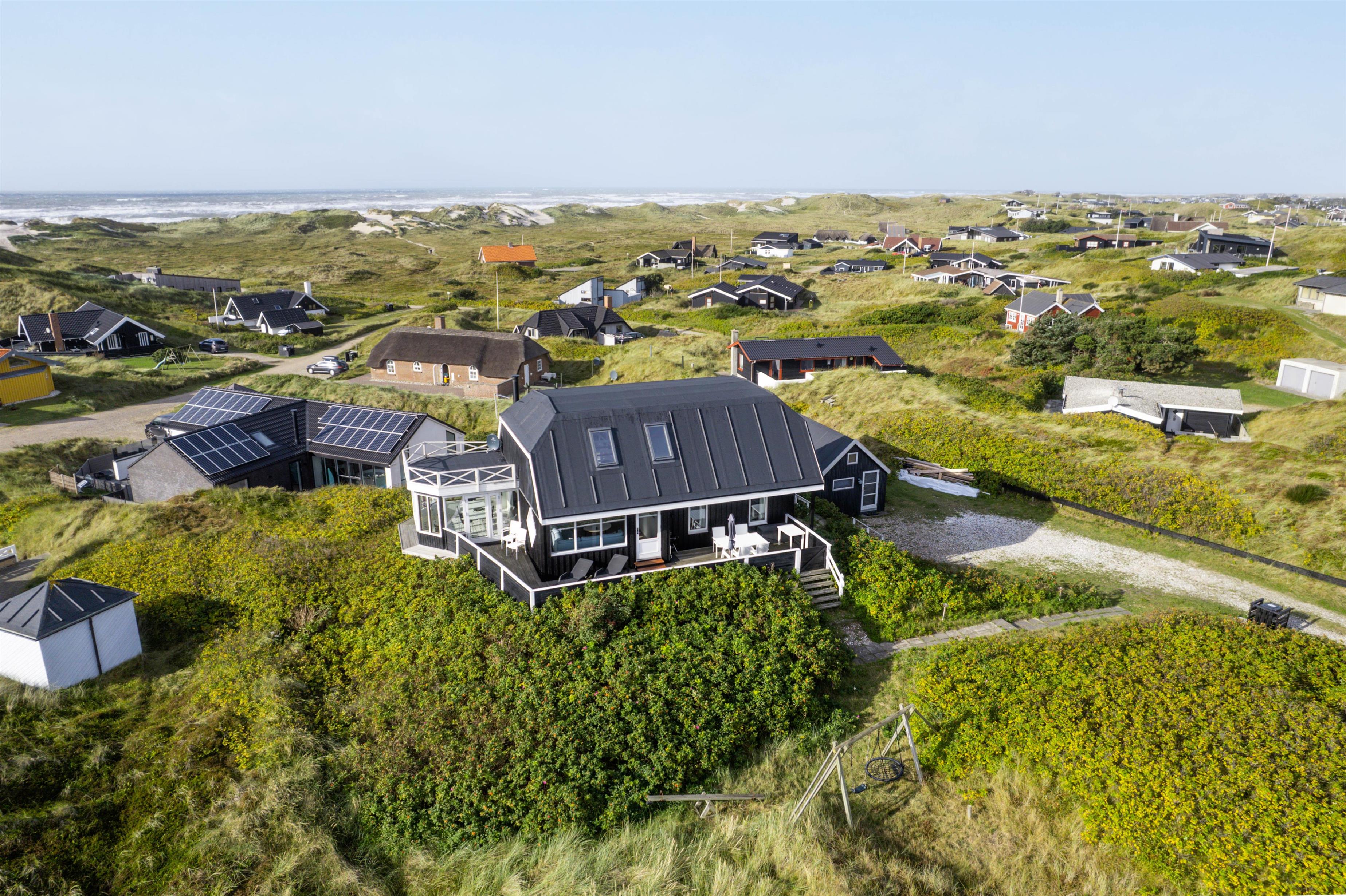Dette dejlige sommerhus i Søndervig til 4 personer ligger højt i klitlandskabet og har en enestående havudsigt fra husets rum og terrasser. Sommerhuset på Hvidbjergvej 91 har en god lukket terrasse og havestue. Sommerhuset er for jer, som elsker at holde ferie tæt på naturen, og som gerne vil have et feriehus med gode uderum og gode faciliteter. Der er kun 300 meter til det brusende Vesterhav, så det er oplagt med gåture langs stranden i det fine hvide sand.