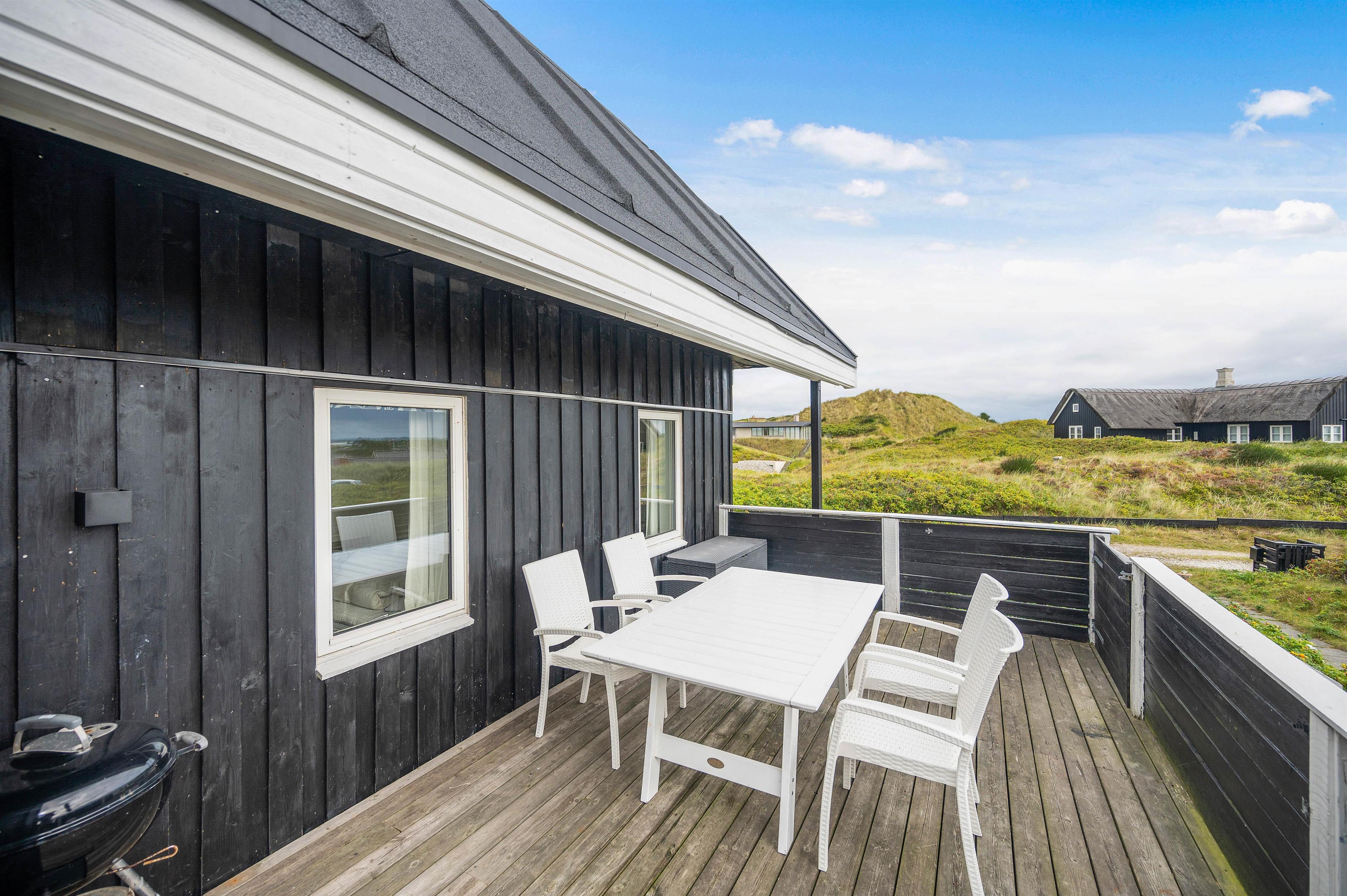 Det dejlige træhus har en god lukket terrasse, som gør, at du kan sidde ugeneret og nyde duften af den danske sommer. Har I mindre børn, så behøver I heller ikke bekymre jer om, at de kan løbe væk. Udsigten fra terrassen er noget for sig. Da huset ligger hævet i landskabet, kan I nemlig se langt ud i horisonten. Her er der mulighed for at nyde den skønne natur ved Vesterhavet.