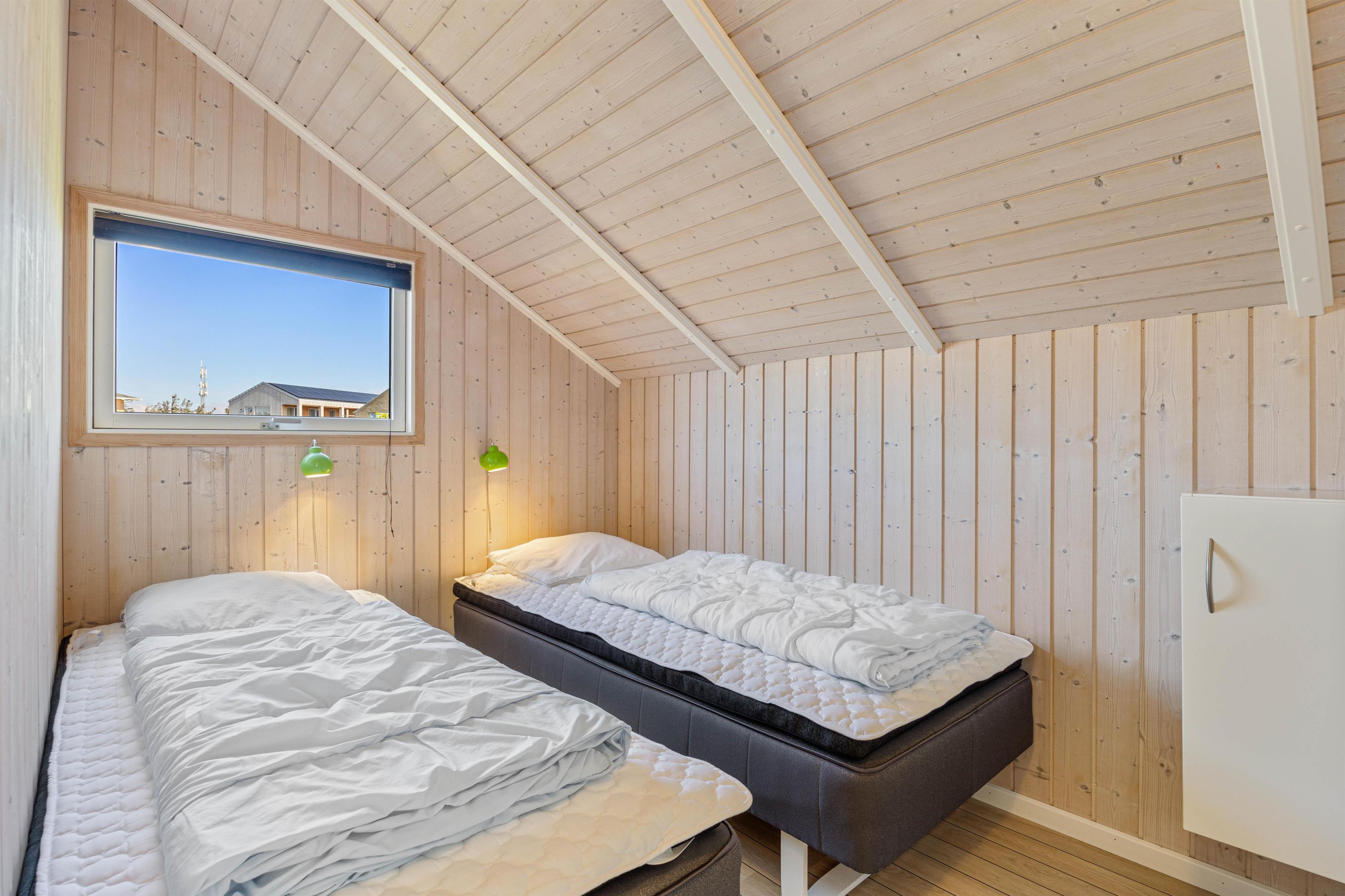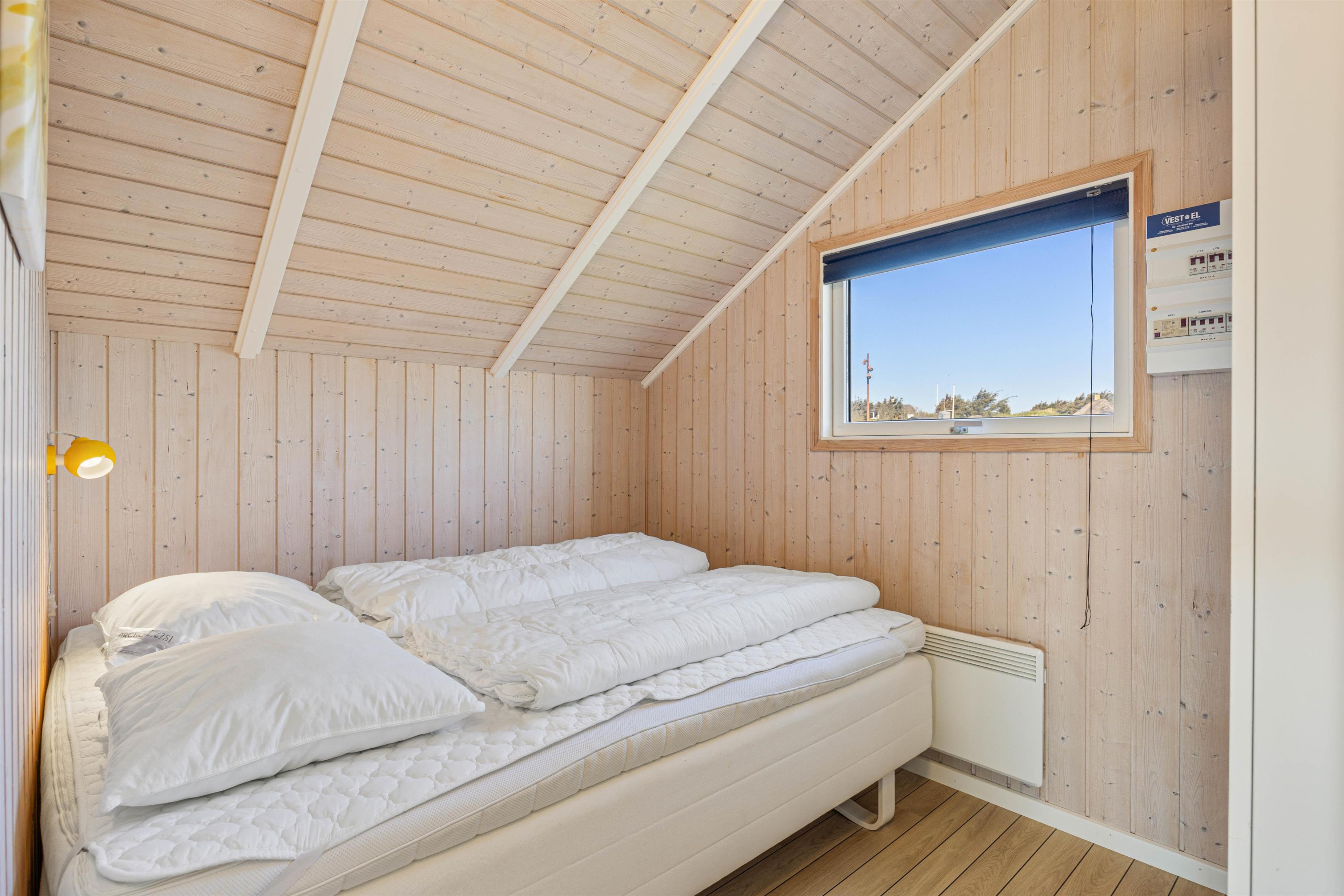 Som sagt er Feriehuset ideelt til en lille familie eller en romantisk ferie for to, da det har kapacitet til trepersoner. Med ét soverum udstyret med en dobbeltseng og et andet med to enkeltsenge, er her plads til, at I kan slappe af efter en dag ved havet. Huset har også et badeværelse med gulvvarme, som sikrer en behagelig temperatur året rundt.