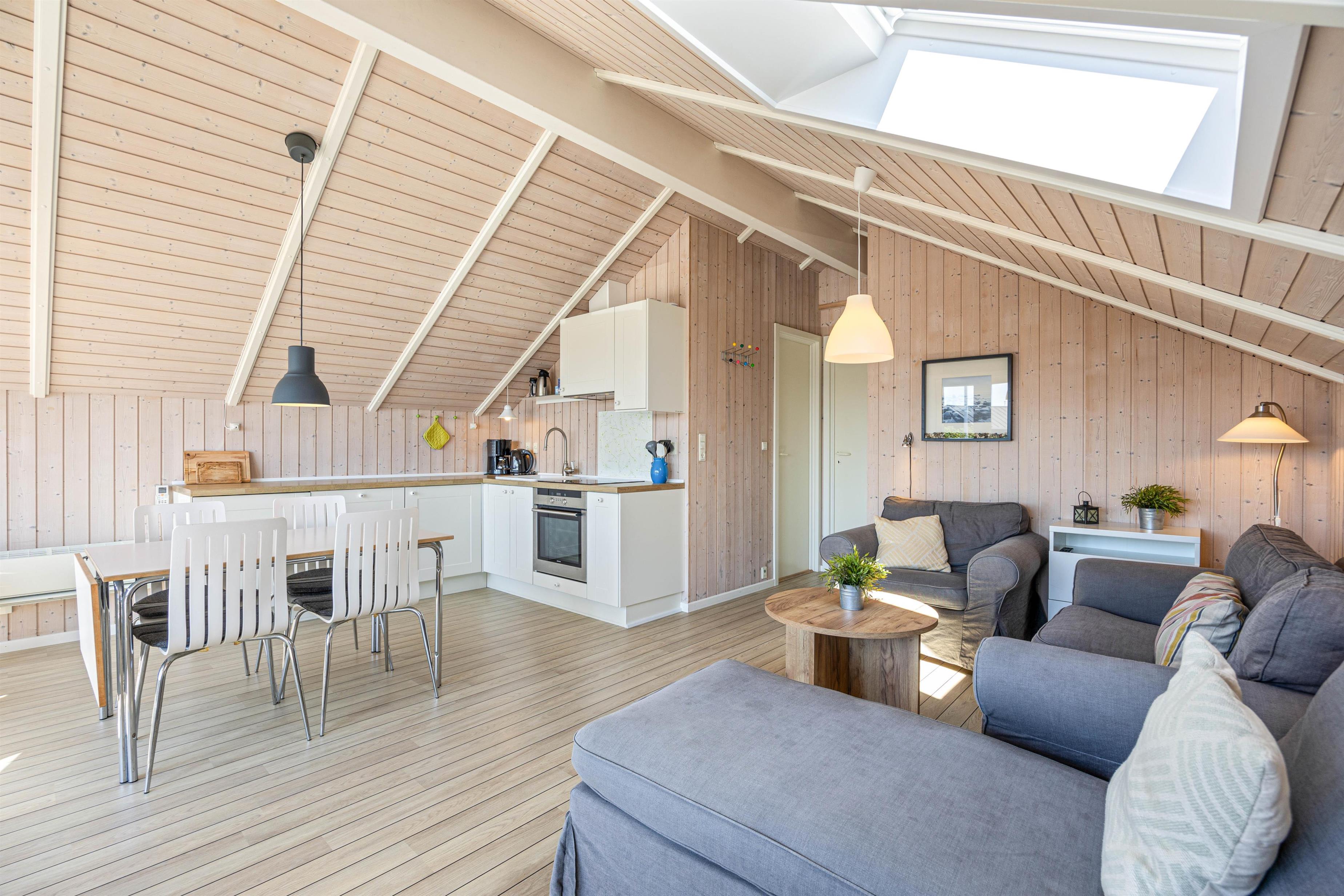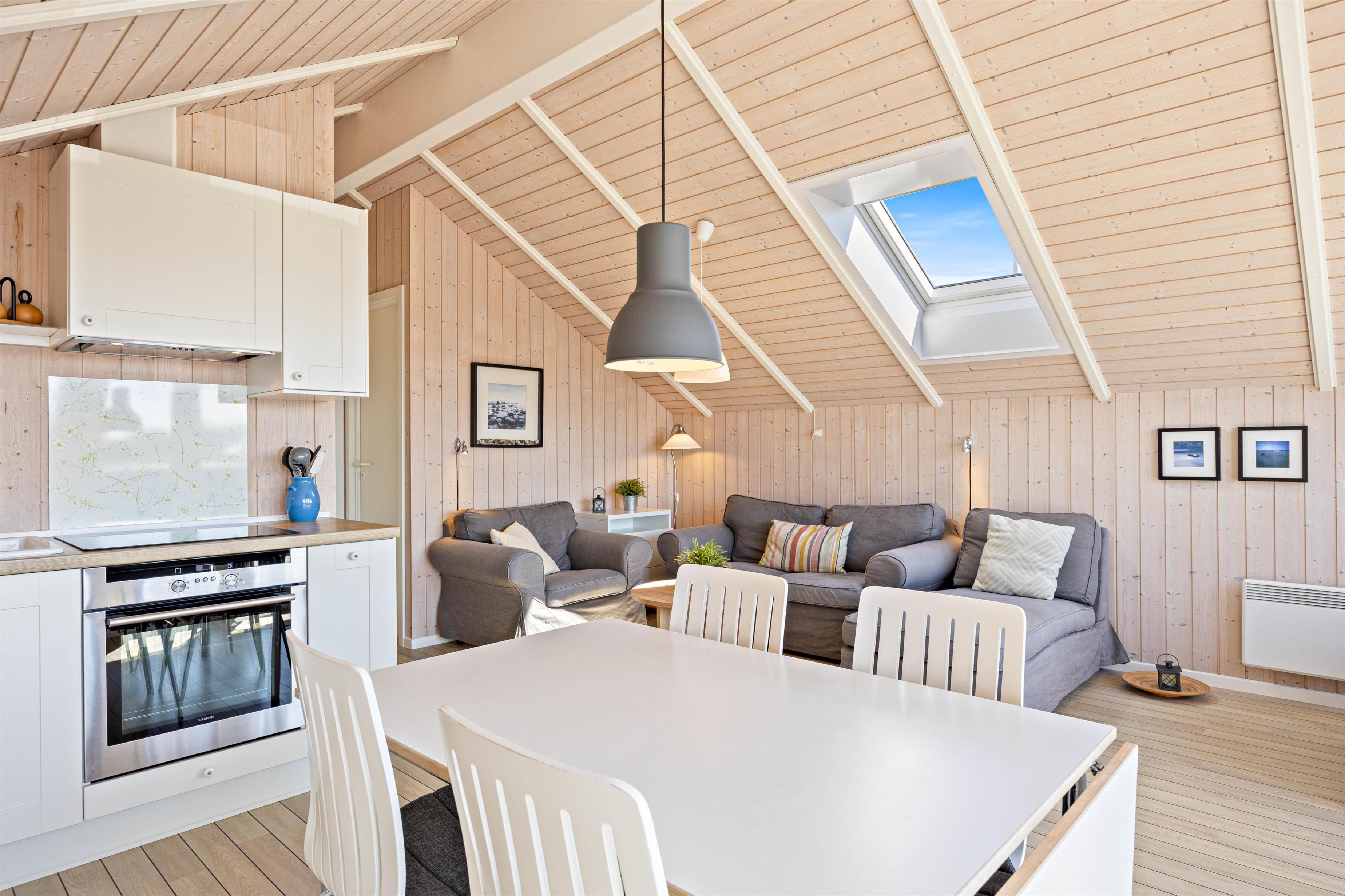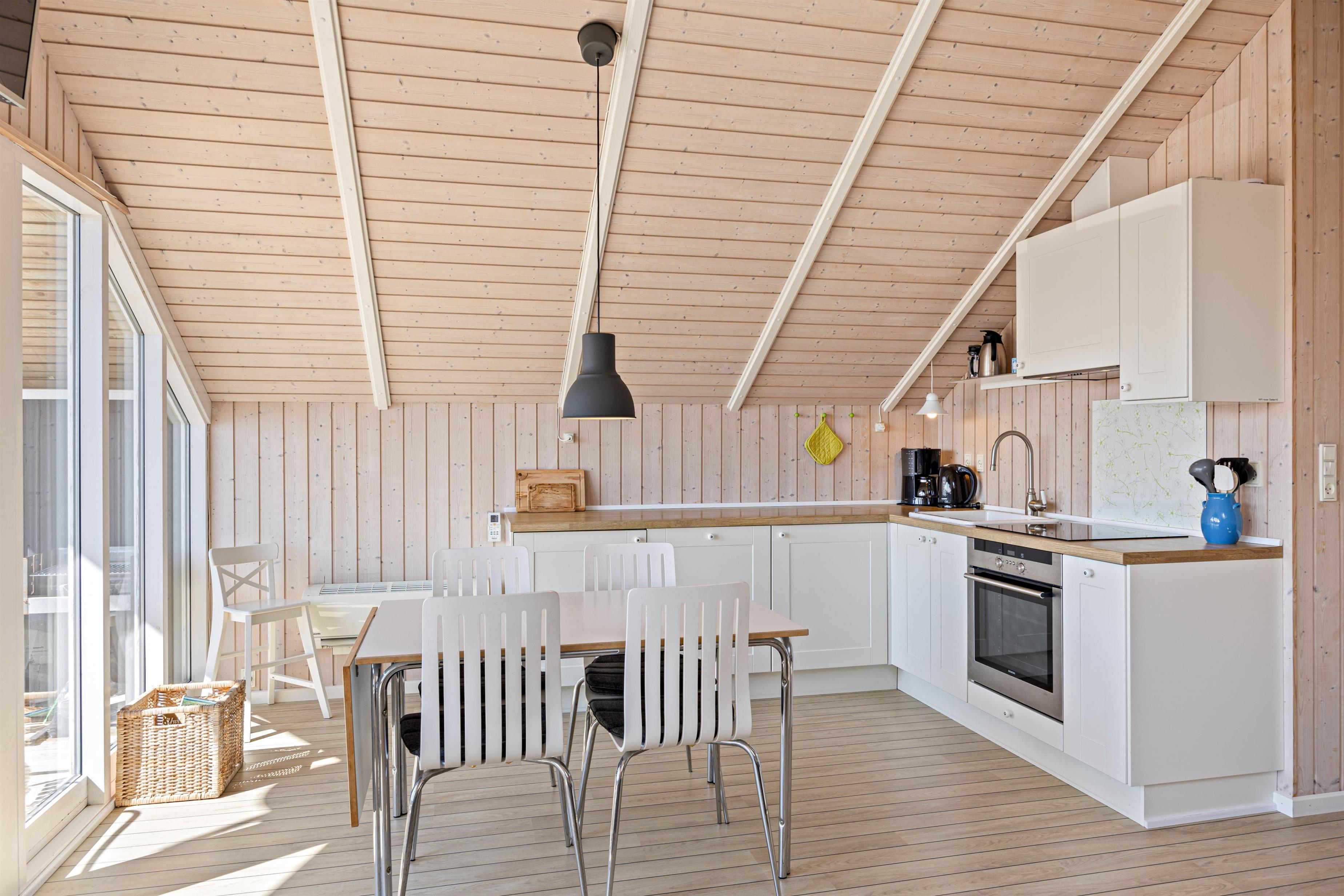 I kan uden problemer slå jer ned i de behagelige møbler, og med trådløst fibernet, er I sikret en hurtig og stabil internetforbindelse. Trods de kun 45 kvadratmeter er feriehuset udstyret med flere gode, som er "nice to have" under en ferie. En opvaskemaskine i køkkenområdet sørger for, at I kan nyde jeres tid her uden at bekymre jer om opvasken. Luft-til-luft varmepumpen giver jer mulighed for at regulere temperaturen og sikre en behagelig atmosfære indenfor, uanset vejret udenfor.
