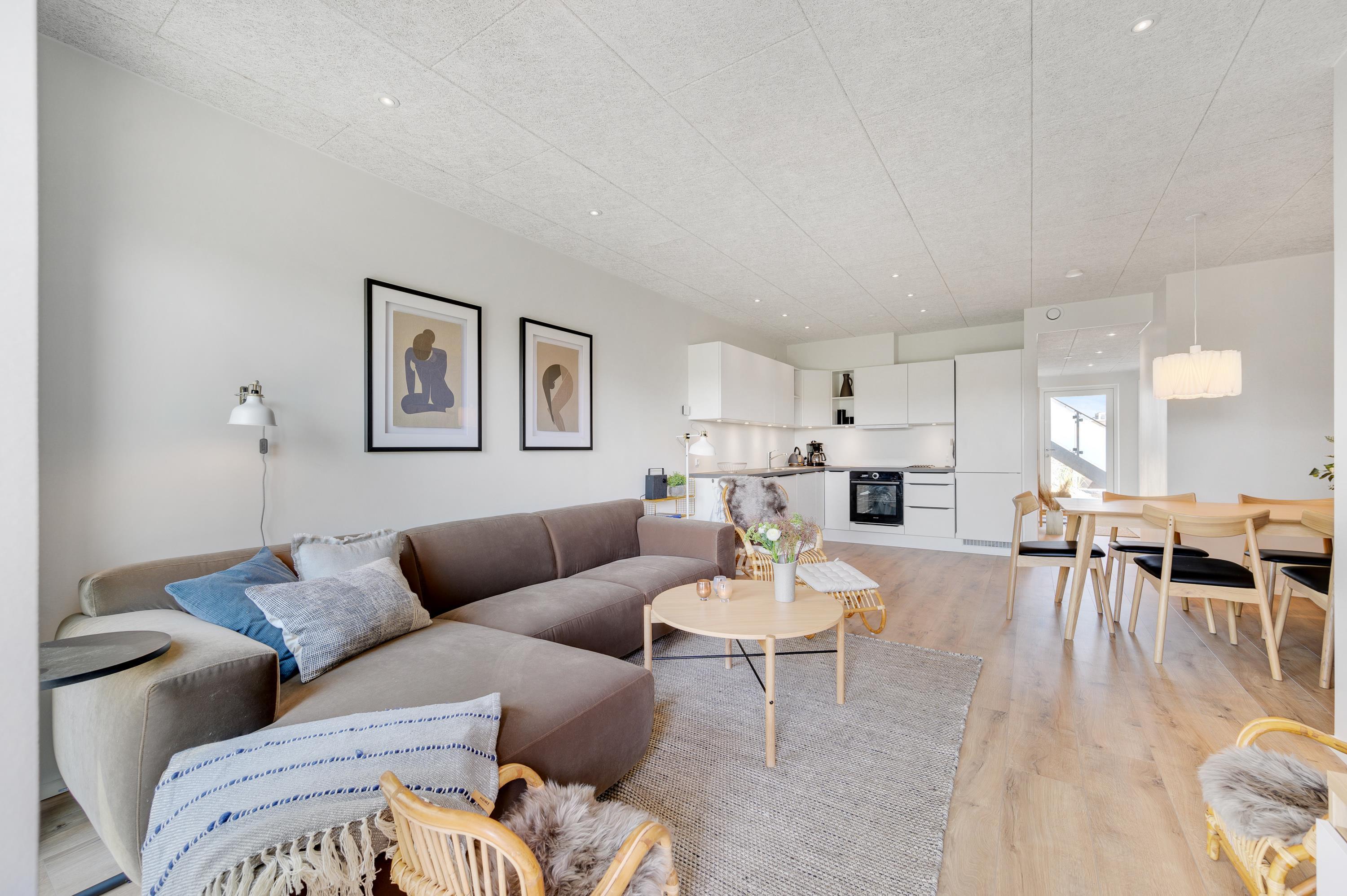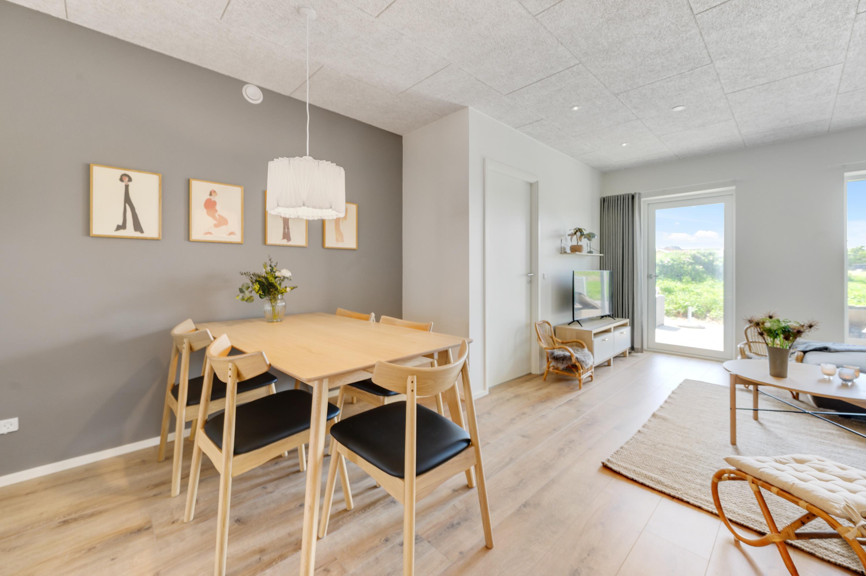 Ferielejlighedens 85 kvadratmeter fordeler sig på en entré, tre soveværelser, et badeværelse og et alrum med både køkken, spiseafdeling og stue. Den moderne og stilfulde indretning tilføjer et interessant touch til ferien. Lejligheden der er opført i 2021 er moderne, og kan snildt huse op til fem feriegæster.