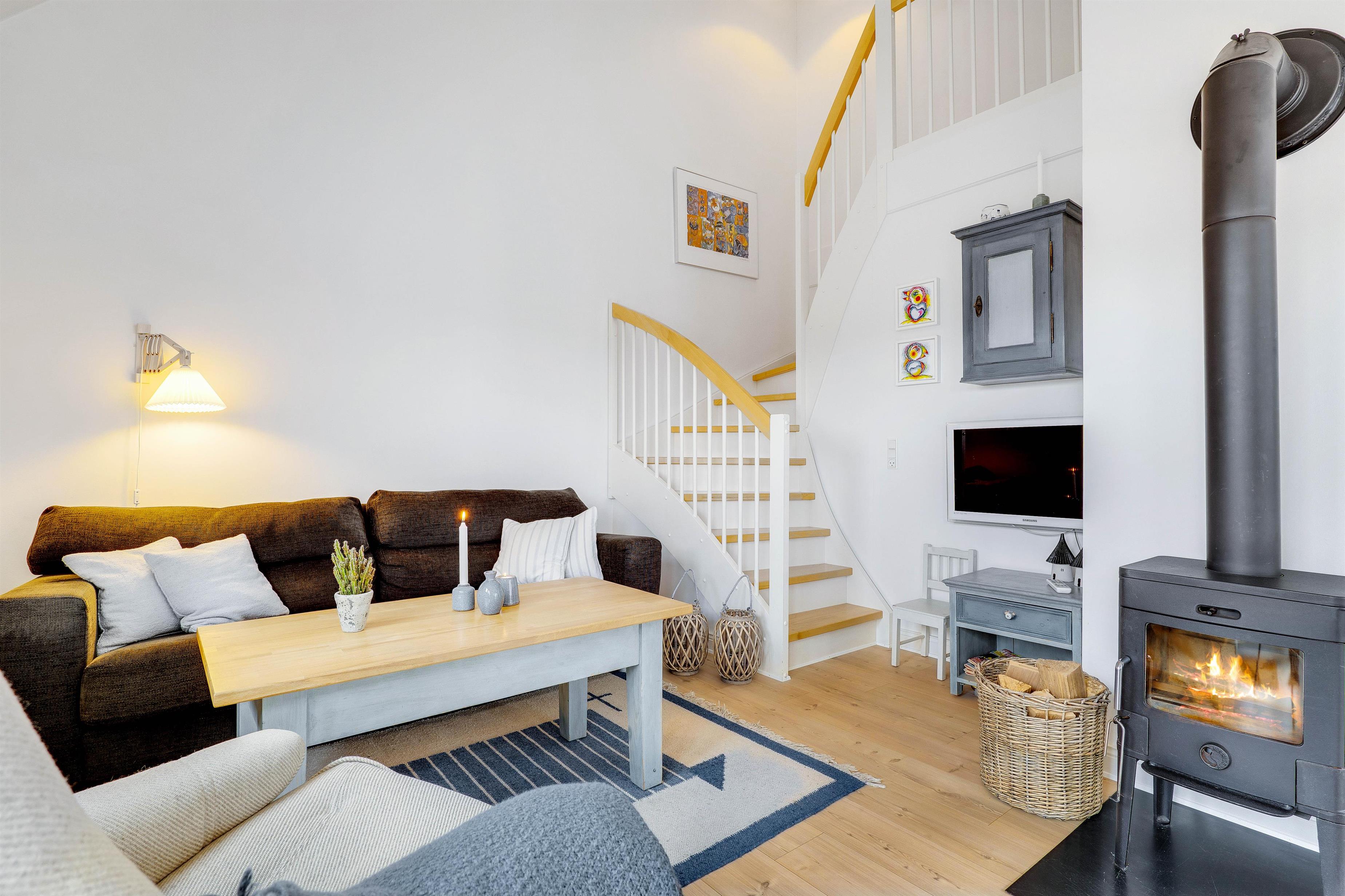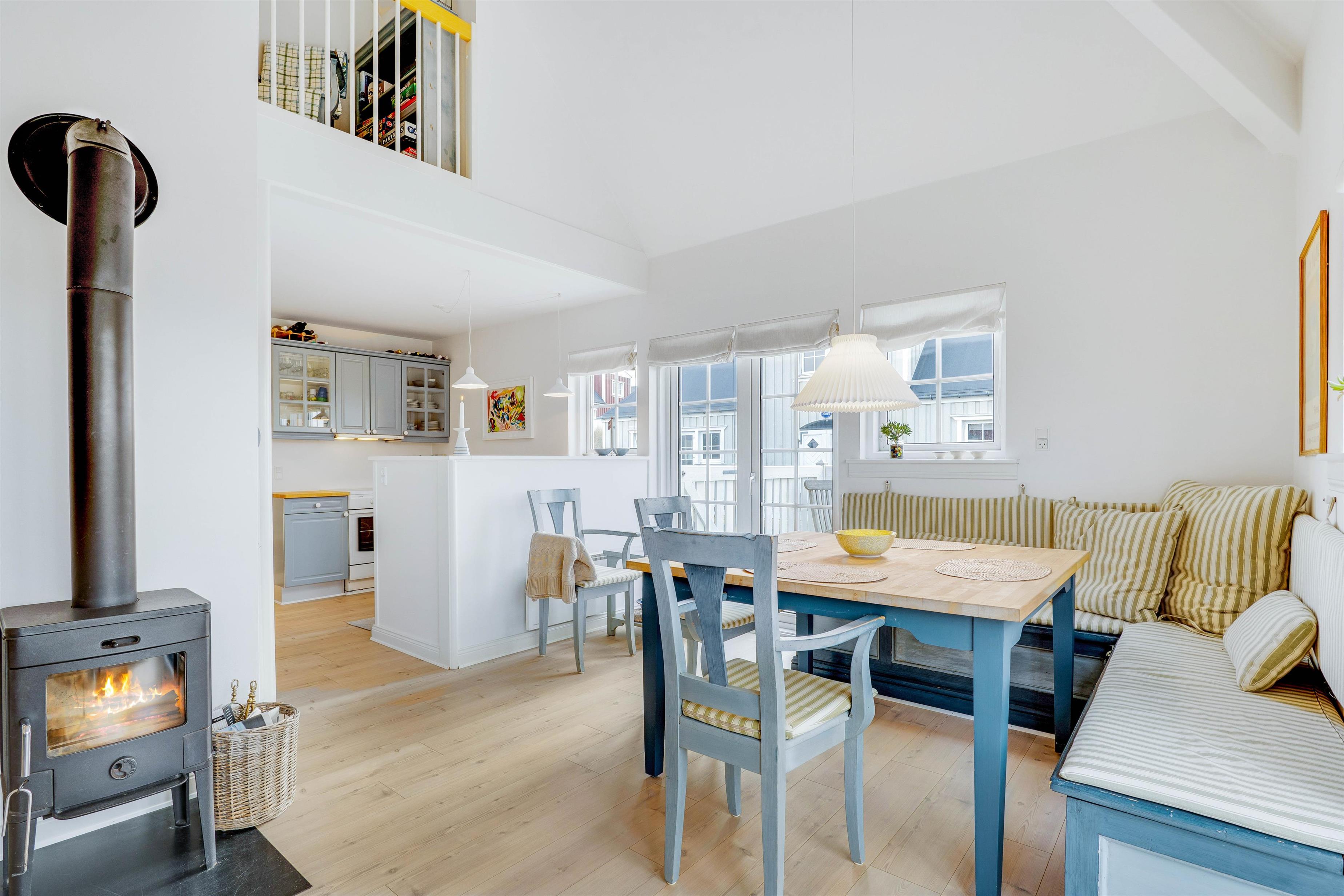 På øverste etage af ferielejligheden finder I 2 soveværelser, således at op til 4 personer kan tilbringe en skøn og afslappende ferietid her. Opvaskemaskine, vaskemaskine og tørretumbler fuldender den gode og komfortable udstyring af ferielejligheden. Mens I slapper af, sørger maskinerne for, at husholdningen ordnes.