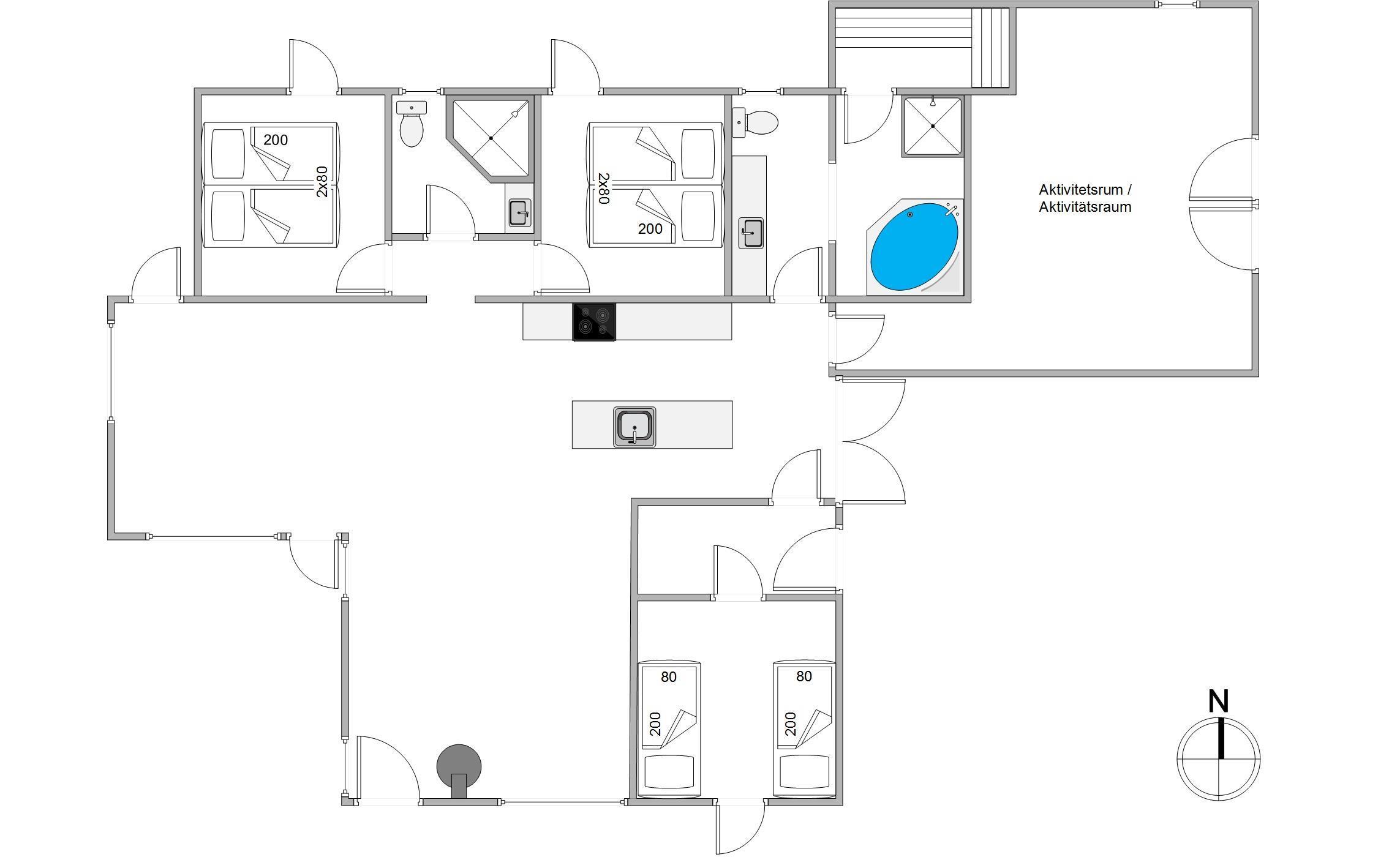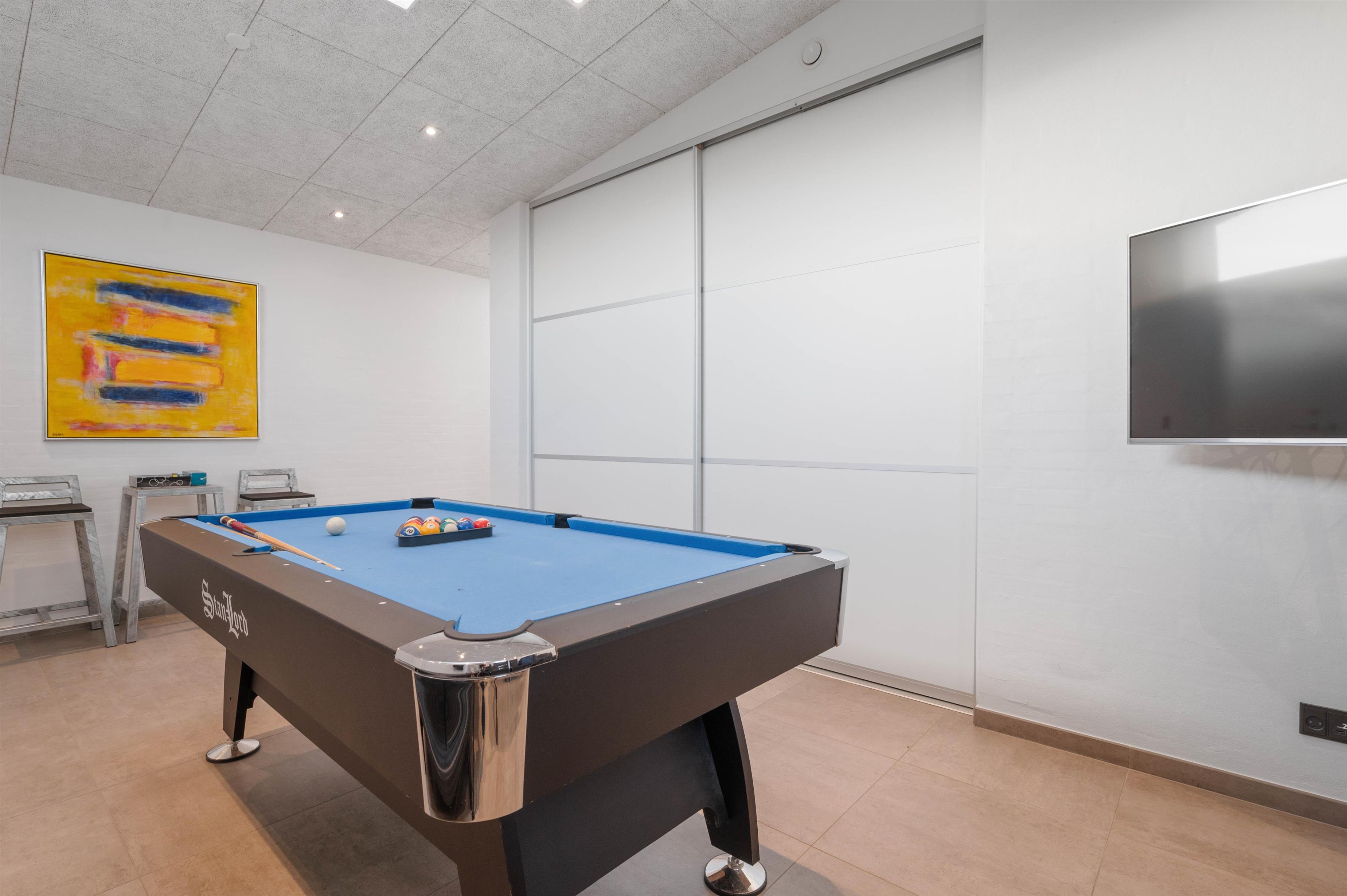 Huset byder på underholdning for hele familien, og mens nogle af jer læner jer tilbage i liggestolene på den store terrasse med en god bog, kan de aktive afholde en spændende billardturnering i aktivitetsrummet og finde feriens allerbedste spiller. I alle opholdsrum finder I også TV, så der kan ses fjernsyn fra sengen om aftenen.