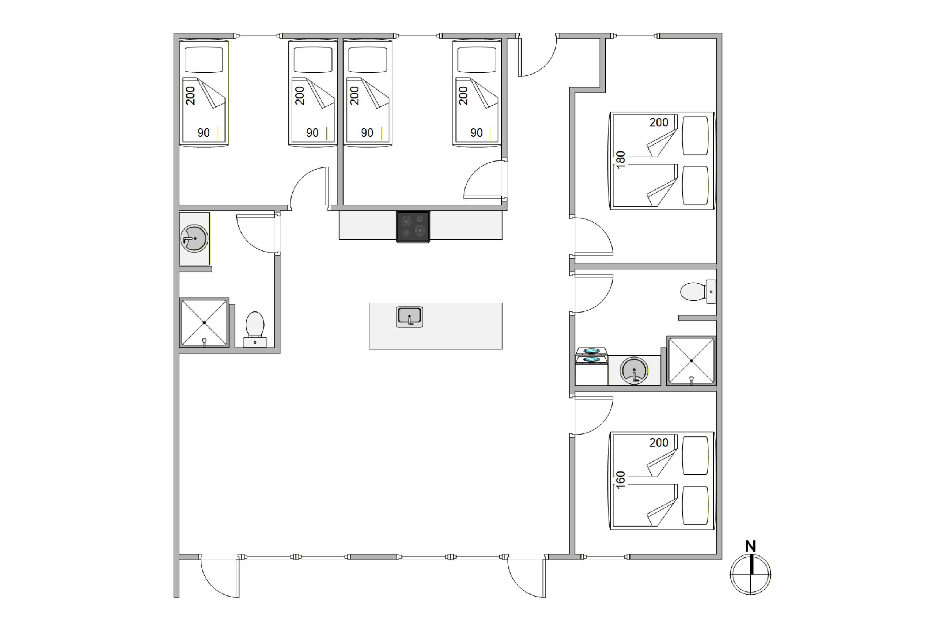 Med sine 112 kvadratmeter er denne moderne feriebolig indrettet til at danne rammen om afslappende feriedage for op til 8 gæster. Boligen rummer 4 indbydende soveværelser med komfortable kontinentalsenge, der sikrer en god nattesøvn efter en oplevelsesrig dag ved stranden eller i Søndervigs hyggelige centrum.