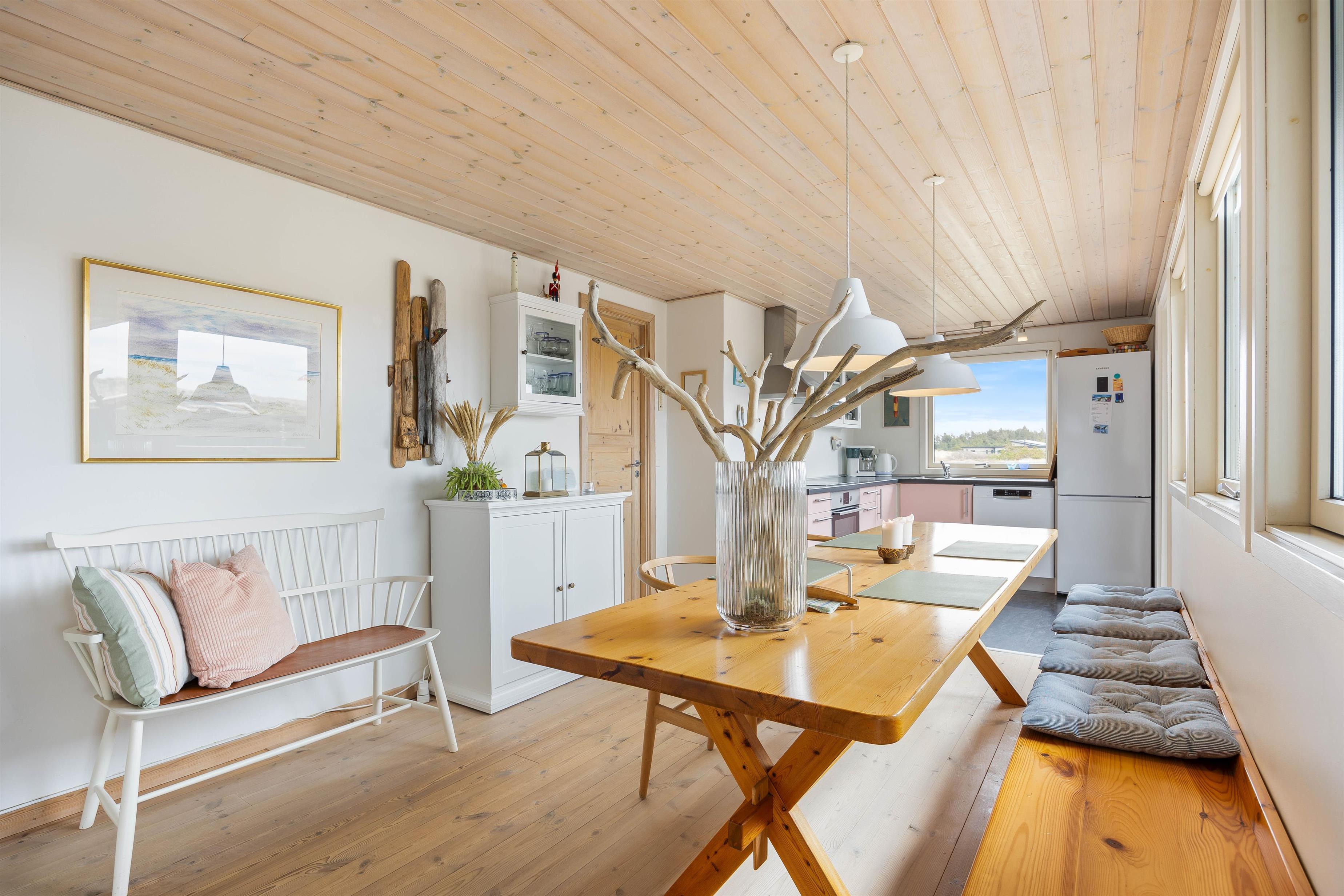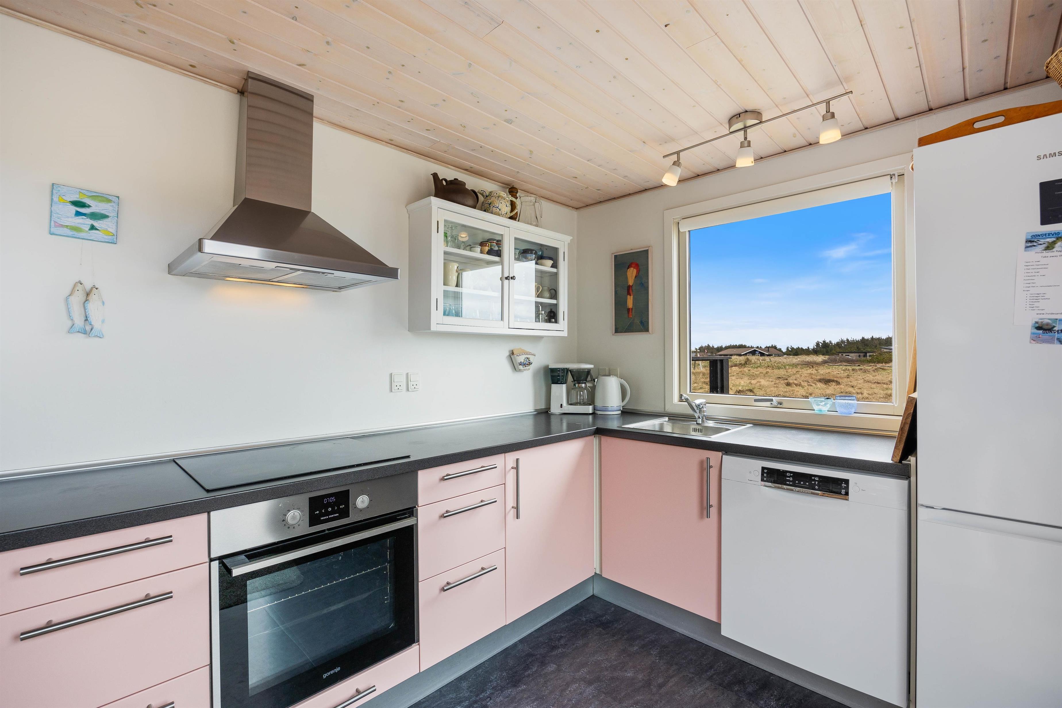 Yderligere er køkken og spiseafdelingen i et rum, hvilket giver en dejlig åbenhed, hvor hele familien kan tilbringe mange dejlige ferietimer sammen. Sommerhuset er derfor ideelt til en lille familie med små børn, som ønsker en god ferie i Søndervig.