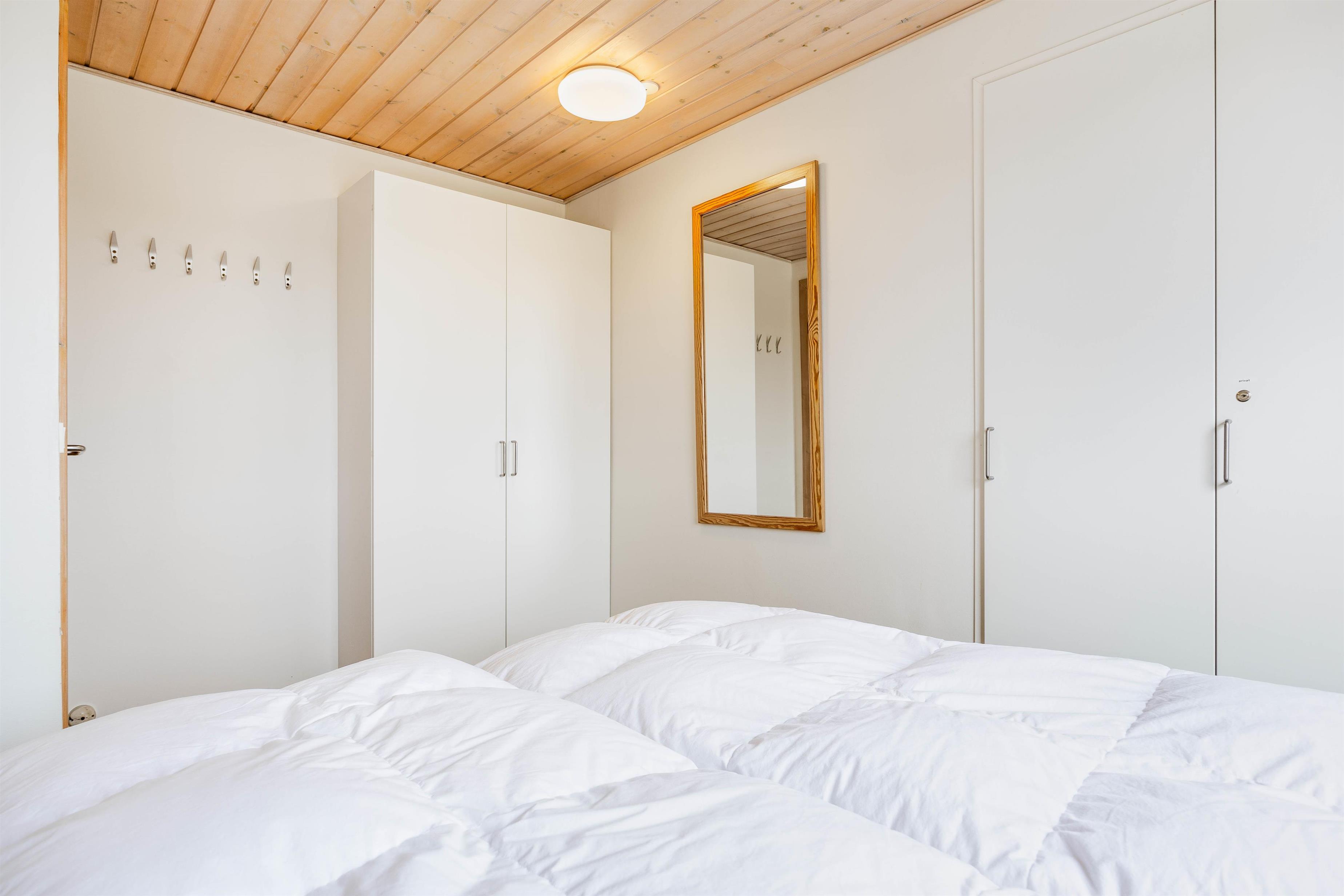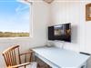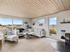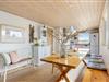 Hele sommerhuset har hvidmalede vægge og lofter, og de store vinduespartier skaber ikke mindst lyse og indbydende omgivelser. Fra den skønne opholdsstue er der direkte udsyn til naturområdet, der omgiver sommerhuset, og her føler I jer straks godt tilpas. Opholdsstuen er lys og venlig, og her kan familien samles foran brændeovnen til en god film på sommerhusets fladskærms-tv.