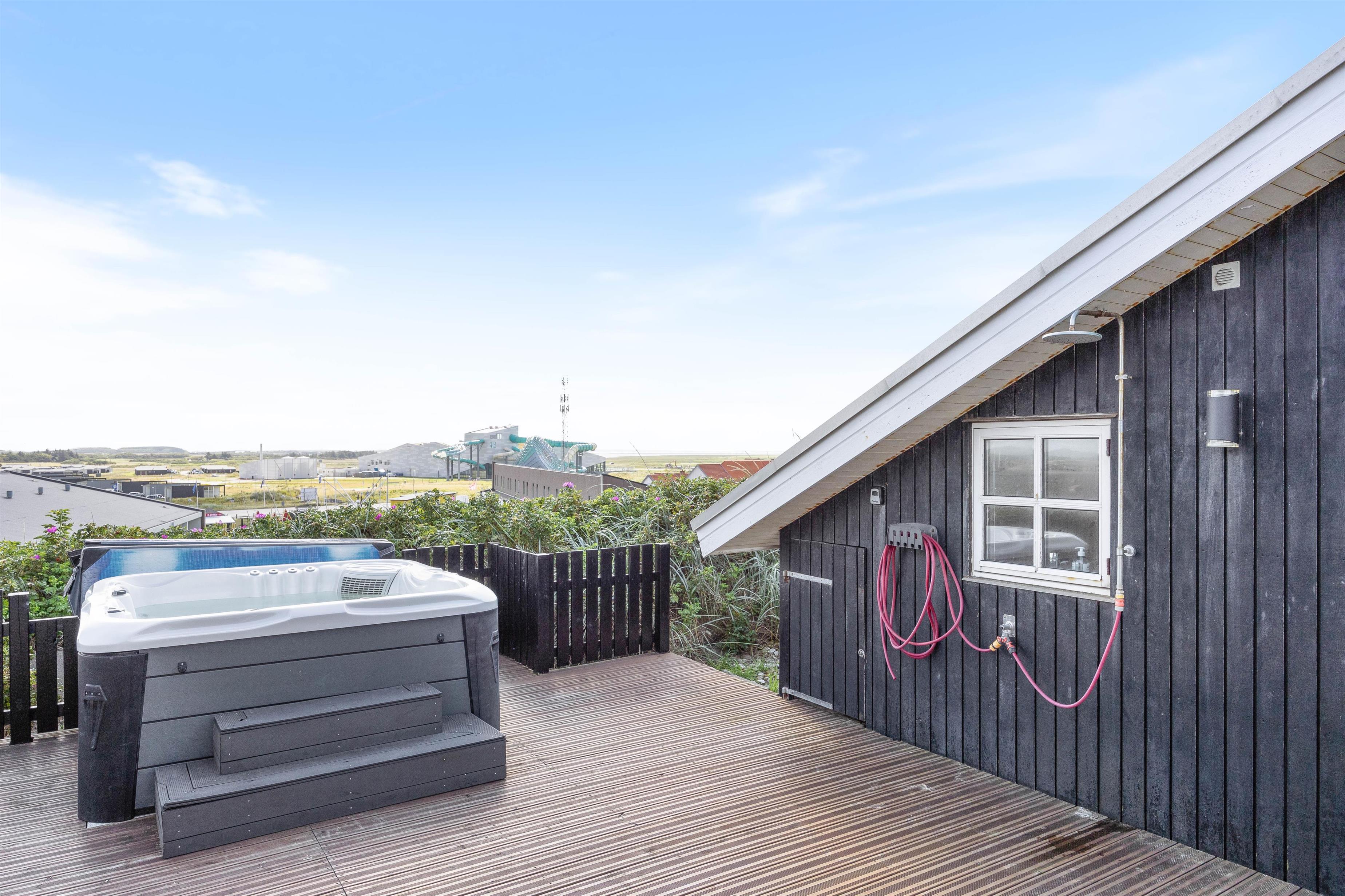 Sommerhuset på Lodbergsvej 231 i Søndervig har en lukket terrasse, som er praktisk, da man både kan slippe børn og hunden fri. Terrassen er både afskærmet og overdækket, så I kan nyde jeres solbadning i fred i havemøblerne. Efter en god tur på stranden, kan I skylle sandet af kroppen under den udendørs bruser og derefter slappe af i den udendørs udespa. Udebrusen kan benyttes fra april til november.