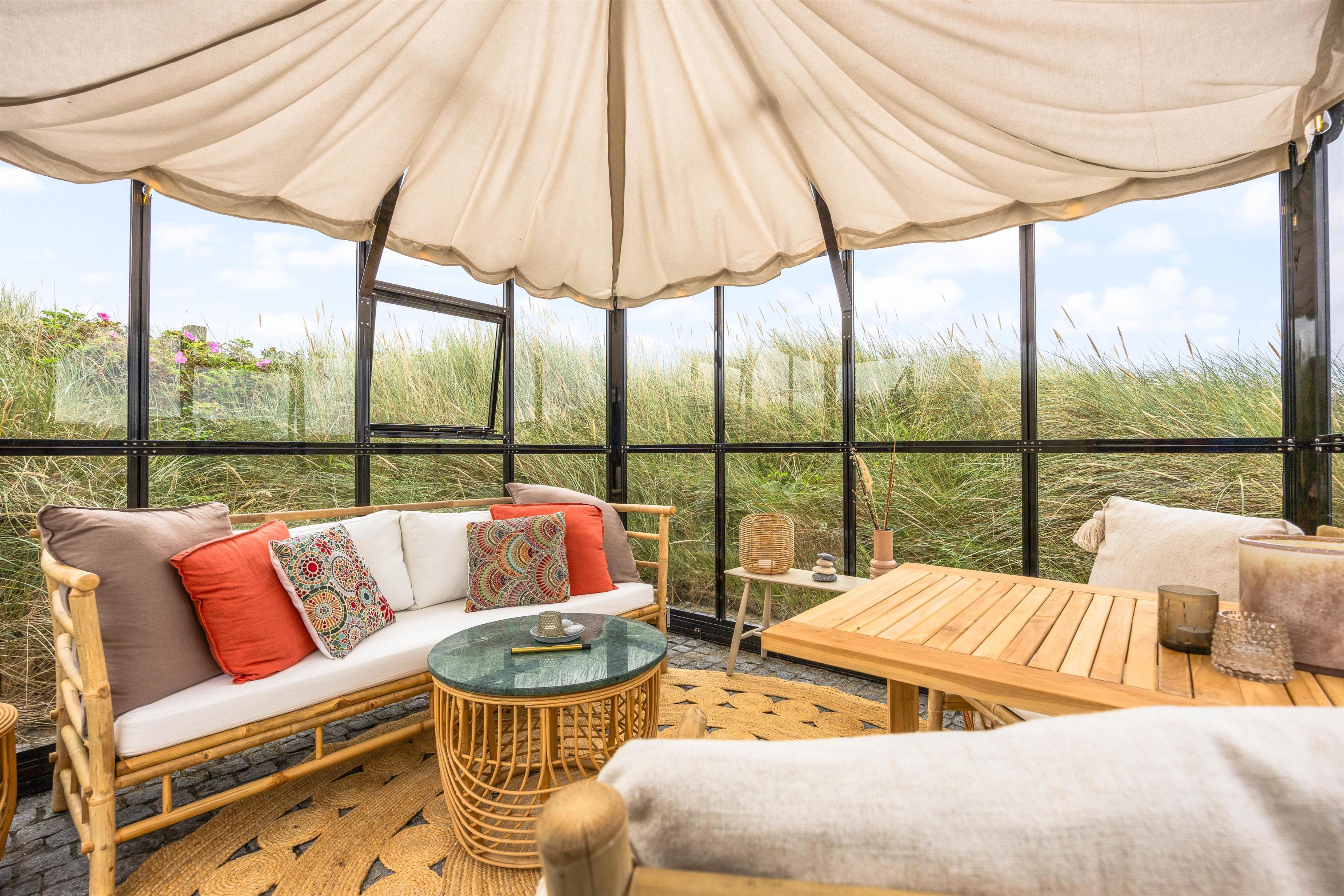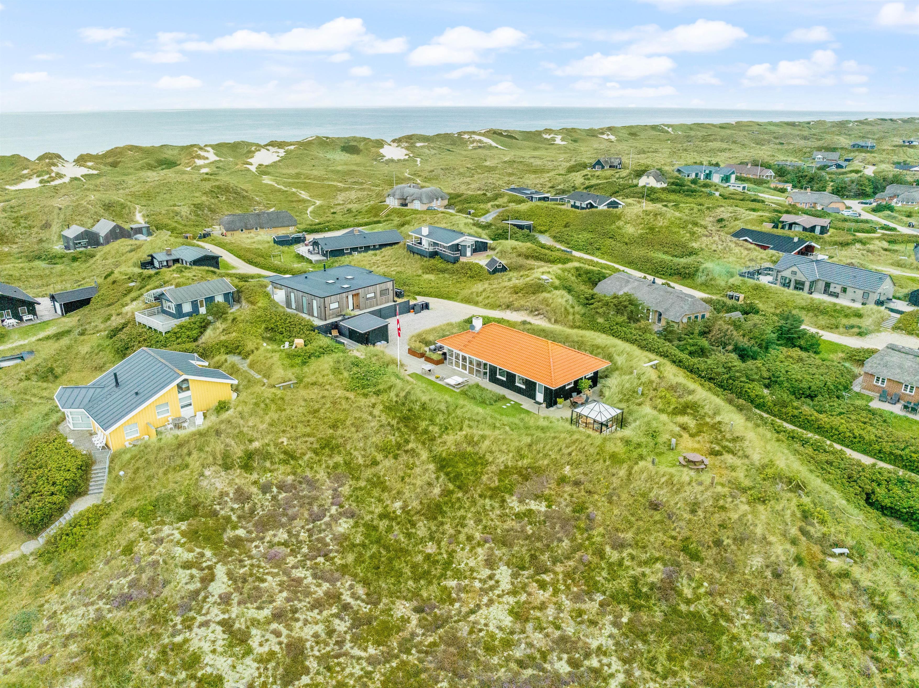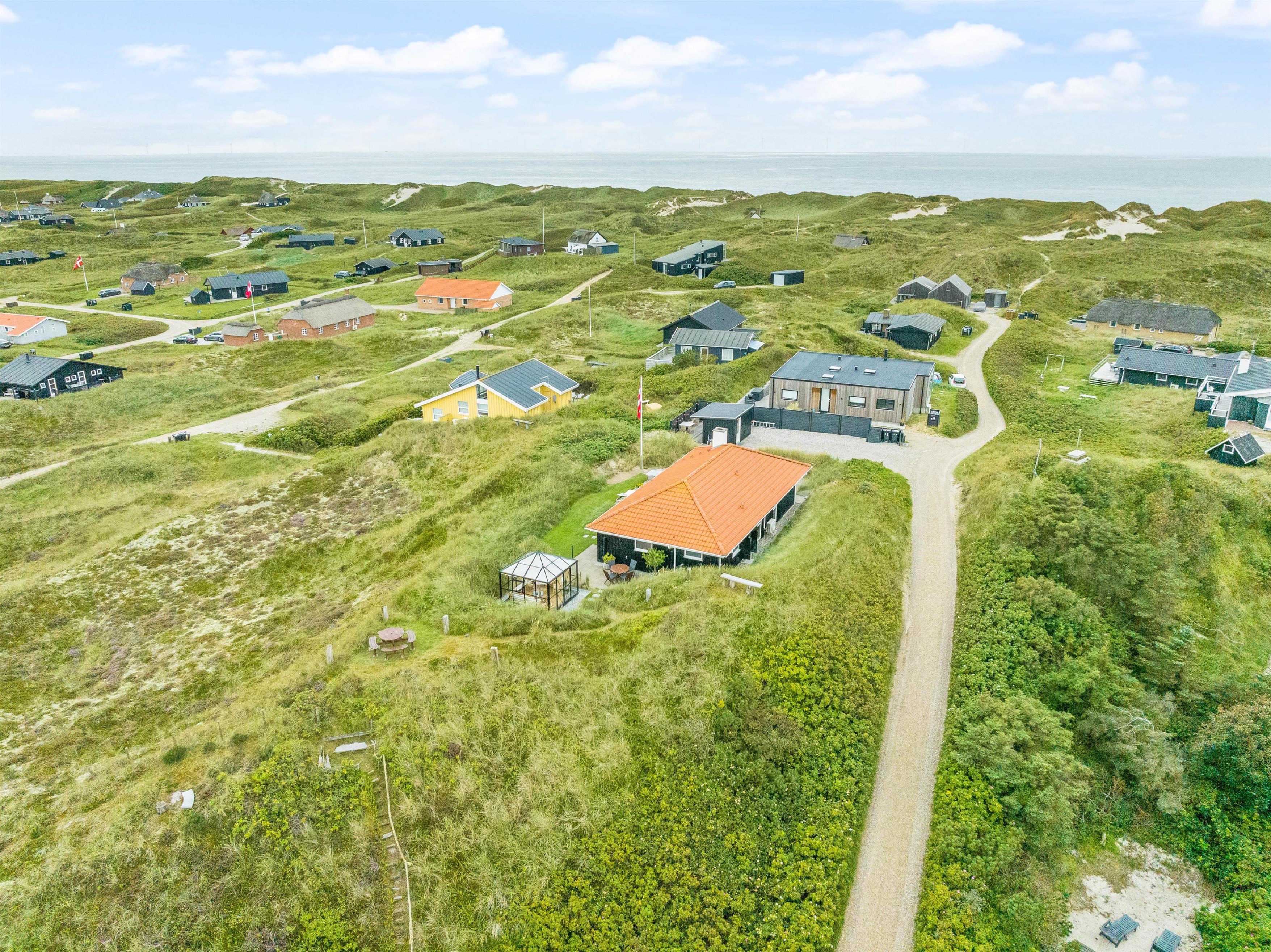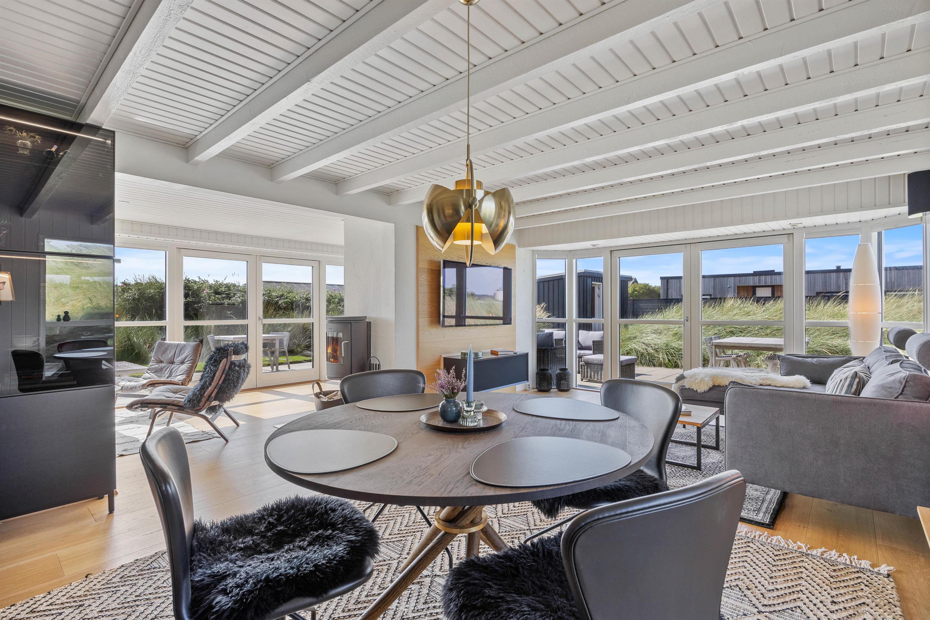 Ferieboligen på Holdvej 30 har en fantastisk udsigt fra de store vinduespartier. Her er en dejlig udsigt ud over klitterne mod havet og fjorden.