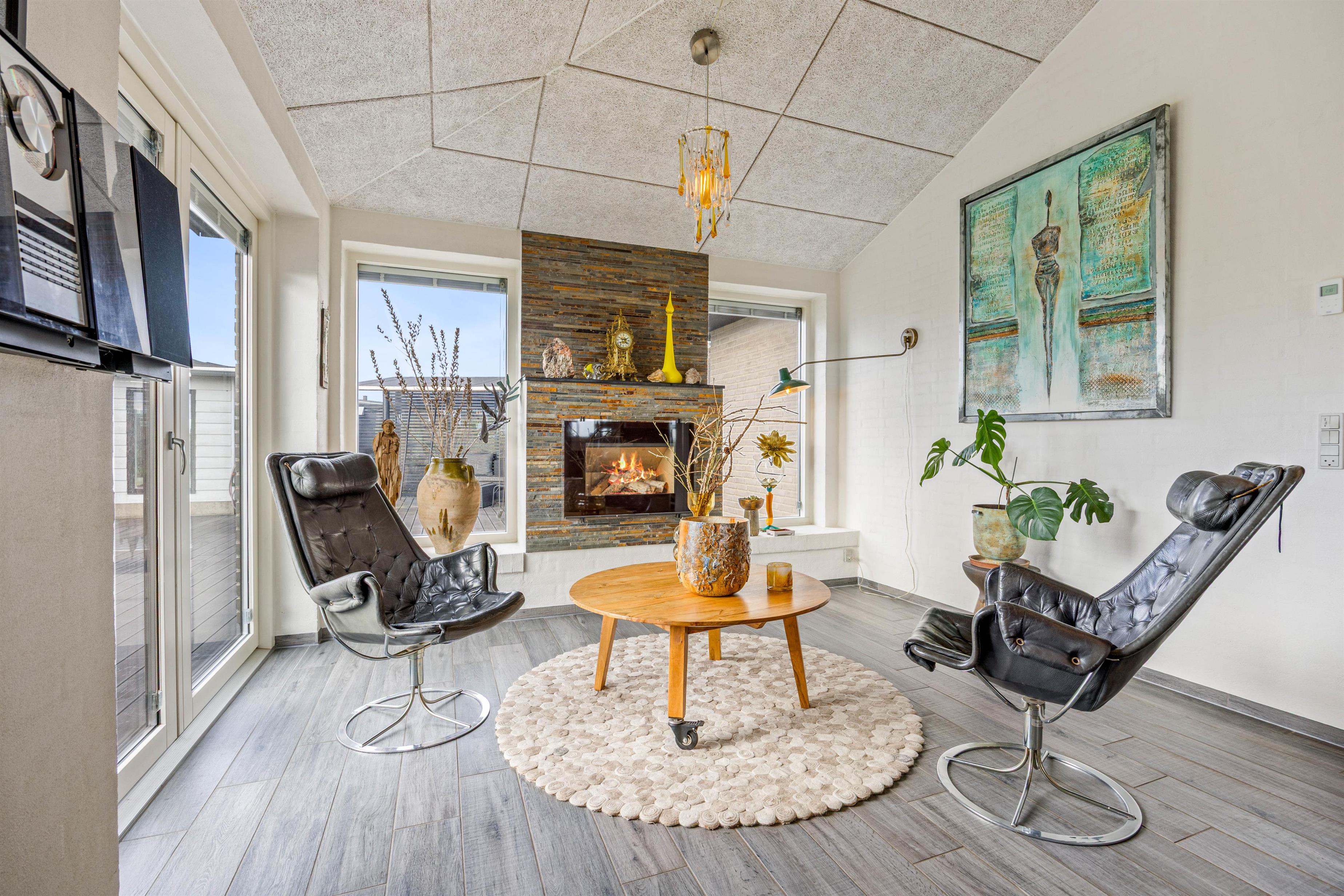 Der er intet som at tilbringe aftenerne foran brændeovnen, der skaber en vidunderlig hygge og varme efter en dag ved stranden. Sommerhuset tilbyder også moderne bekvemmeligheder som vaskemaskine og tørretumbler, så I ikke skal bekymre jer om beskidt tøj på ferien.