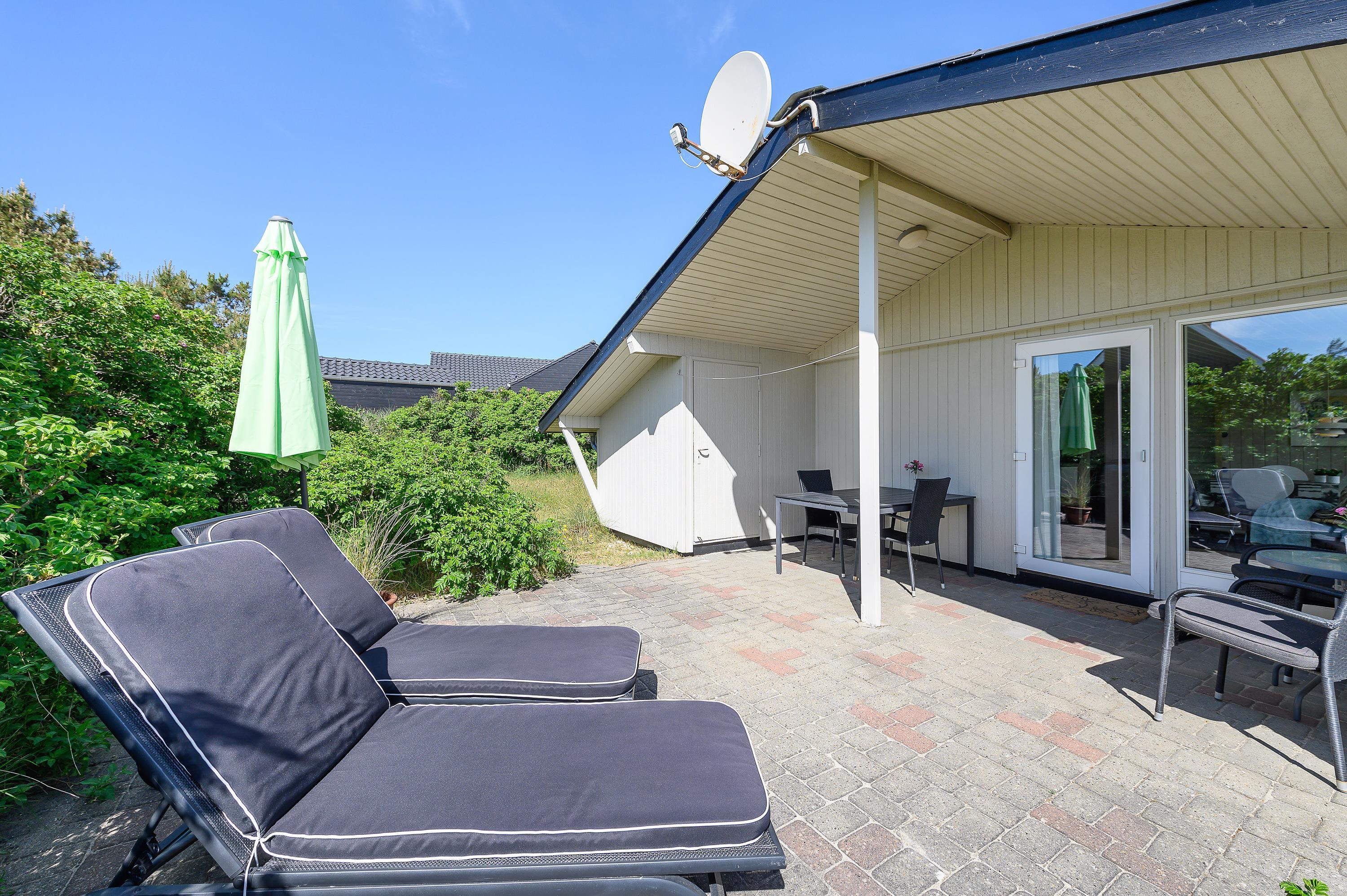 Også selvom sommerhuset ligger midt i et sommerhusområde er der masser af ro at finde på den afskærmede grund. Træer og buske omkranser huset, så I helt uforstyrret kan sidde på en af husets to terrasser. Begge terrasser er naturligvis udstyret med havemøbler, og I kan også ved husets finde liggestole og en grill. Den ene af terrasserne er overdækket, så selv hvis det drypper en smule ude, kan I nyde den friske luft. Den anden terrasse vender mod vest, og det er derfor oplagt at nyde en hyggelig grillmiddag.