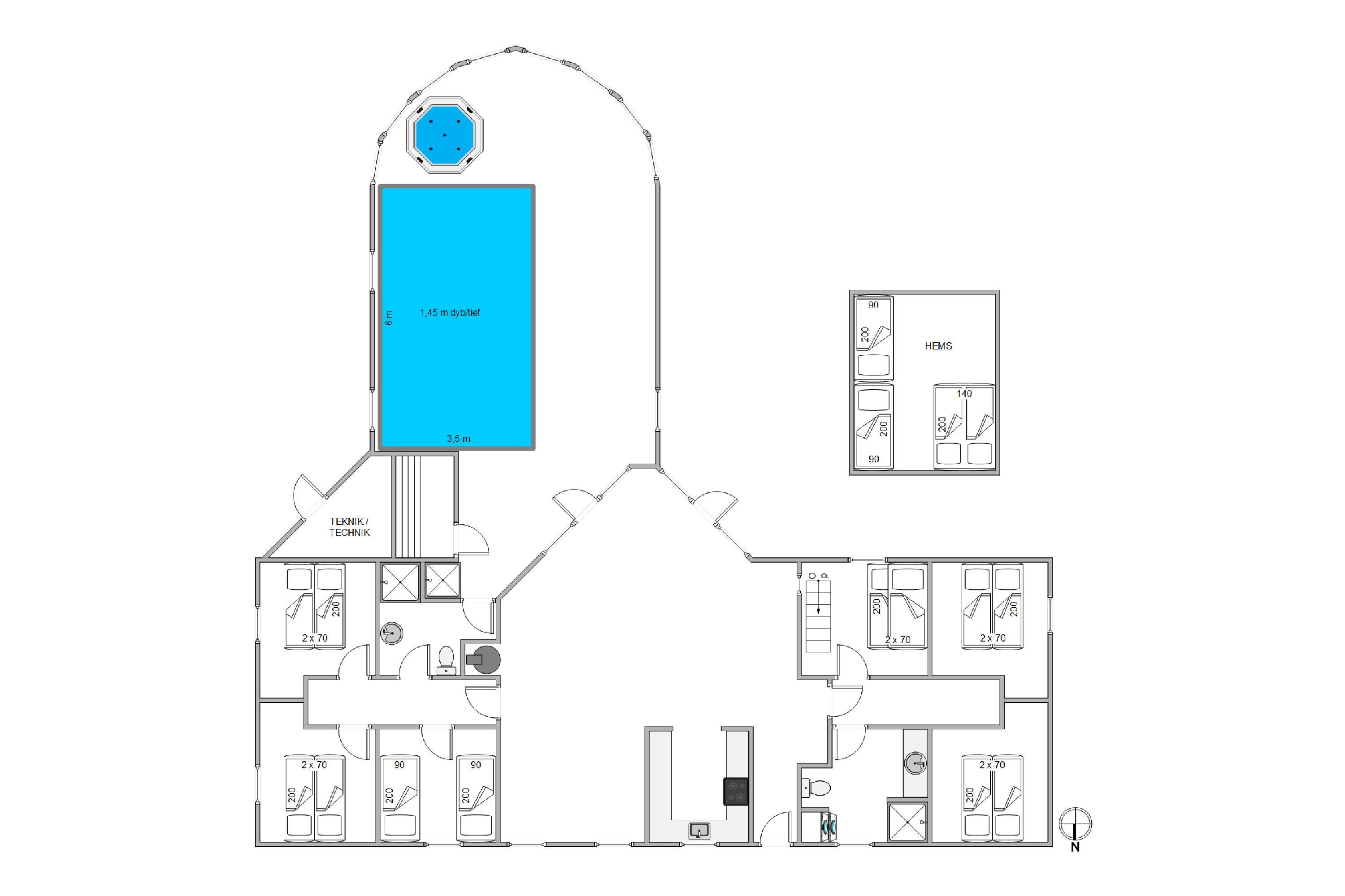 Er I flere familier, der skal holde en fantastisk ferie sammen, så er feriehuset her perfekt. Der er nemlig 14 sovepladser, 2 badeværelser og stort dejligt poolrum. Vandværdierne i saltvandspoolen bliver elektronisk overvåget 24 timer i døgnet, så vandkvaliteten altid er helt i top. Poolen bliver tilmed opvarmet med en energivenlig varmepumpe og har masser af plads til rutsjeture og bevægelse.