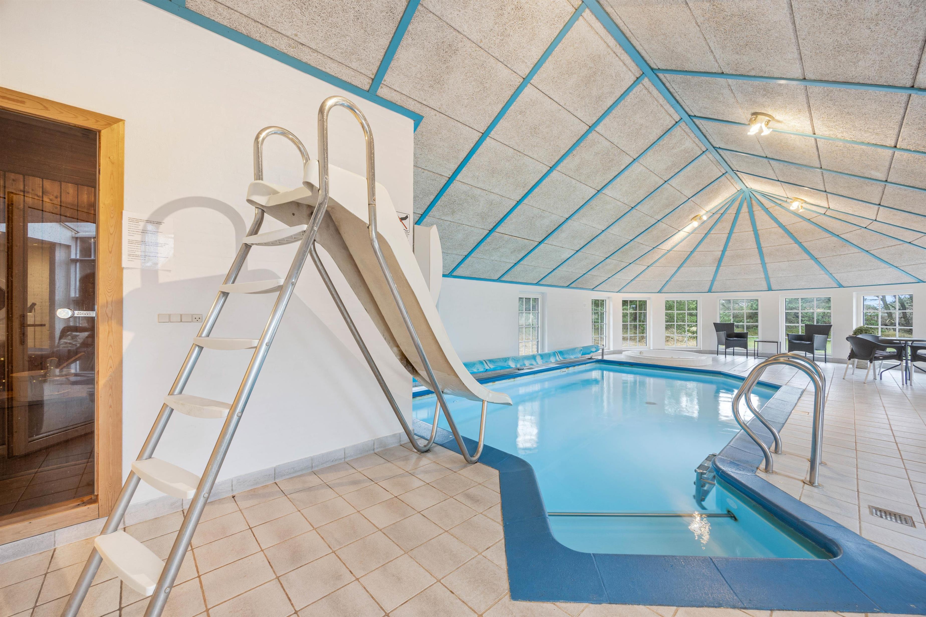 Poolrummet indeholder en stor swimmingpool med en lille babypool, en vandrutschebane, en svømmetræner og en dejlig sauna et stort spabad til 5 personer. Her er plads til, at hele familien kan boltre sig i timevis med afslapning og leg. For de mindste er der en lille babypool i forbindelse med swimmingpoolen, så alle kan være med.