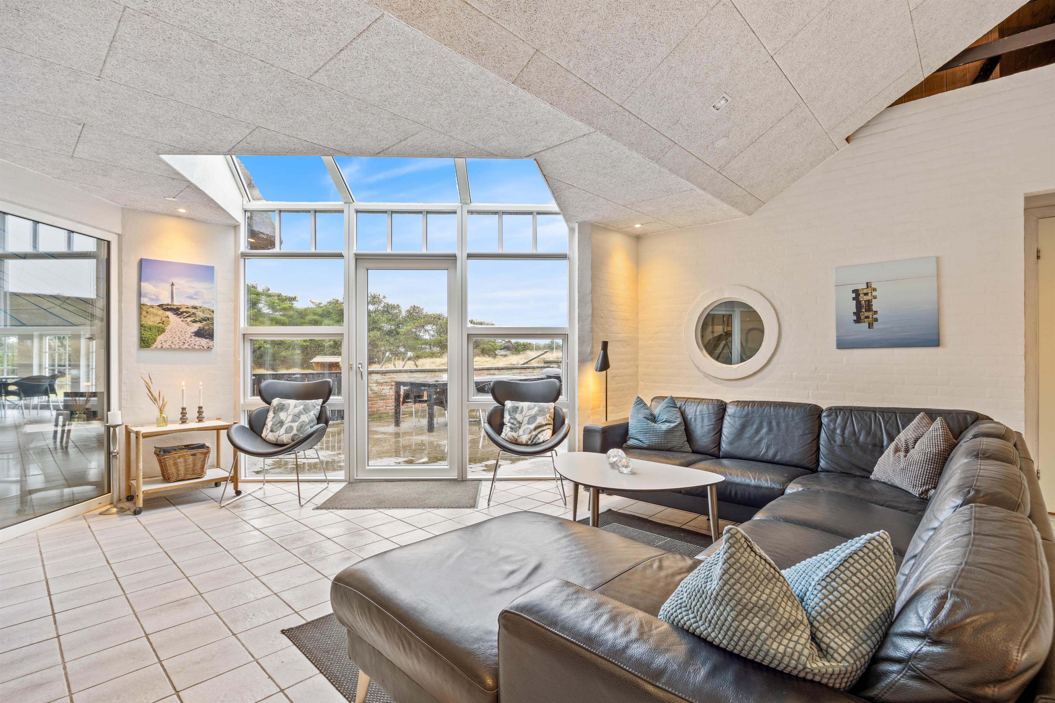 Sommerhuset fremstår lyst og velholdt med store gode lyse rum med højt til loftet. Opholdsrummet er stort og rummeligt, så hele familien kan være samlet. Her er højt til loftet, lyse farver på væggene og et stort vinduesparti, der giver et dejligt lysindfald. Der er stort fladskærms-TV, gratis internet og ellers alt, hvad der skal til for at holde en perfekt familieferie. Huset har 6 skønne soveværelser og en hems med 4 sovepladser, hvor ungerne vil elske at sove.