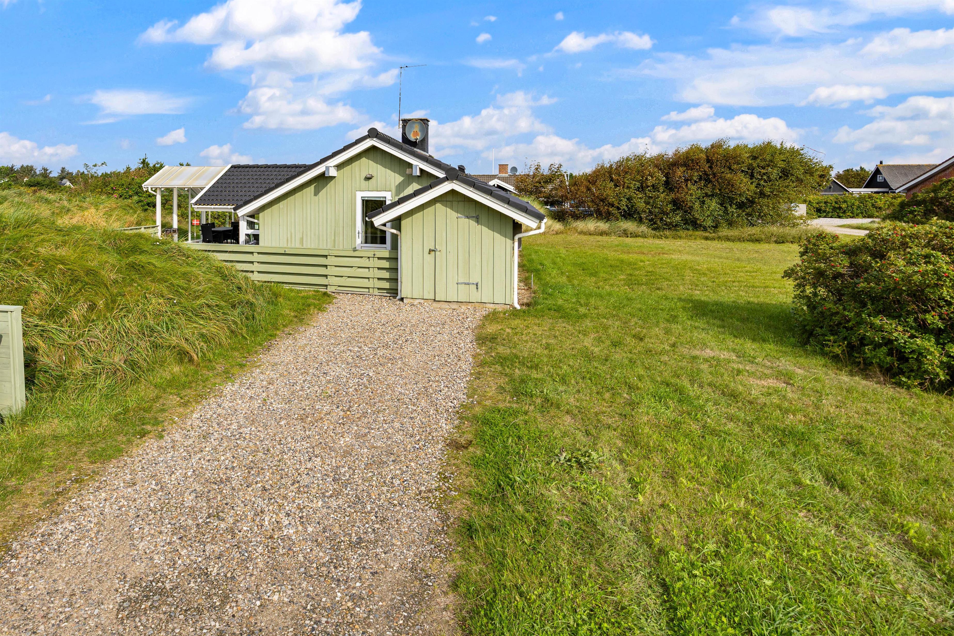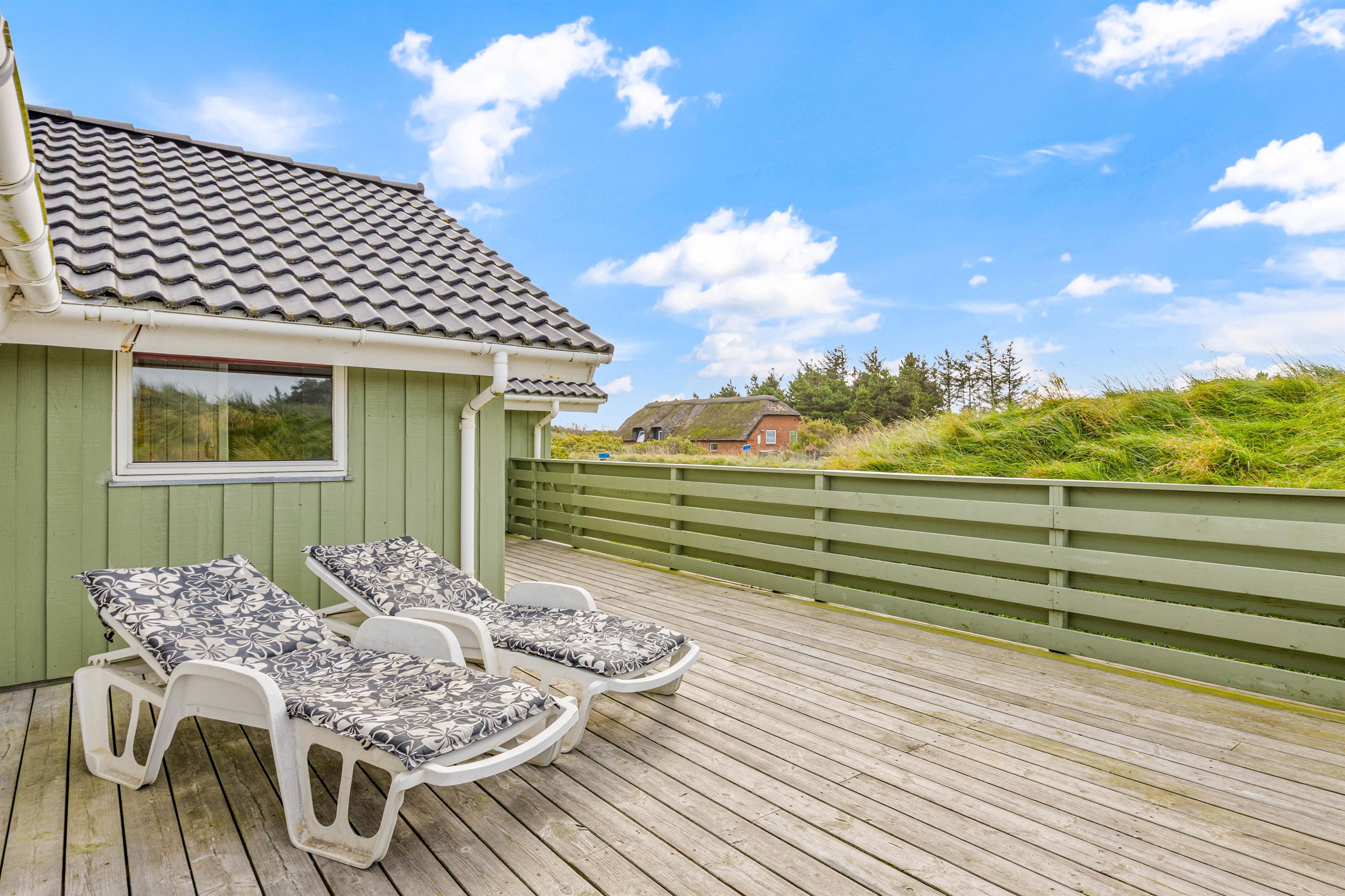 Sommerhuset byder på en lukket terrasse, hvor I kan nyde jeres måltider i det fri takket være grillen og de tilhørende havemøbler. Den overdækkede terrasse er perfekt til de lidt køligere aftener hvor man bare ikke har lyst til at være indenfor. Her kan man virkelig nyde solen og den friske luft fra Vesterhavet. Beliggende blot 900 meter fra havet, er der rig mulighed for at tage en forfriskende dukkert eller gå en tur langs stranden. På den naturskønne grund kan I også nyde stilheden eller lade børnene lege frit og sikkert.