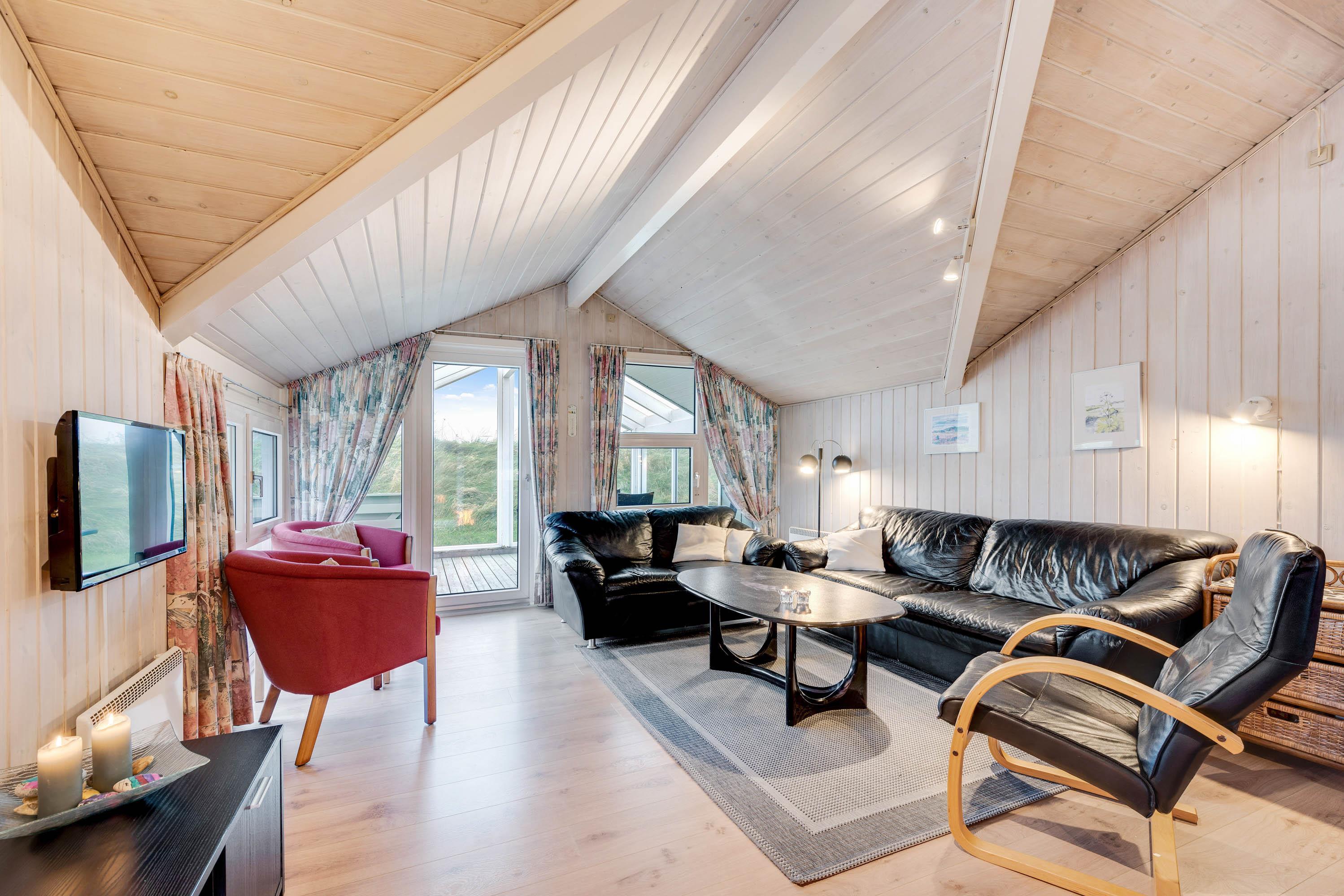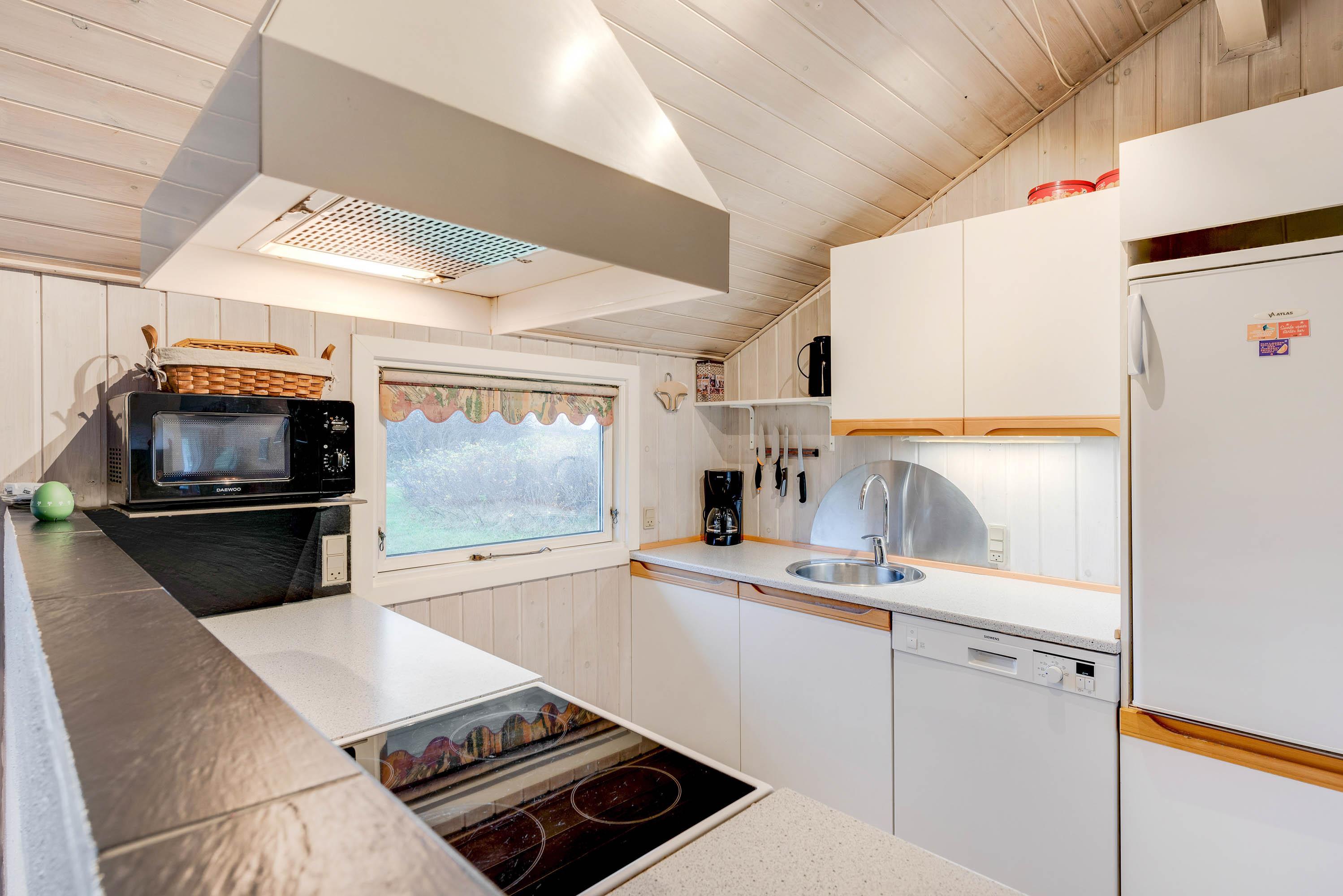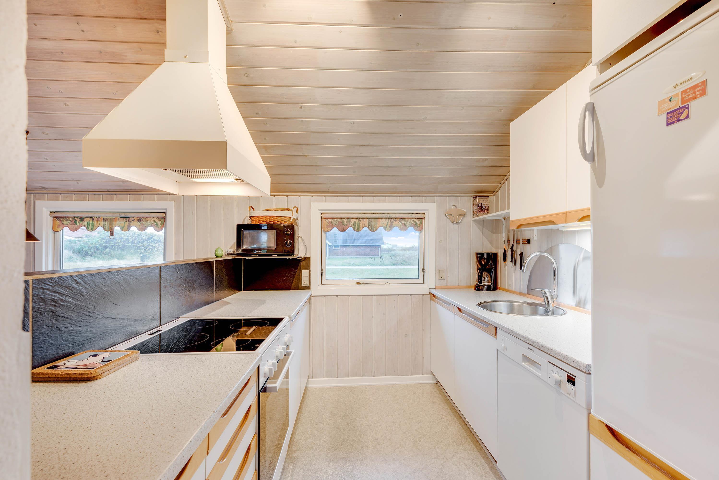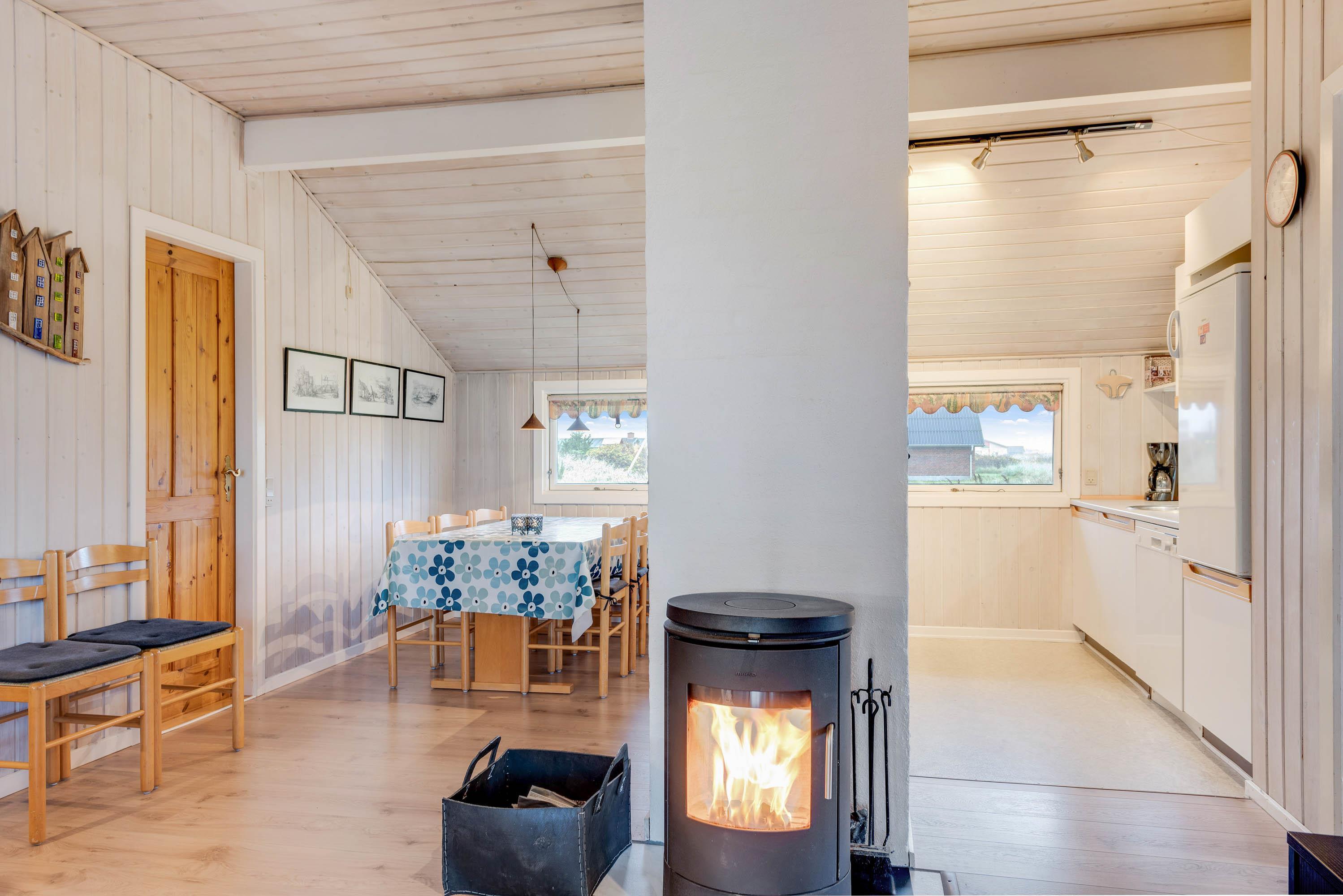 Dette sommerhus i Søndervig byder jer velkommen med en række moderne faciliteter. I det veludstyrede køkken finder I en opvaskemaskine, hvilket gør det nemt at klare opvasken efter hyggelige fællesmåltider. Opholdsområdet er udstyret med en brændeovn, der skaber en hyggelig atmosfære på de kølige aftener. En luft til luft varmepumpe sikrer, at temperaturen indendørs altid er behagelig, uanset årstid.