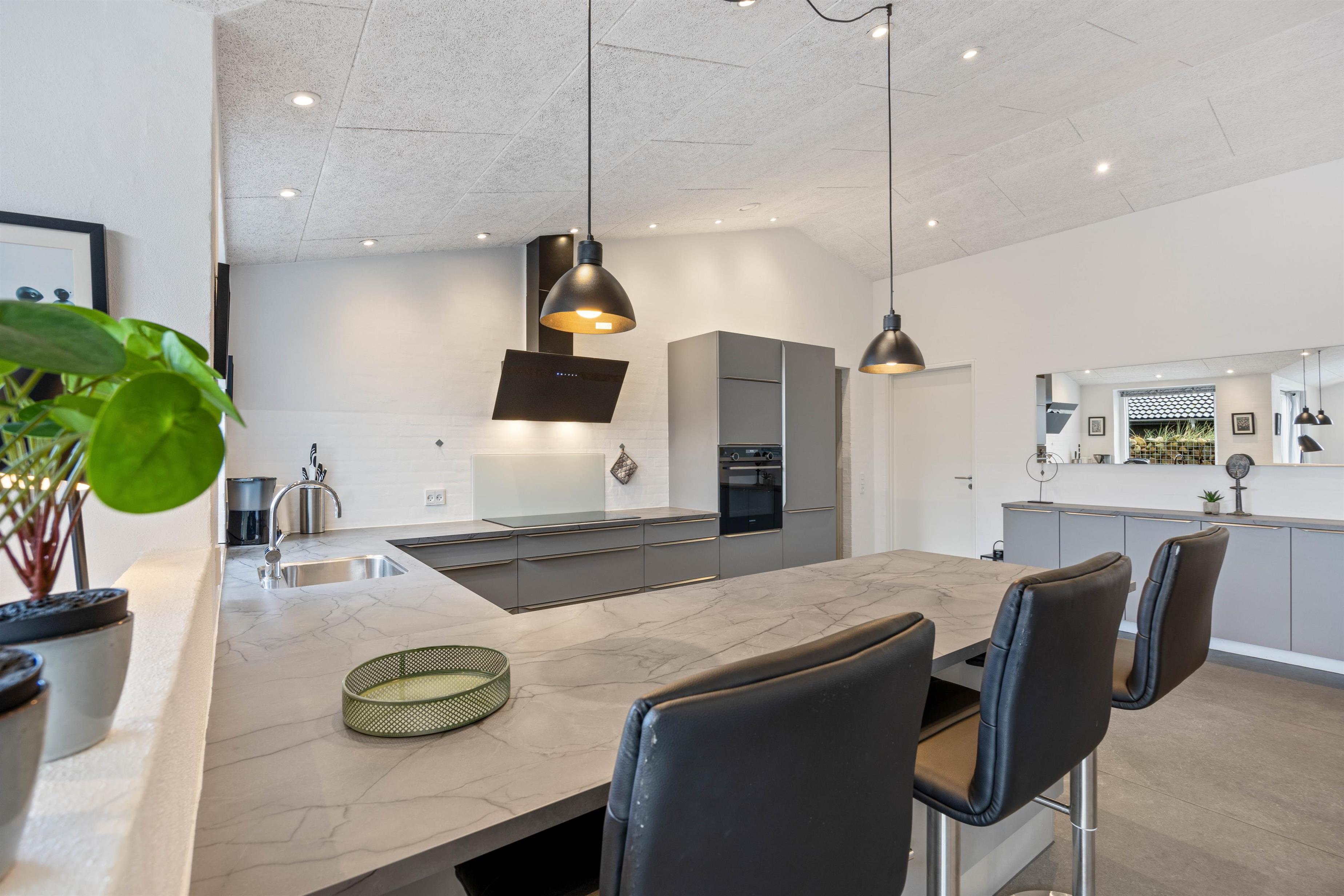 Det flotte feriehus på Lodbergsvej er opført i 2019 og er et godt valg til den stilbevidste feriegæst. Her venter jer et moderne og stilfuldt indre med god plads til otte gæster og flere lækre faciliteter. feriehuset er opført i moderne stil, med akoustikvenlige troldtekstlofter, masser af spots og loft til kip, som alt i alt giver et behagelig indemiljø.