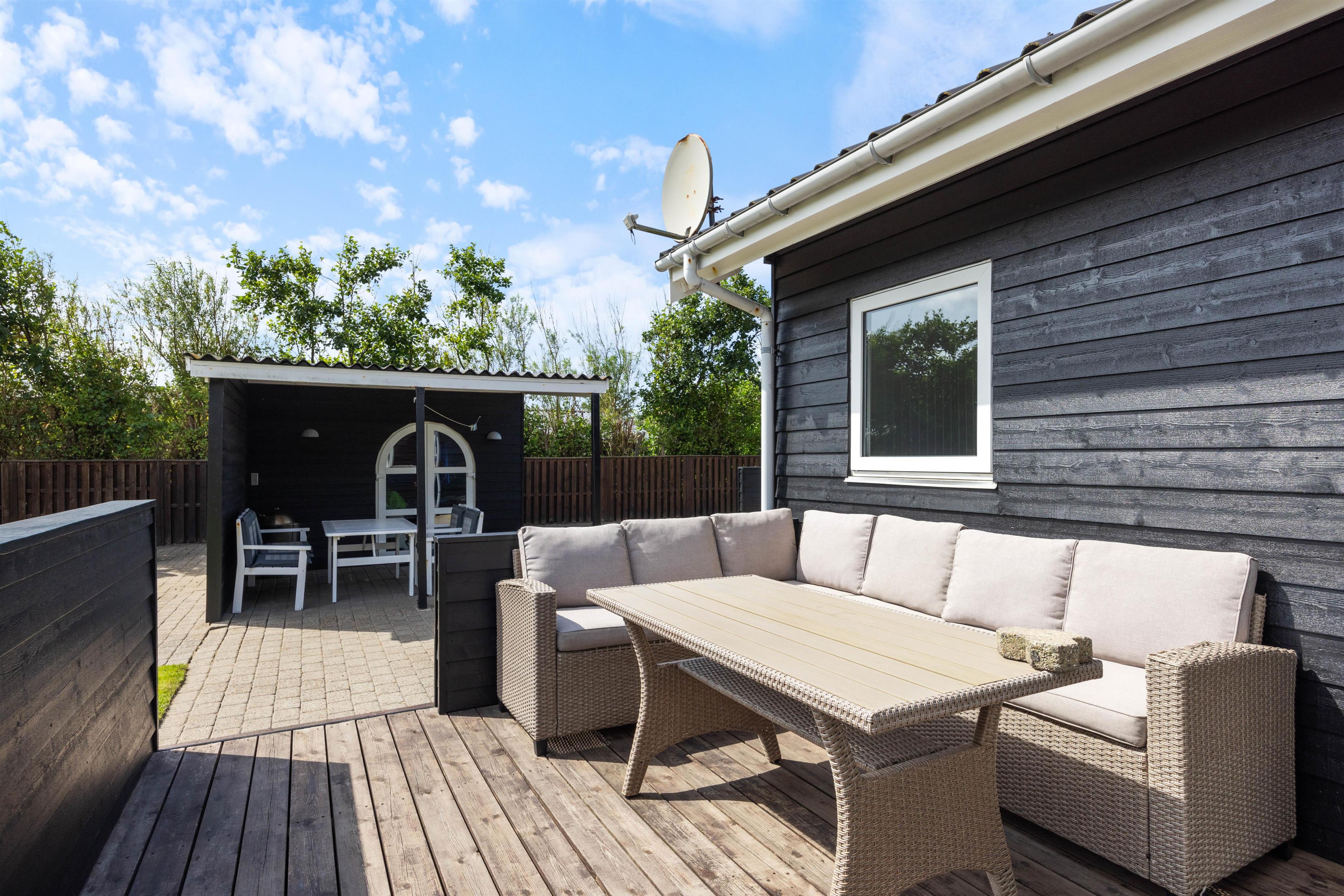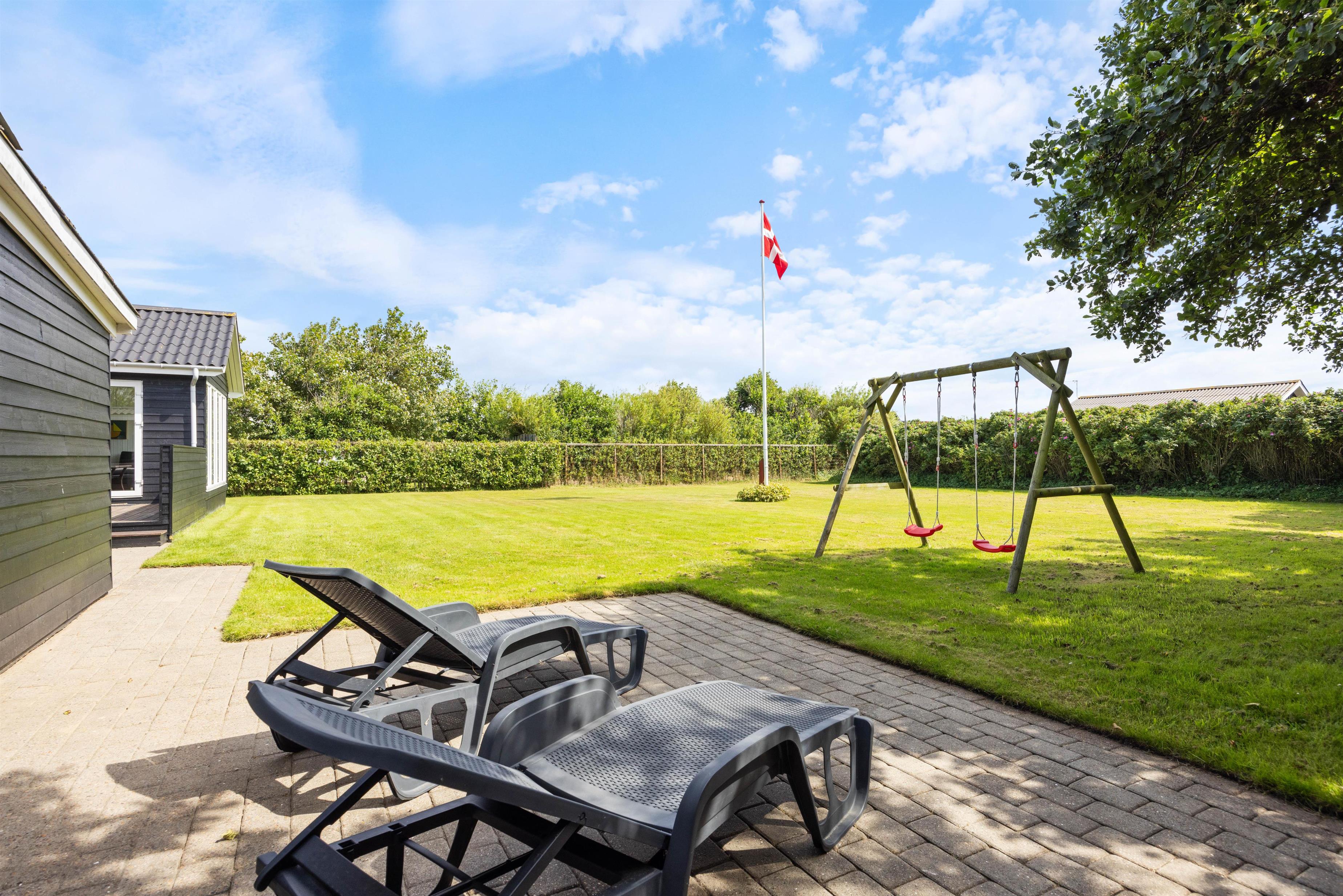 Udenfor finder i en grill, som står til jeres rådighed under jeres ferie. Den store grund med græsplæne giver masser af plads til udendørs spil og aktiviteter. Uanset om I vil solbade, læse en god bog eller nyde freden og roen, har dette sommerhus noget for enhver smag. De åbne og lukkede terrasser indbyder til masser af hygge under åben himmel. Slap af i de behagelige havemøbler, mens I lytter til fuglesang. Der er en gynge, hvor jeres børn helt sikkert vil have det sjovt, og bruge en masse energi.